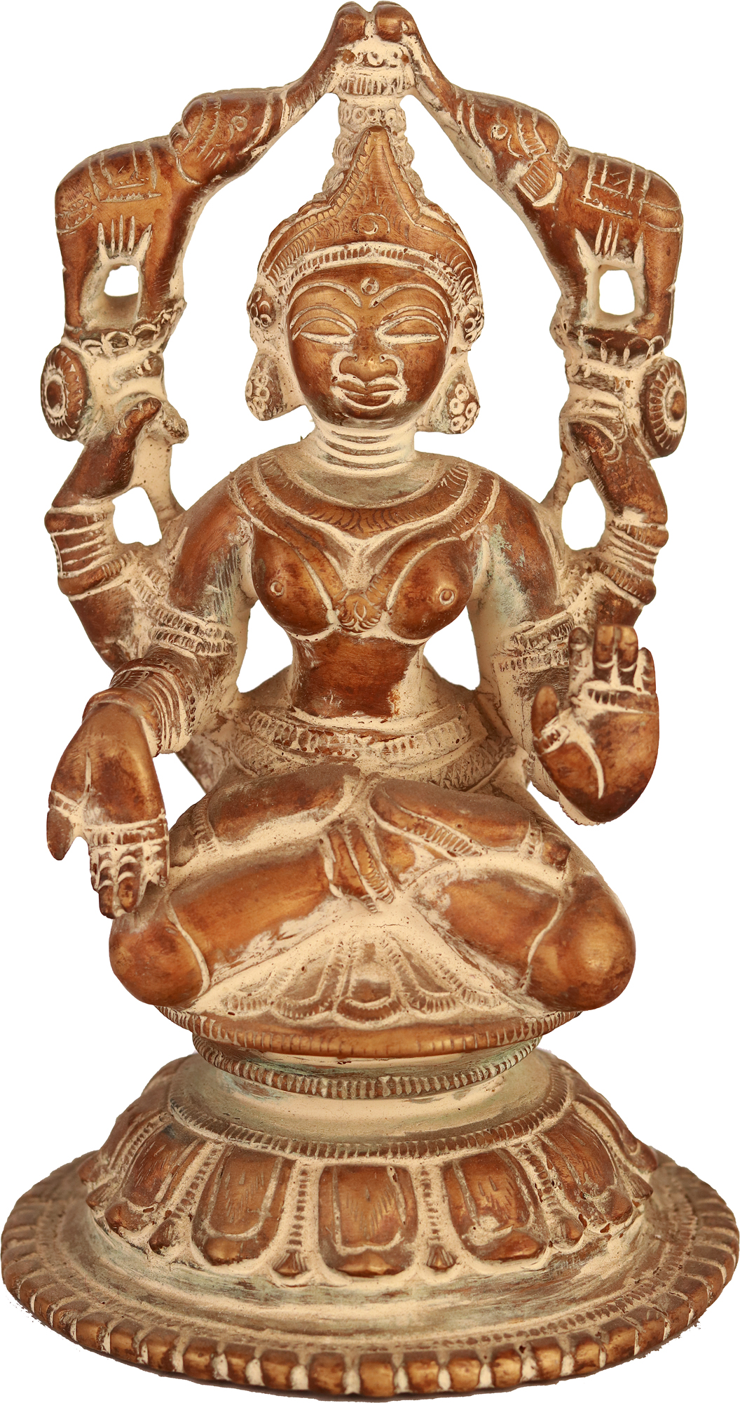 Gajalakshmi is a special form of Goddess Lakshmi, where she is shown flanked by two elephants pouring nectar onto her from two sacred pots. As symbols of sovereignty and fertility, the elephants convey Lakshmi's association with these highly desirable qualities, which are often sought after or mentioned as rewards, by worshippers of this Great Goddess.