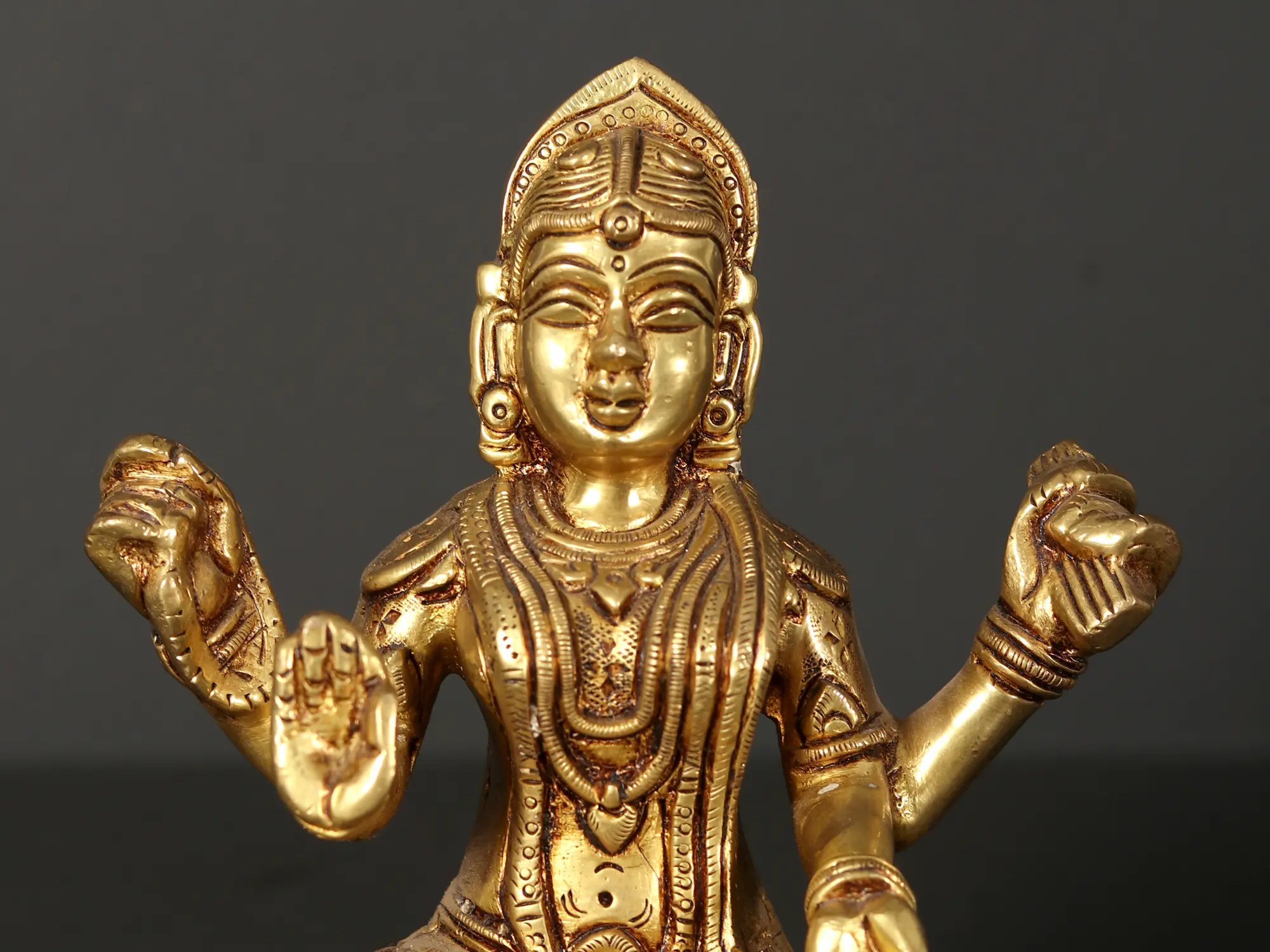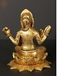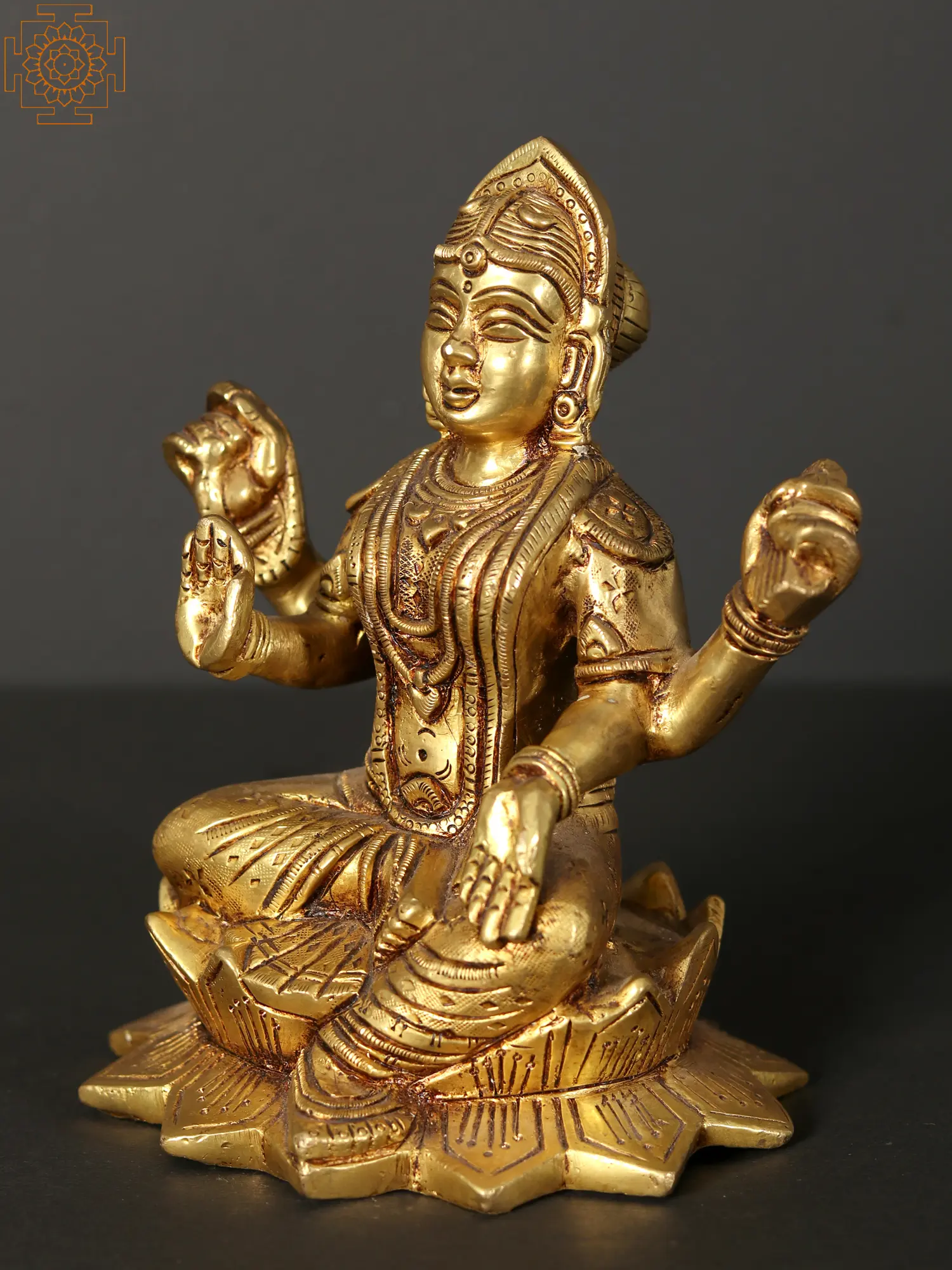 This captivating statue is cast in high-quality brass, a metal revered in many traditions for its purity and durability. The warm, golden hue of the brass enhances the divine aura of the Goddess, while the detailed carvings bring her form to life. Every element, from the delicate floral patterns on her garments to the serene gestures of her hands, speaks to the skill of the artisans who brought this masterpiece to fruition. The seated posture, with one hand raised in a gesture of blessing (Abhaya Mudra) and the other holding a potent symbol, conveys a sense of calm power and spiritual assurance. The lotus upon which she rests, with its unfolding petals, signifies the blossoming of consciousness and the transcendence of worldly limitations. This piece is not merely an object of devotion but a testament to the enduring legacy of traditional Indian artistry.