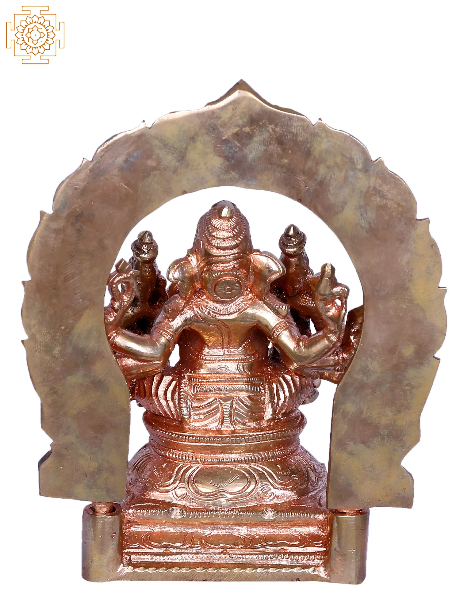 3" Small Chaturbhuja Lord Ganesha Seated on Kirtimukha Throne | Bronze Statue