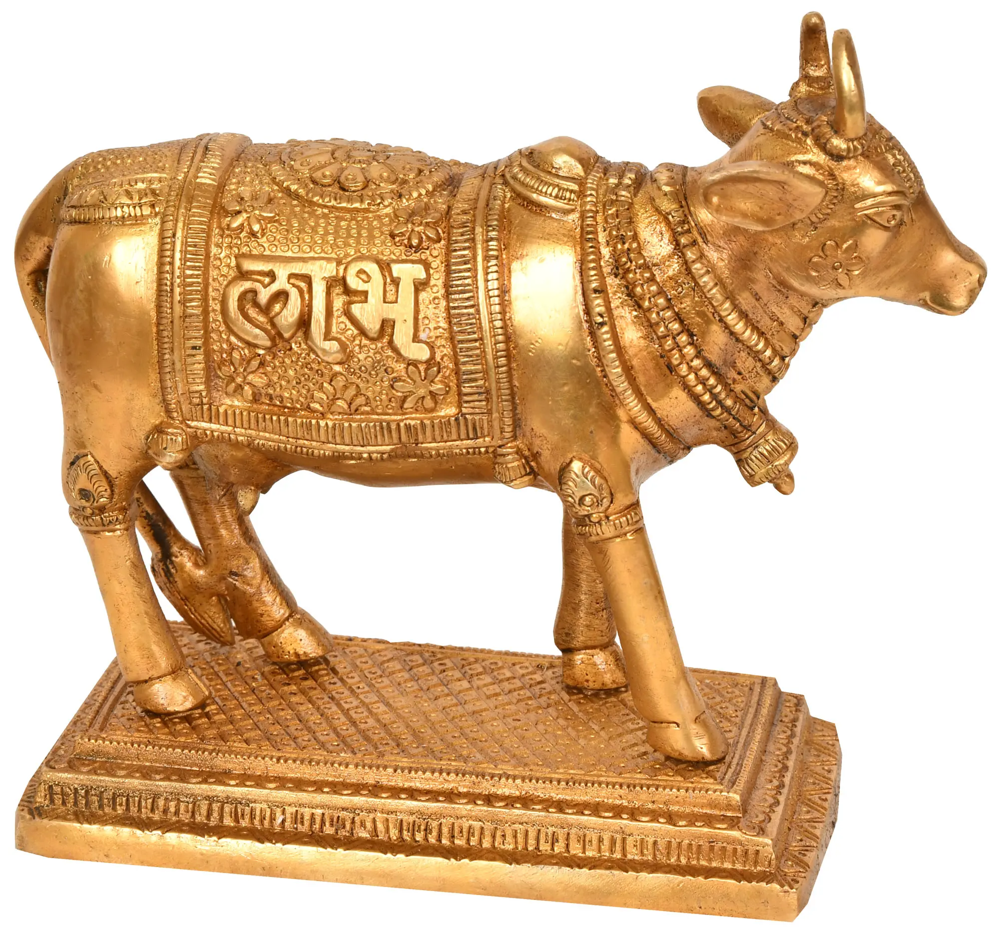8" Dev Tulya Holy Cow with Laxmi Ganesha Postures In Brass | Handmade | Made In India