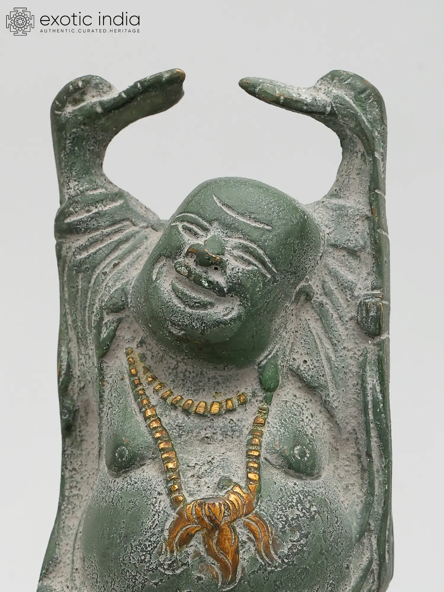 In this sculpture, Laughing Buddha, also known as the “Budai” or “Hotei” is standing with a jovial and beaming smile. His hands are raised up, a symbol of his abundance and prosperity. Laughing Buddha is often depicted with a rotund belly, signifying contentment and joy. Laughing Buddha’s countenance is filled with warmth and compassion, reflecting his role as a bringer of good fortune and blessings. His attire exudes a sense of ease and comfort, symbolizing his carefree and blissful demeanor. Crafted with intricate artistry and devotion, the brass sculpture emanates an eternal charm. Decorate your space with this magnificent artwork, embracing the essence of happiness and wealth that Laughing Buddha bestows.
