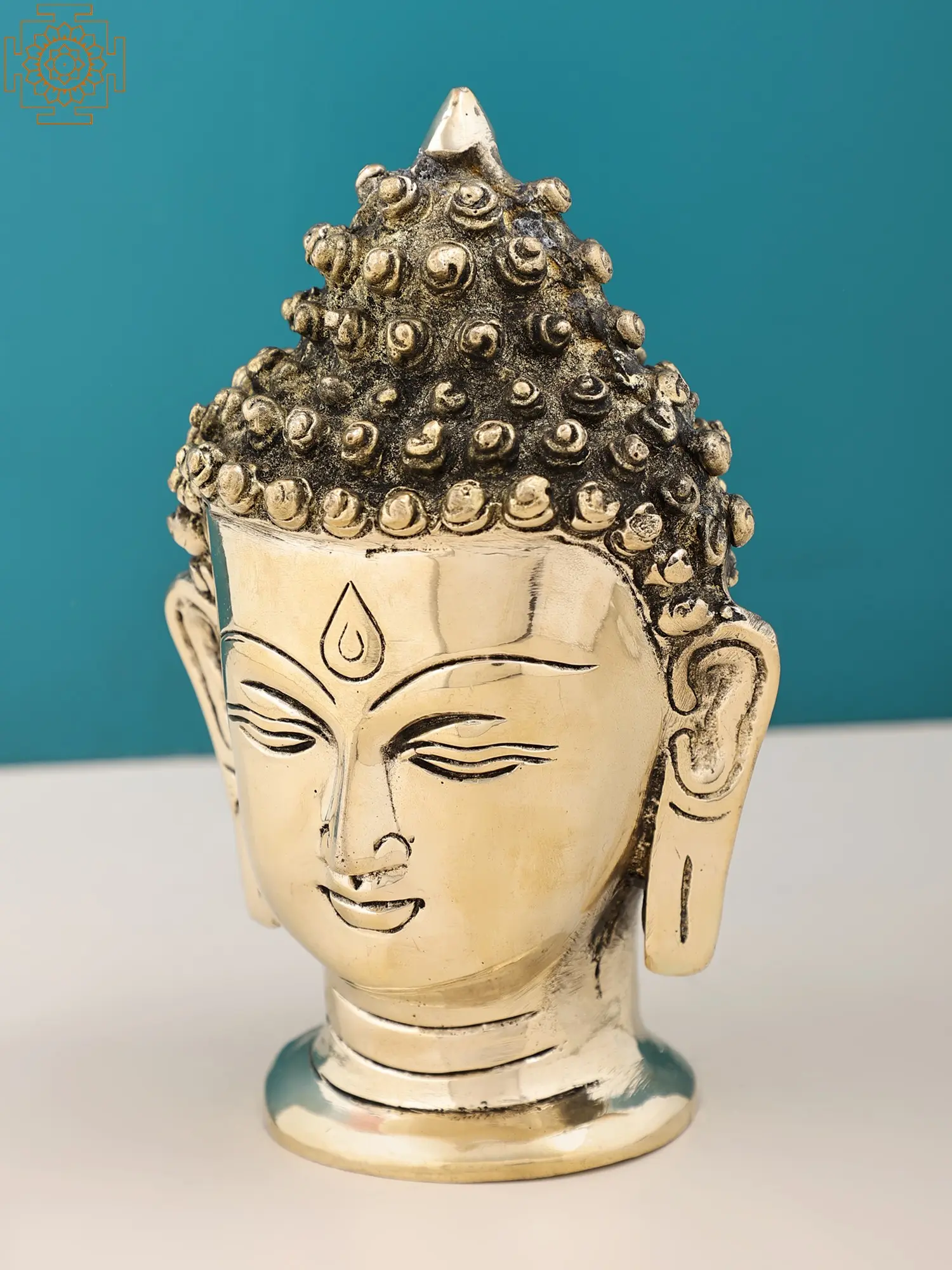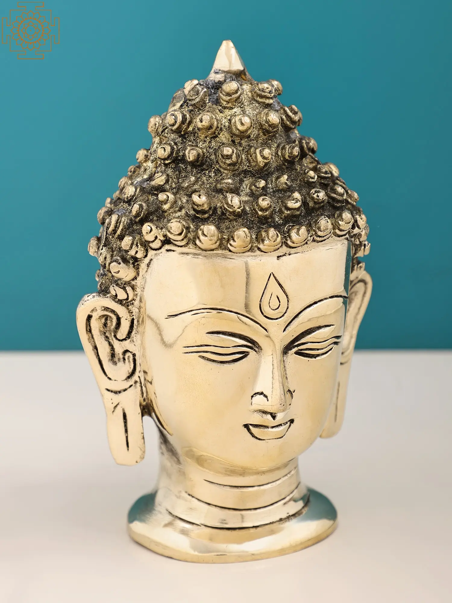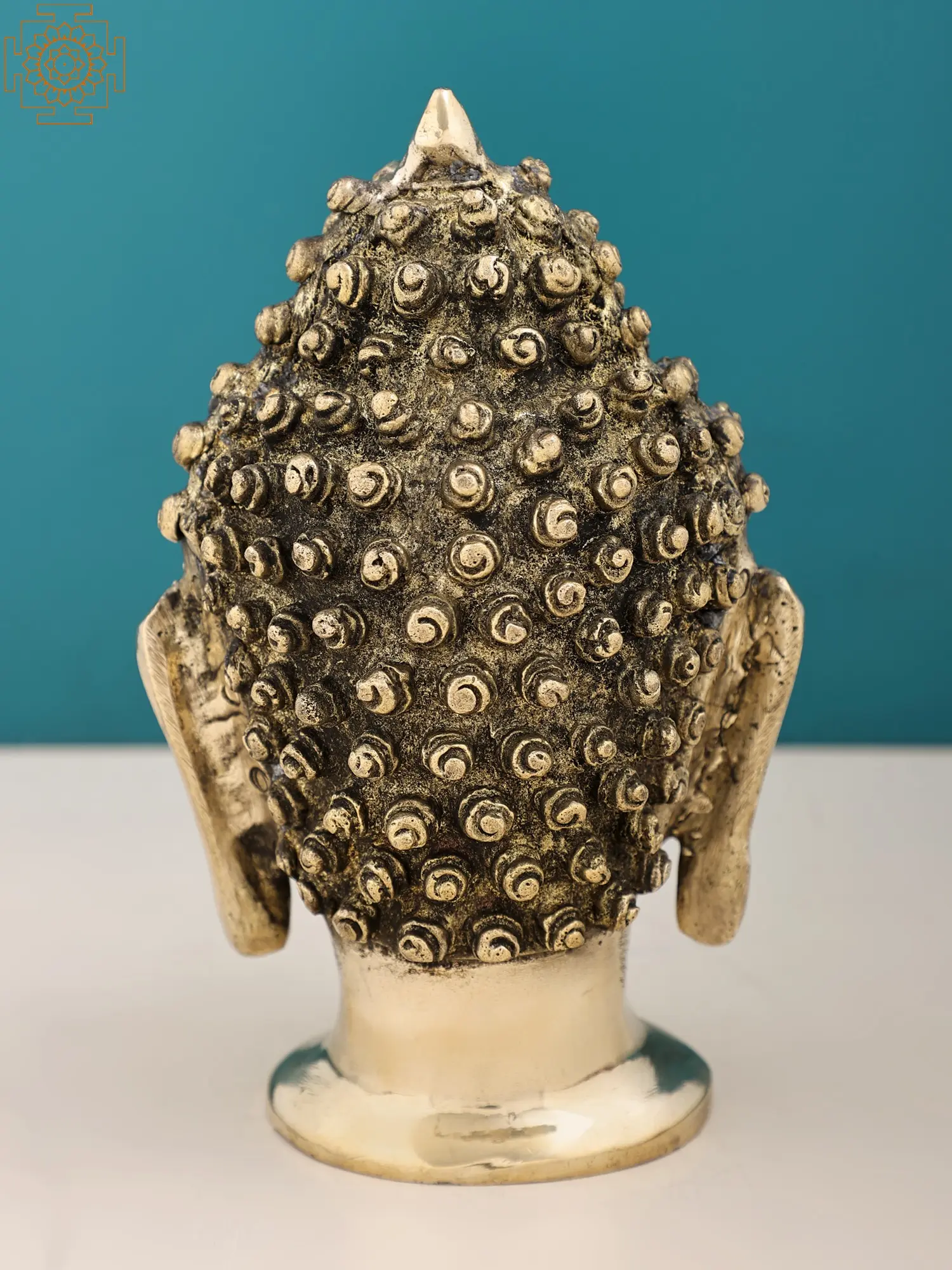 With closed eyes and a gentle smile, Lord Buddha (the Awakened One) radiates tranquility and inner peace. His countenance, adorned with snail shell curls, also known as “Ushnisha”, symbolizes his supreme wisdom. While the elongated earlobes signify his noble past as a prince who renounced worldly desires. Crafted in brass with precision, this artwork invites you to embark on a journey of self-discovery, mirroring the profound teachings of the “Enlightened One”.