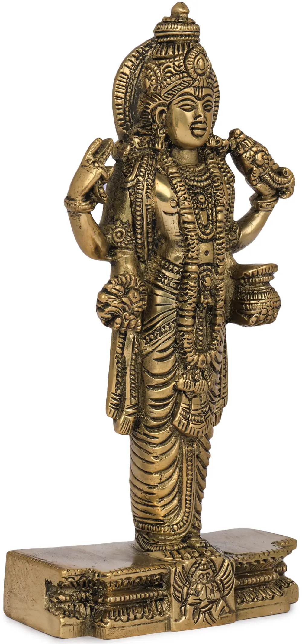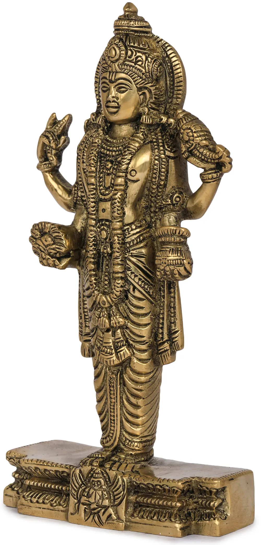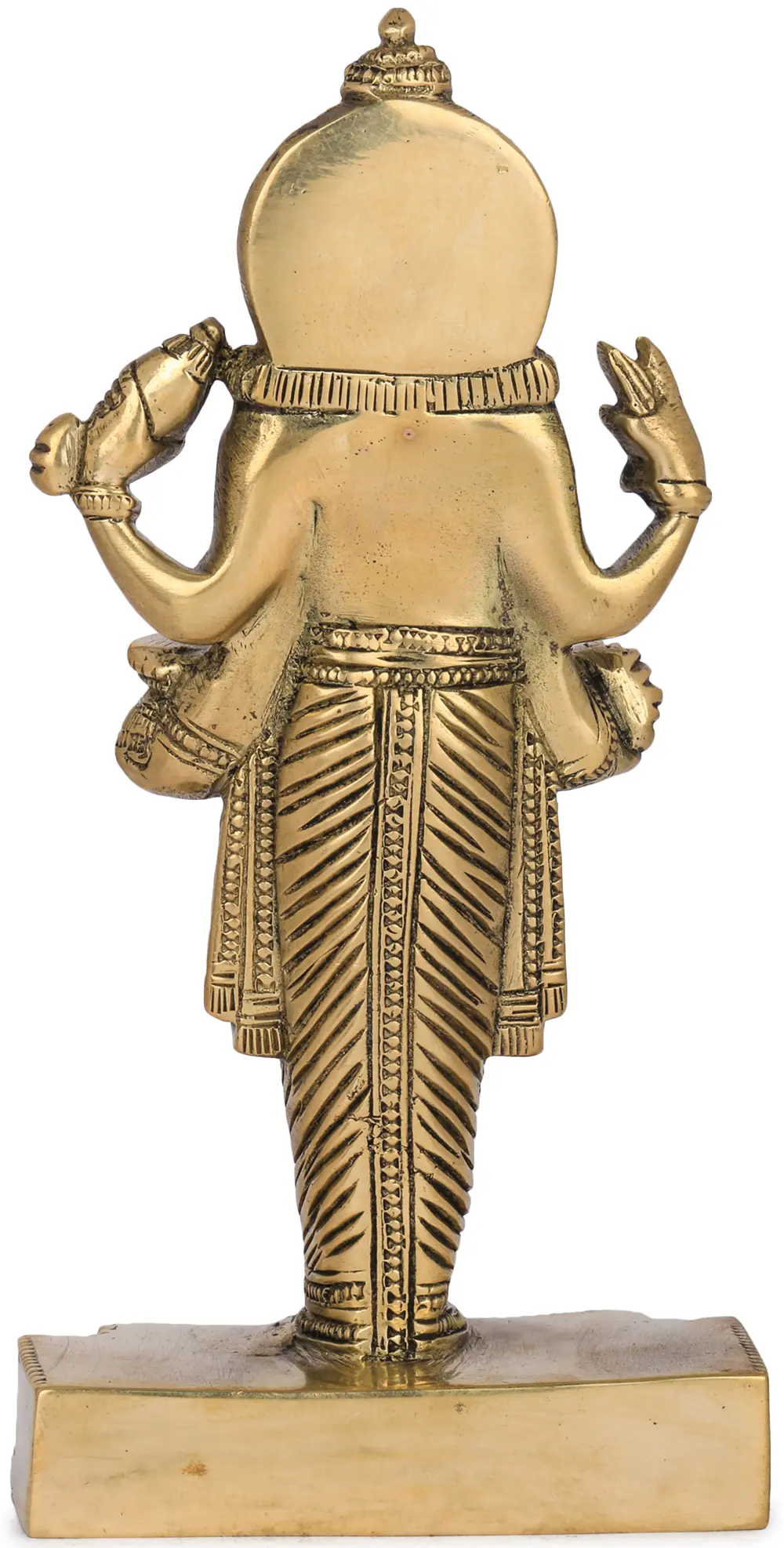 As the celestial physician, Lord Dhanvantari (incarnation of Lord Vishnu) epitomizes the everlasting pursuit of health and rejuvenation in Ayurvedic traditions. Lord Dhanvantari, an emblem of Ayurveda, carries a pot of Amrita (nectar of immortality), and a leech, signifying his role as the “Divine Healer”. Often seen adorned with celestial robes and ornaments, Lord Dhanvantari signifies purity. He is venerated by medical professionals and patients alike, seeking his blessings for the restoration of health and vitality. This sacred brass artwork invokes blessings for health, longevity, and inner harmony.