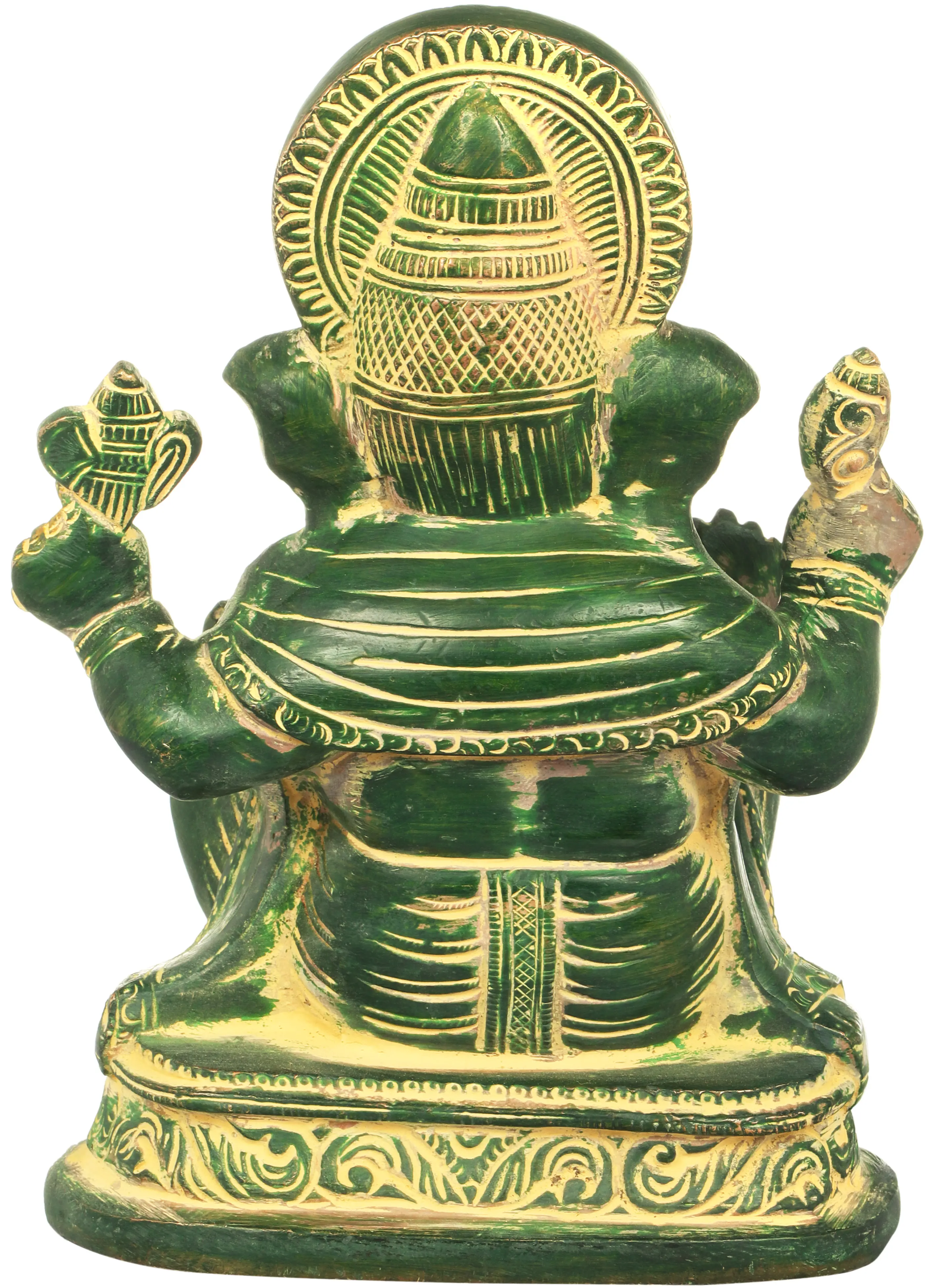 Each statue is meticulously handmade, ensuring that no two pieces are exactly alike. This artisanal approach imbues the sculpture with a unique character and soul. The skilled hands that shaped this brass have passed down their knowledge through generations, adhering to traditional techniques to create a piece that is both artistically refined and spiritually significant. The material itself, brass, is chosen for its durability, its ability to hold intricate details, and its auspicious connotations in Hindu culture. The vibrant green and natural brass finish not only enhances its aesthetic appeal but also evokes the earthly elements and divine energies associated with Ganesha. Display this beautiful representation of Lord Ganesha in your living room, study, or prayer room to invite his blessings and wisdom into your life.