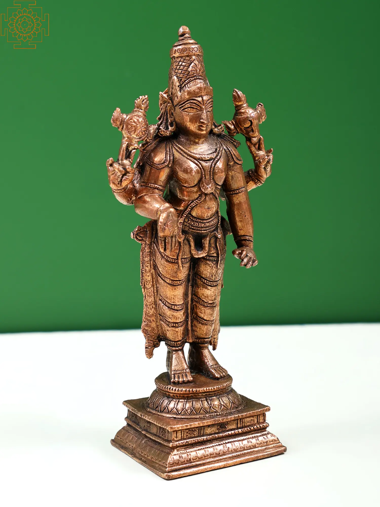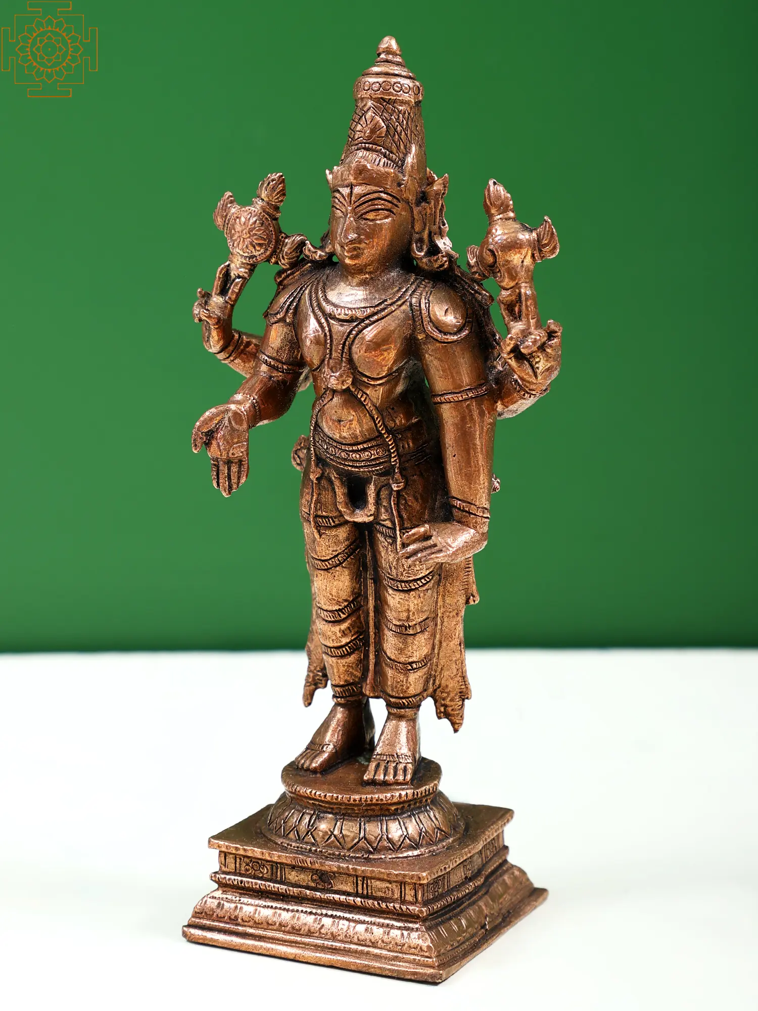 8" Standing Lord Vishnu Statue in Brass | Handmade | Made in India