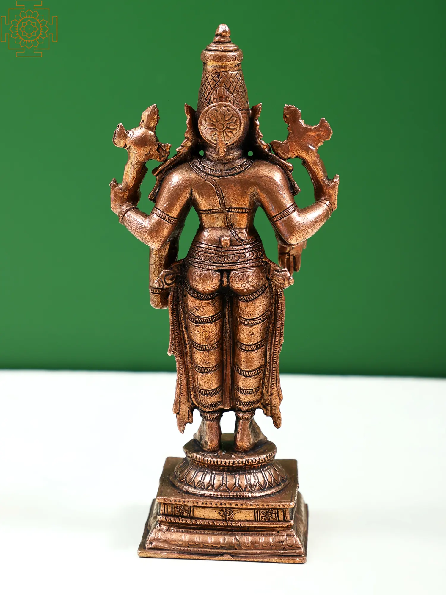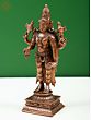 Invite the benevolent presence of Lord Vishnu into your home with this exquisitely crafted copper statue. Standing at a modest yet impactful height, this representation captures the essence of the preserver of the universe, a central deity in Hinduism revered for his cosmic role in maintaining balance and order. The rich, warm hue of the copper lends a timeless and sacred aura to this piece, meticulously handcrafted to bring forth the divine attributes of Lord Vishnu.
