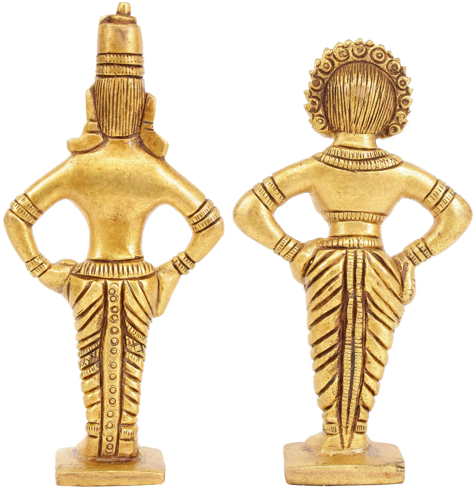 Celebrate the divine love story of Lord Vitthal (Panduranga) and Rukmani with this magnificent brass sculpture. Lord Vitthal, also known as Panduranga, is revered as the deity of devotion in the region of Pandharpur. This sculpture portrays him with his beloved consort, Rukmani, in a loving embrace. Their serene expressions and intricate detailing reflect the artisan's dedication to preserving this sacred love story. The love between Lord Vitthal and Rukmani symbolises the unwavering devotion of the individual soul to the divine. This brass sculpture is not just a work of art; it's a testament to the power of devotion and the everlasting bond of love, bringing their divine grace into your life.