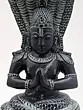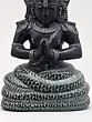 This exquisite stone statue captures the profound presence of Maharshi Patanjali, revered as an avatar of Sheshnag, the cosmic serpent. Crafted with meticulous detail from stone sourced from the hallowed grounds of South India, specifically Mahabalipuram, this piece resonates with ancient artistry and spiritual depth. The statue portrays Patanjali seated serenely, coiled within the protective embrace of a multi-headed cobra, its hood fanned out majestically. This imagery is deeply rooted in Hindu mythology, where Sheshnag is the king of all Nagas, often depicted as the bed upon which Lord Vishnu rests, signifying eternal time and the universe itself. The cobra's multiple heads symbolize heightened awareness, protection, and the multifaceted nature of cosmic consciousness. ––––––––––––––––––––