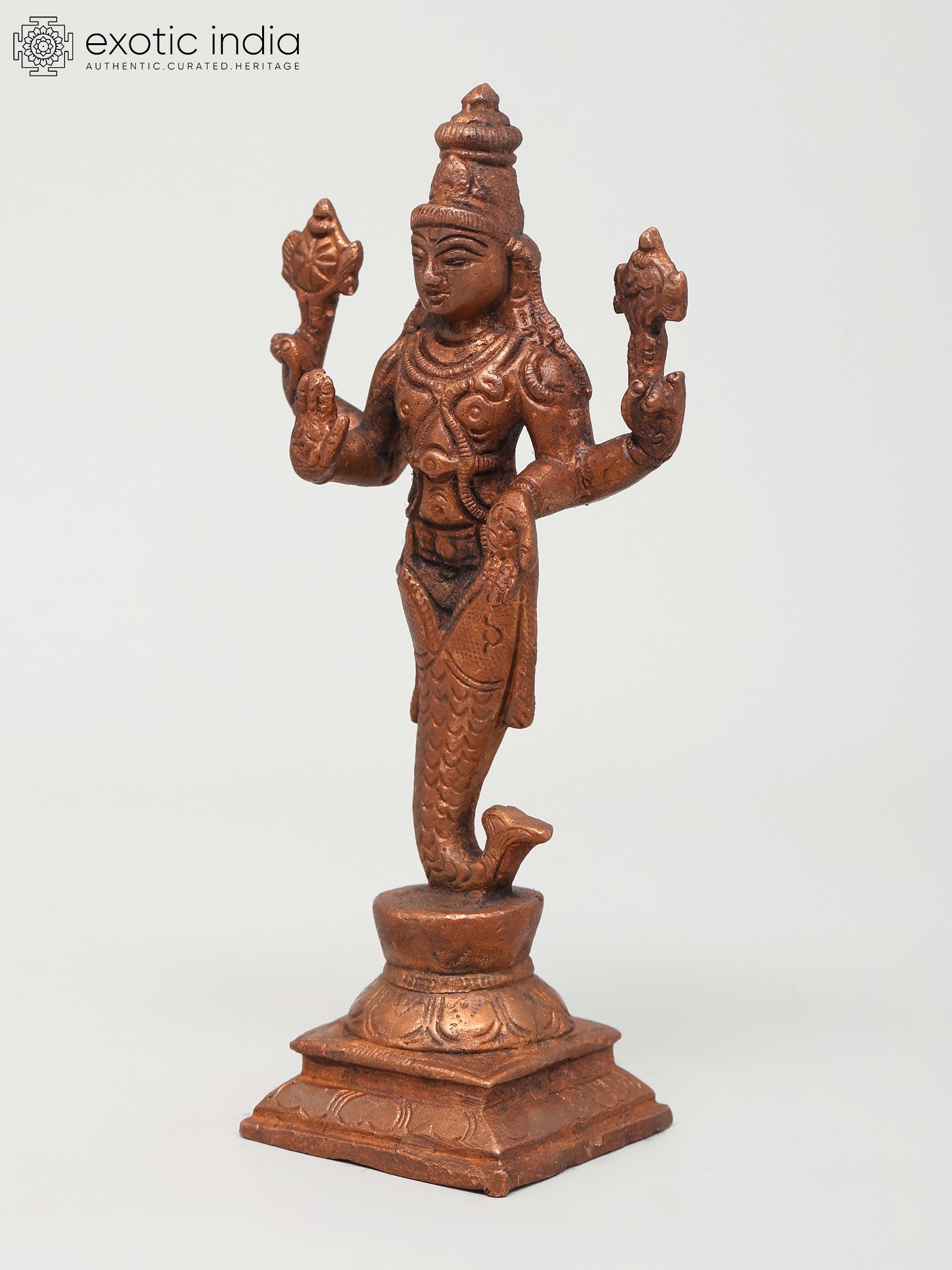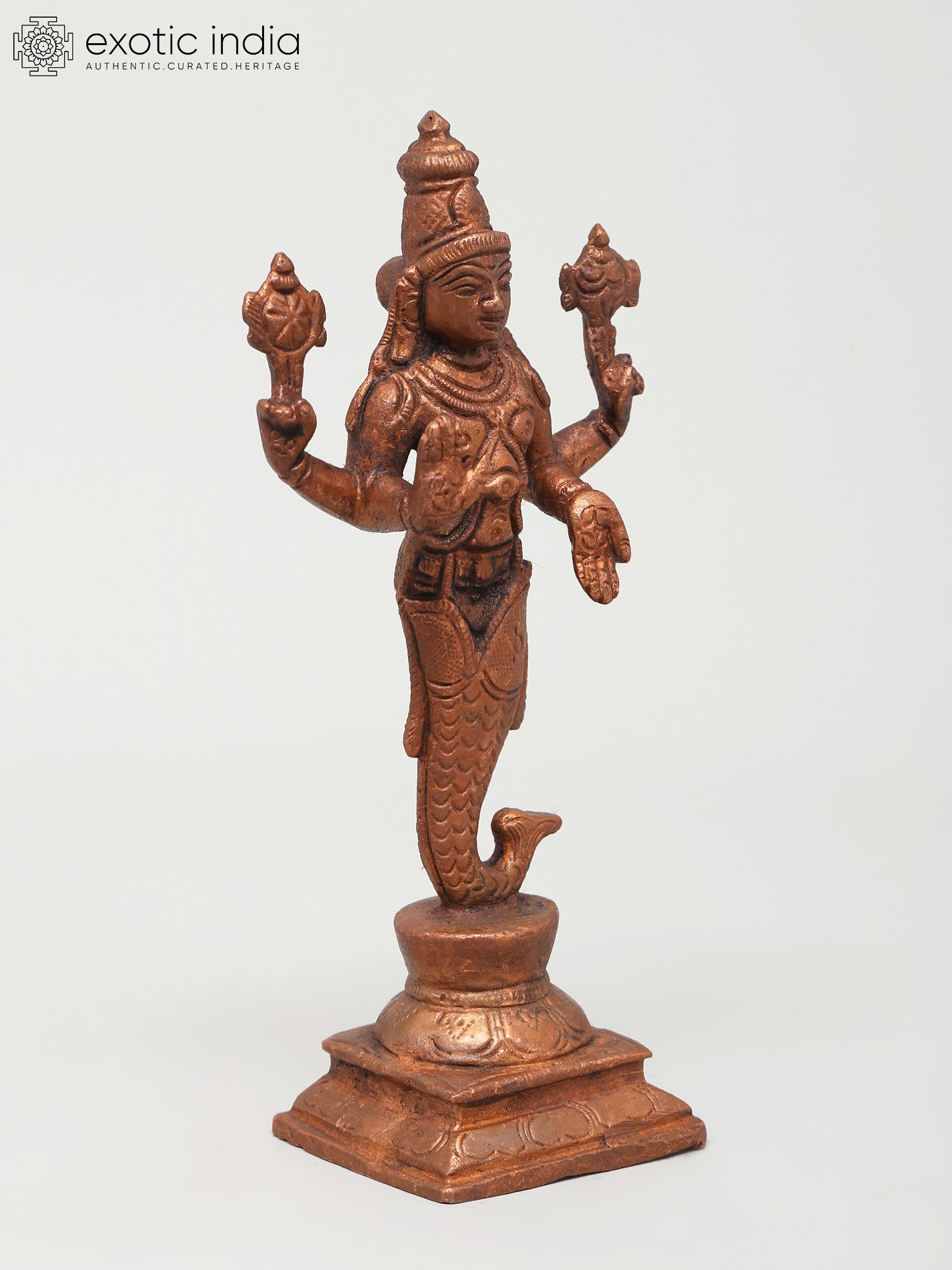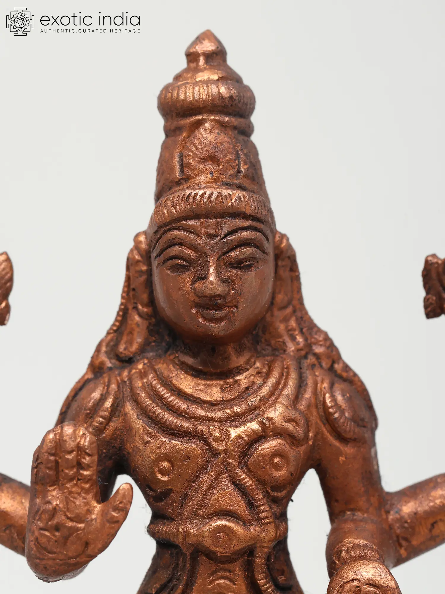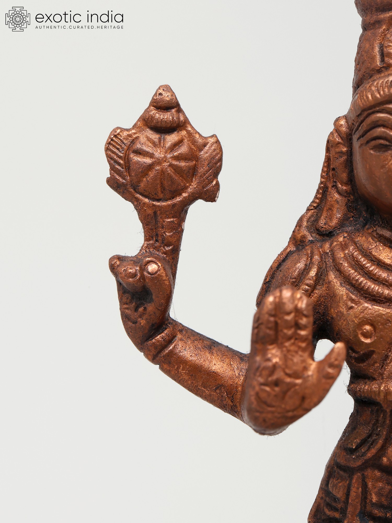 6" Small Four Armed Standing Lord Vishnu | Copper Statue
