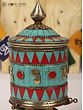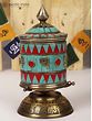 6'' Rotating Prayer Wheel on Base with Inlay Work | Brass with Inlay Work | From Nepal