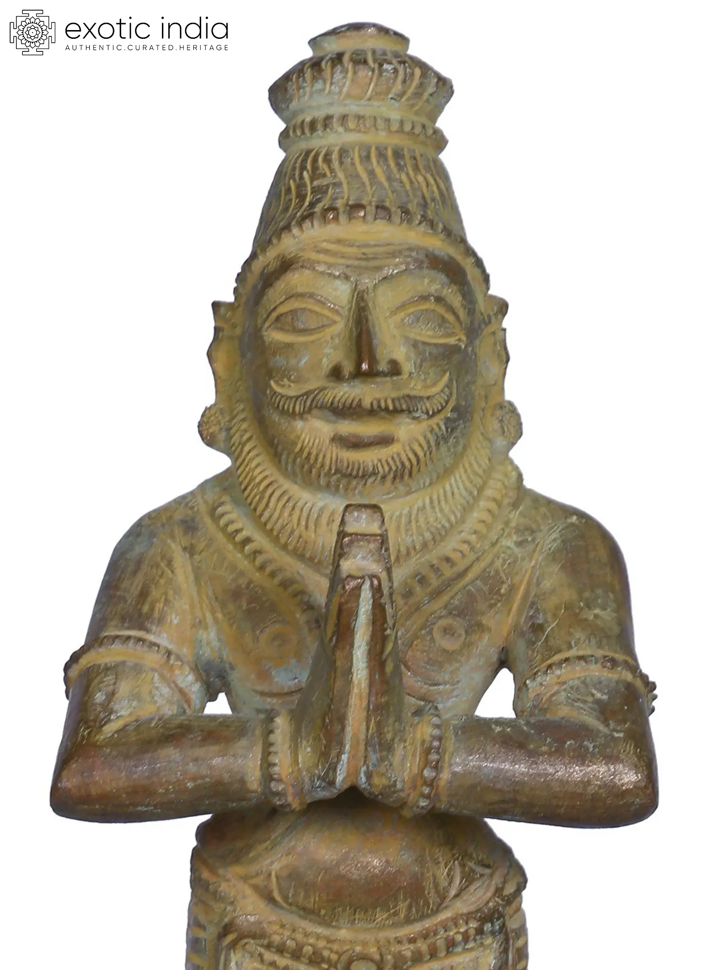 His intricate attire and detailed craftsmanship reflect the artistic heritage of bronze sculptures in Indian art.