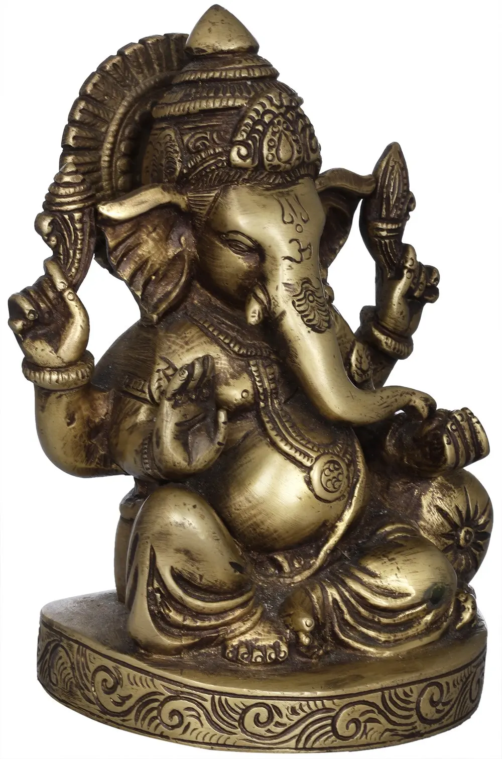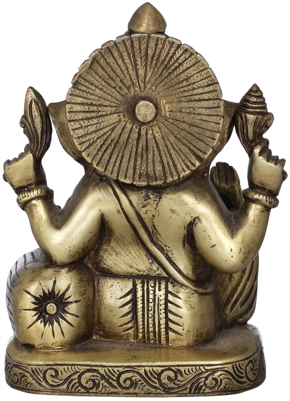 In this portrayal, Lord Ganesha sits gracefully with a cushion, signifying comfort and ease. As the son of “Lord Shiva” and “Goddess Parvati”, Ganesha’s endearing appearance reflects his divine qualities of compassion, intellect, and benevolence. With his right hand raised in a gesture of fearlessness and protection, Ganesha showers his divine blessings upon his devotees. Known as the Remover of Obstacles, Ganesha is invoked before commencing any venture or auspicious occasion. His love for Modak (sweet delicacy) is a testament to his indulgence in simple joys. Invoke the blessings of the harbinger of Success with this spectacular brass creation, bringing divine energy and auspiciousness into your life.
