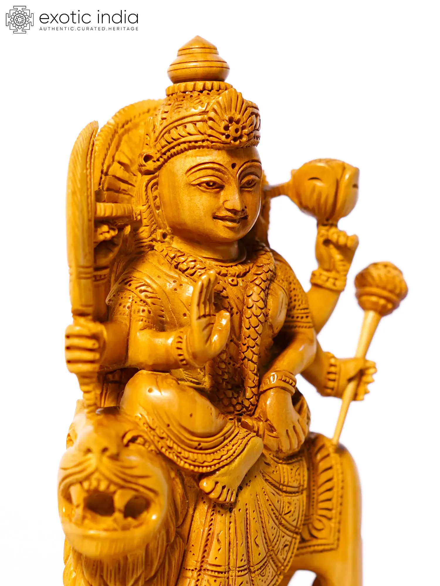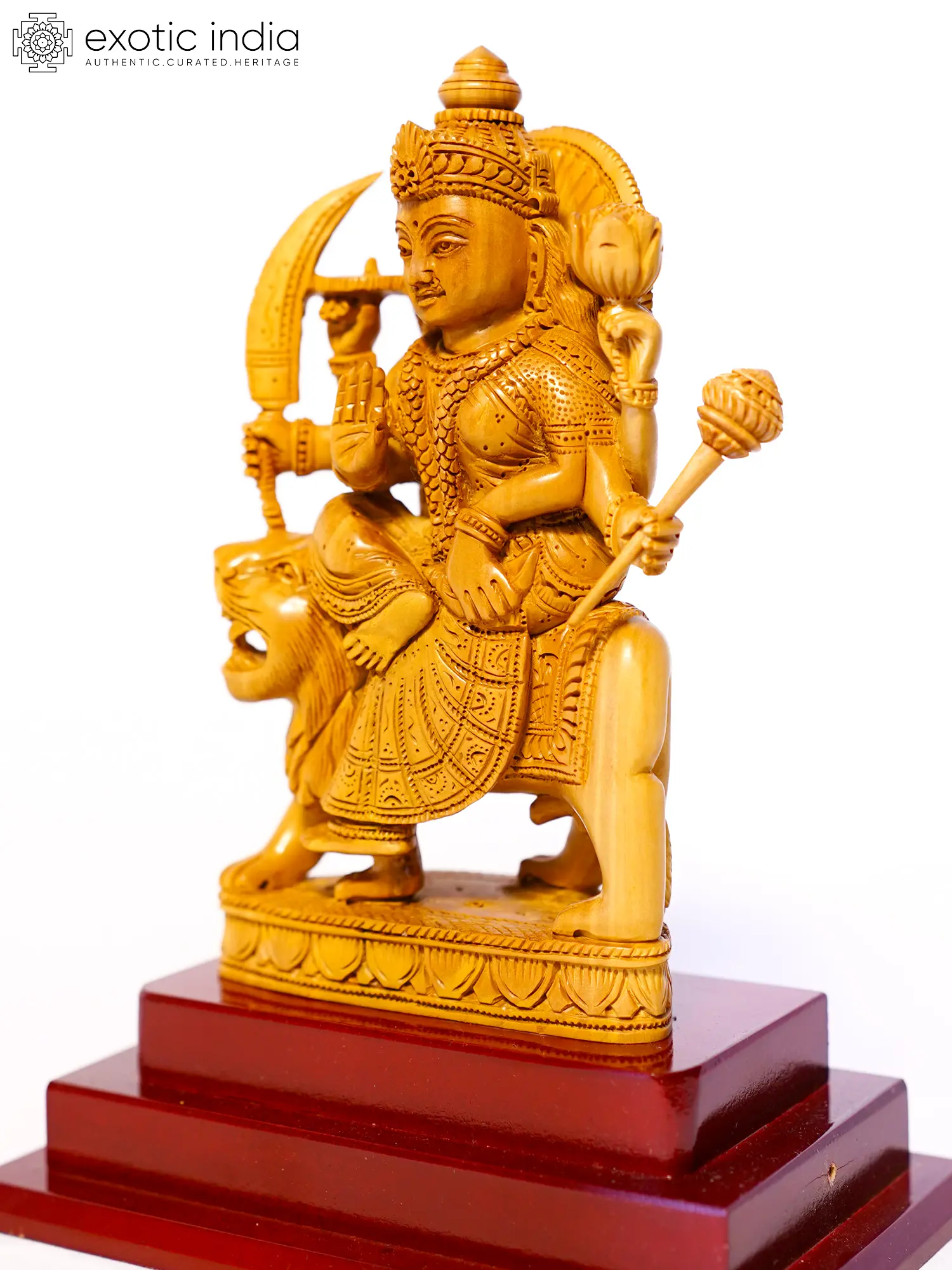 6" Sherawali Maa | Sandalwood Carved Statue