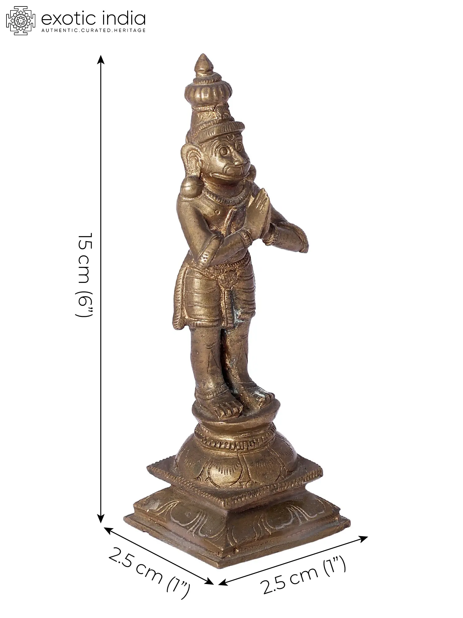 In this mesmerising portrayal, Hanuman’s hands pressed together signify his unwavering devotion and submission to the divine will. The Namaskar Mudra captures his essence as a symbol of selfless service, loyalty, and unwavering faith. Through this gesture, Hanuman’s enduring message of devotion and humility resonates, inspiring countless devotees to embrace a path of devotion and righteousness. Crafted using the ancient Madhuchista Vidhana (Lost-Wax) technique, this “Panchaloha Bronze” masterpiece hails from the renowned artistic haven of Swamimalai. Elevate your surroundings and spirit with this eternal embodiment of reverence.