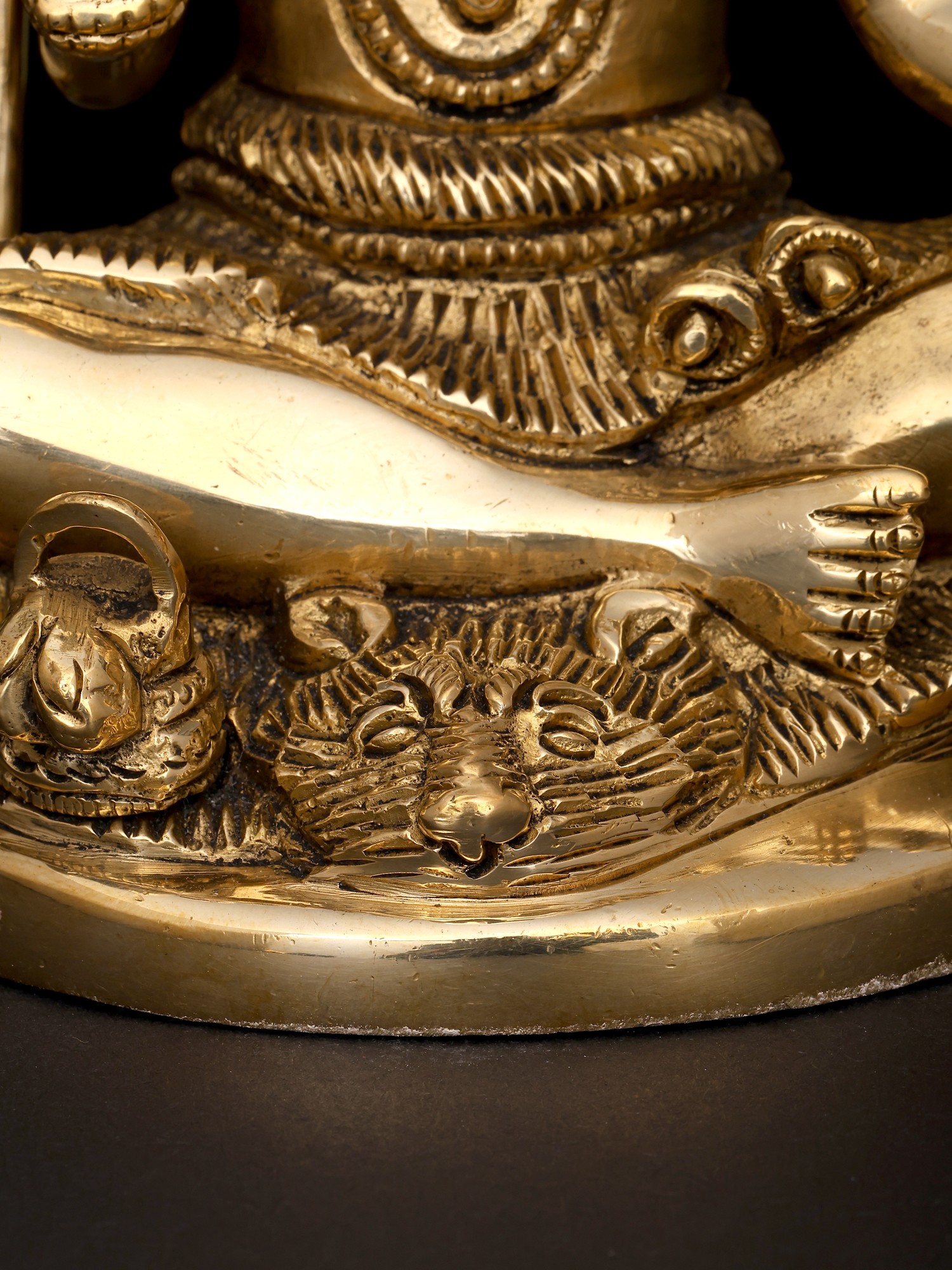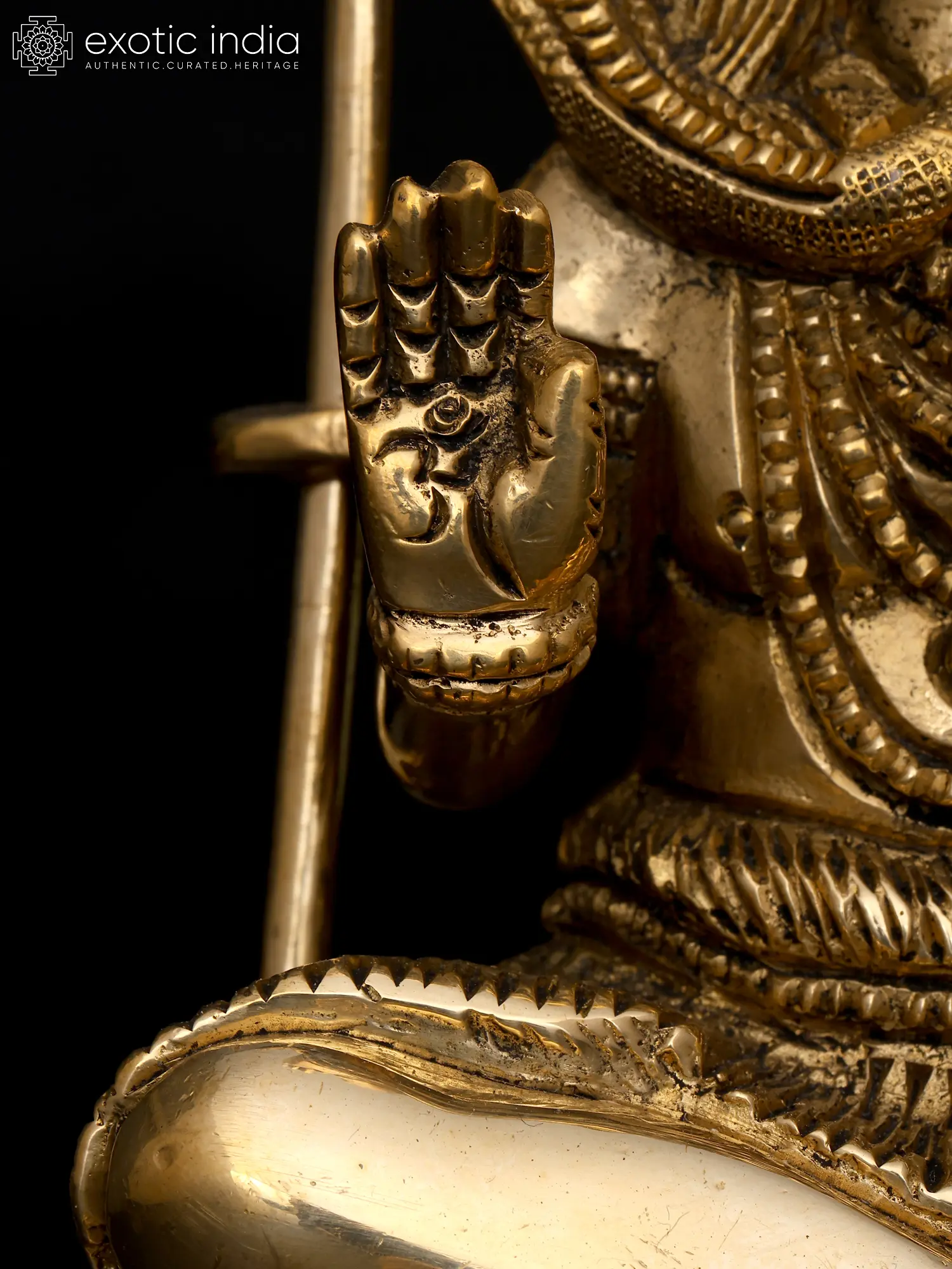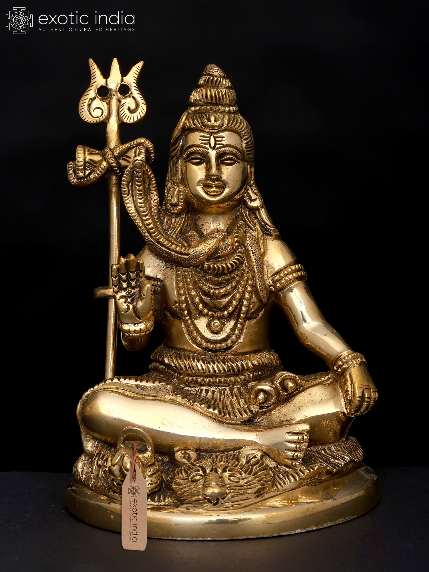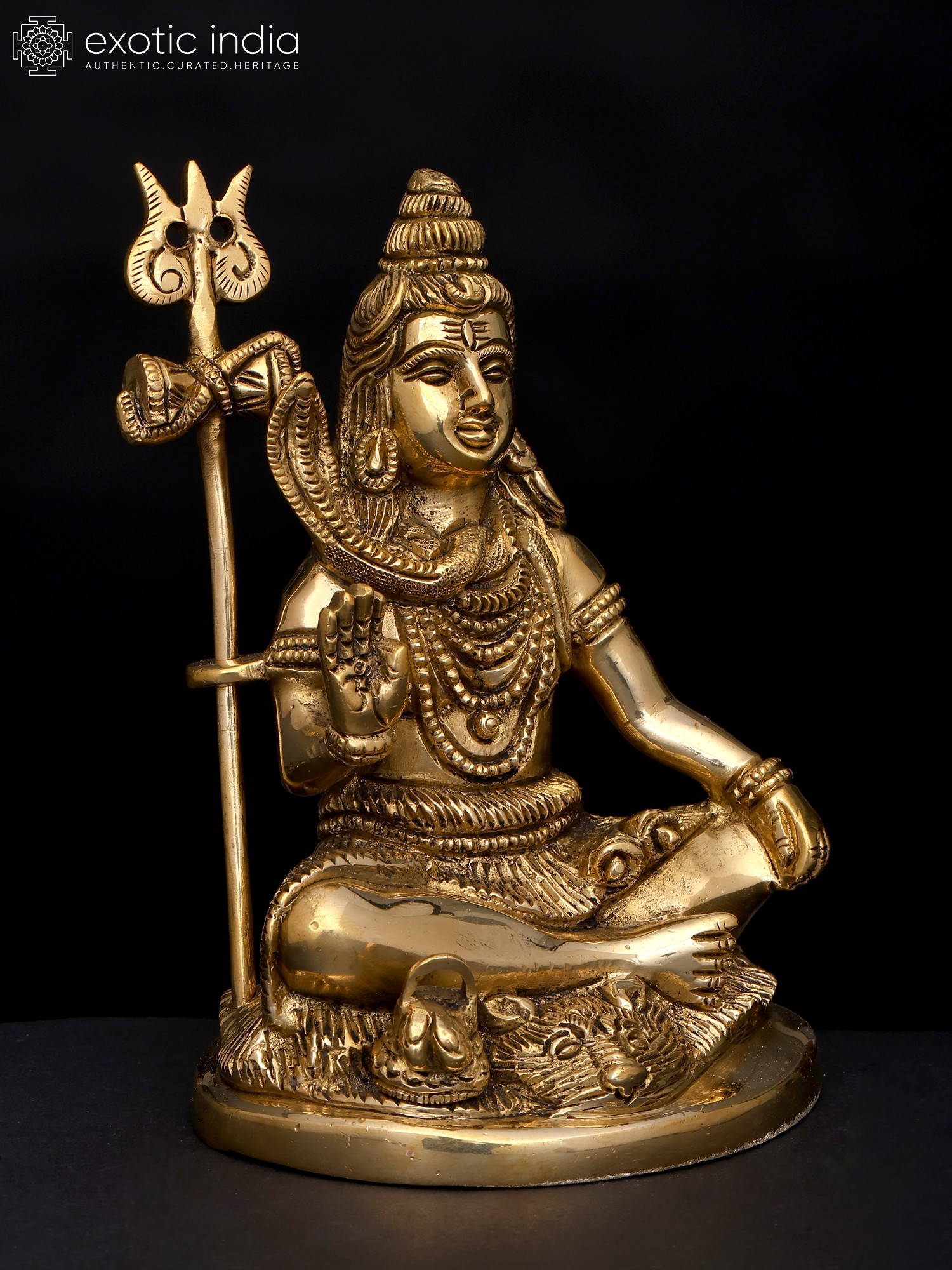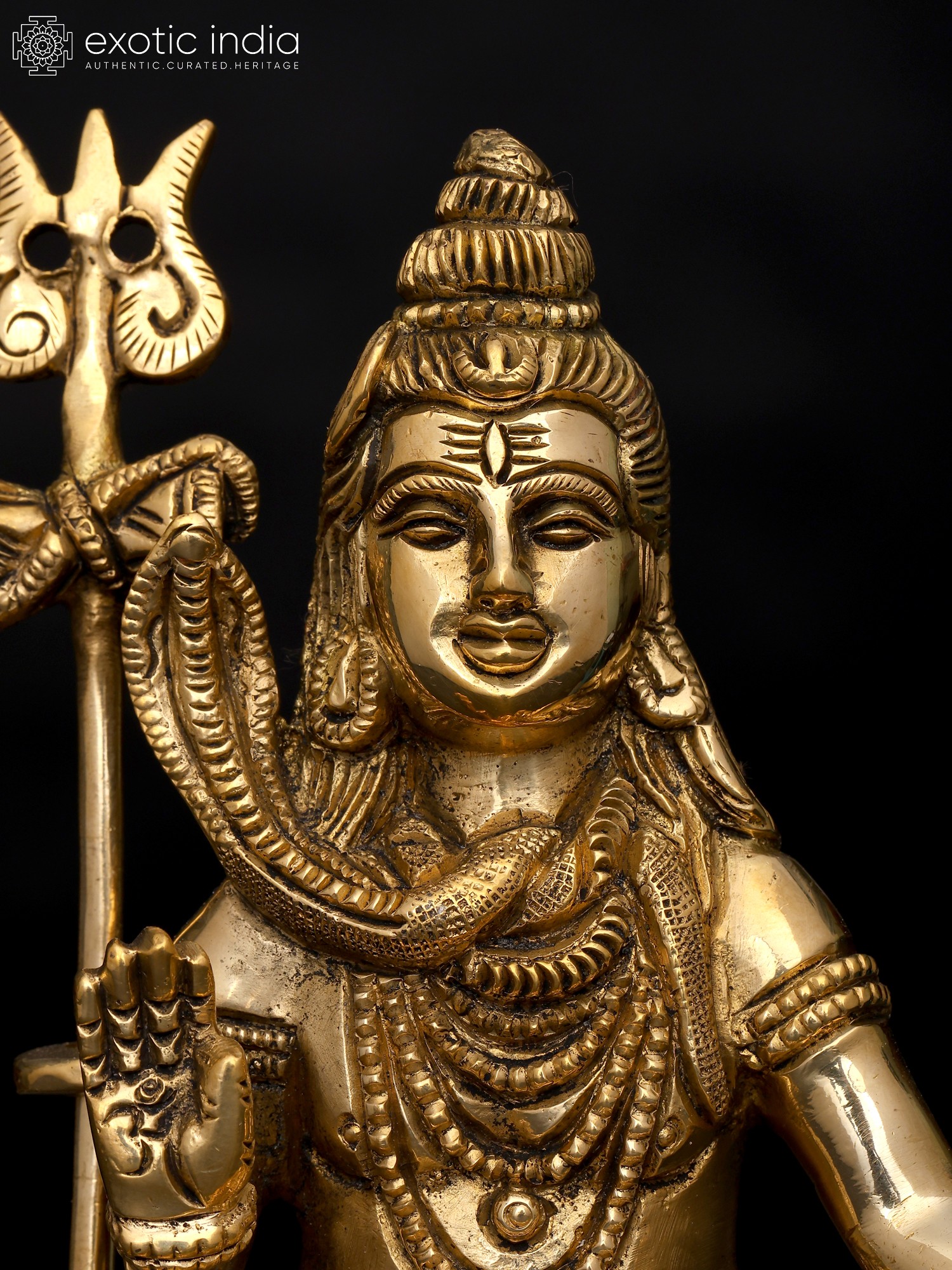 Lord Shiva, adorned in sacred ash and a serpentine adornment, is revered as the embodiment of transformation, wisdom, and spiritual ascension. In his iconic Abhaya Mudra, where his right hand is raised in a gesture of fearlessness, he conveys divine assurance and protection. As you gaze upon this sculpture, you are reminded of the Lord's eternal blessings and guardianship.