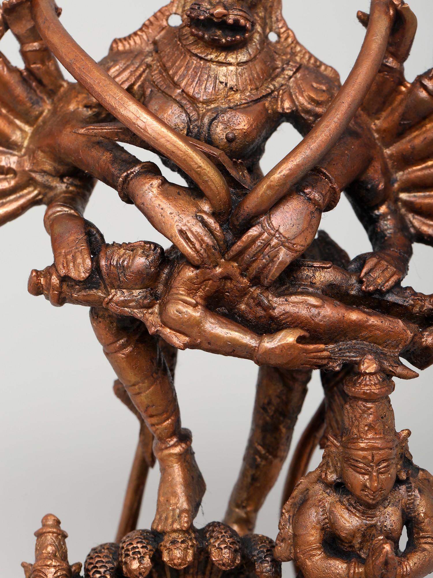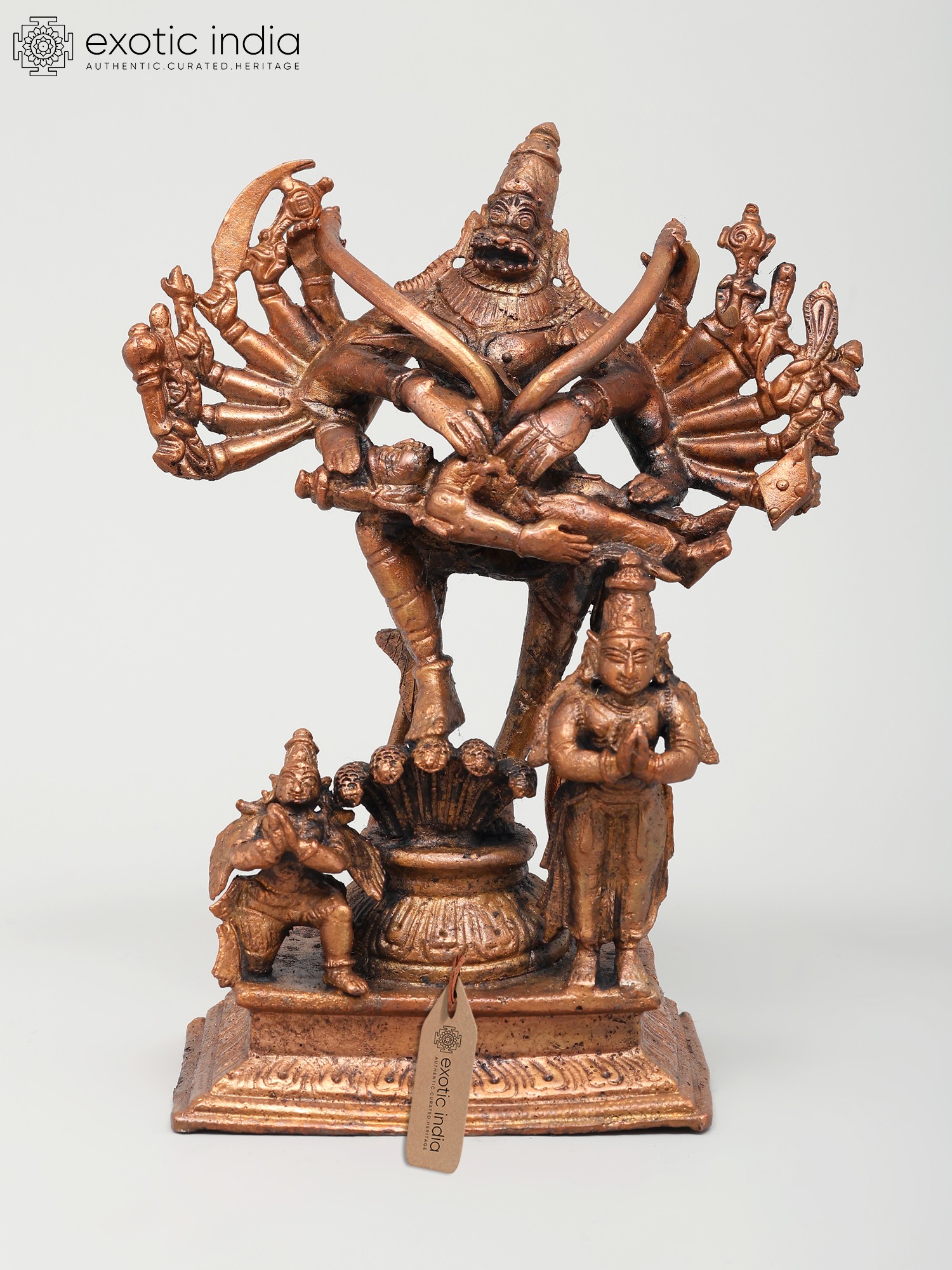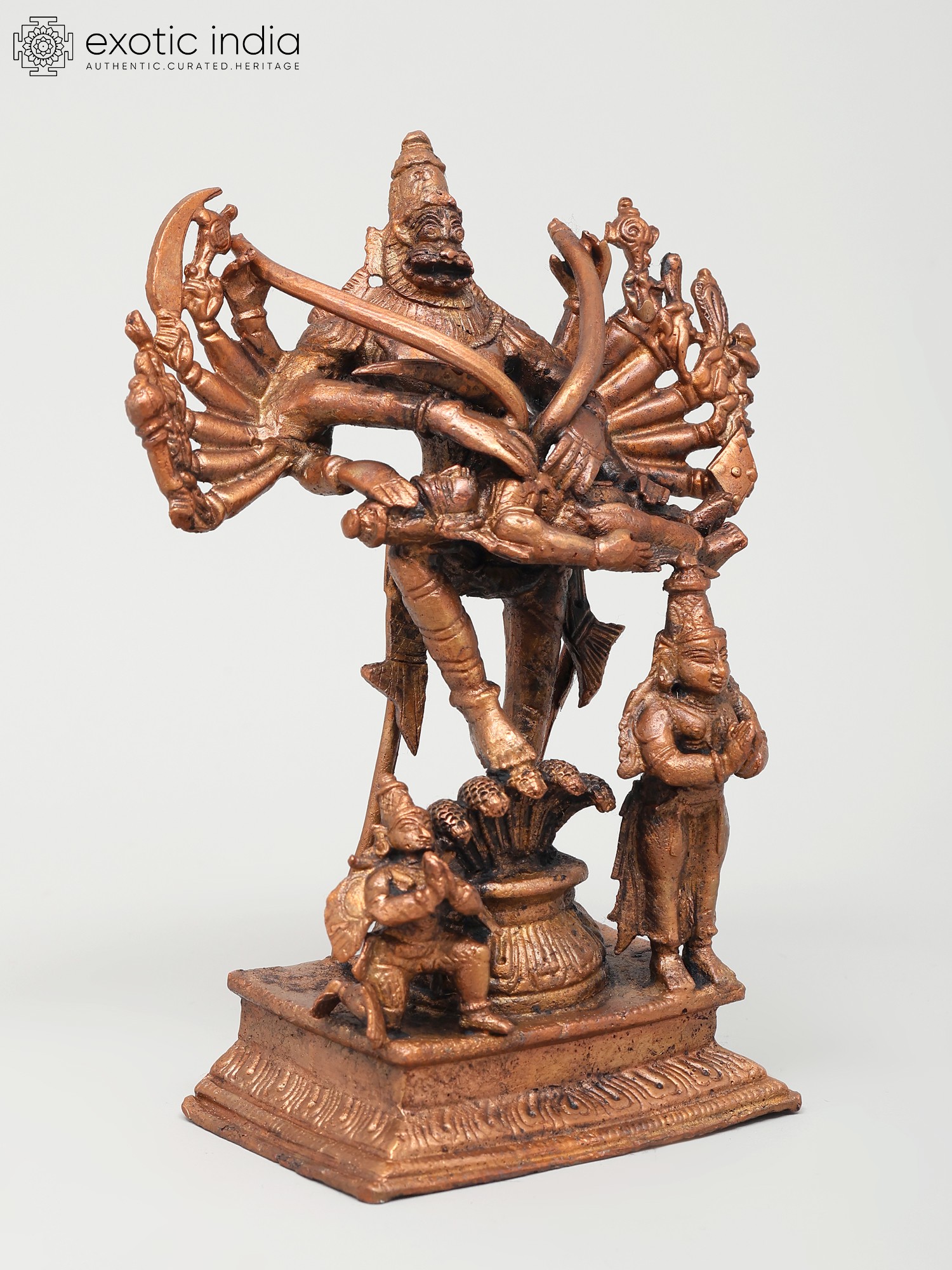 5" Small Lakshmi - Narasimha Idol with Garuda and Hanuman | Copper Statue
