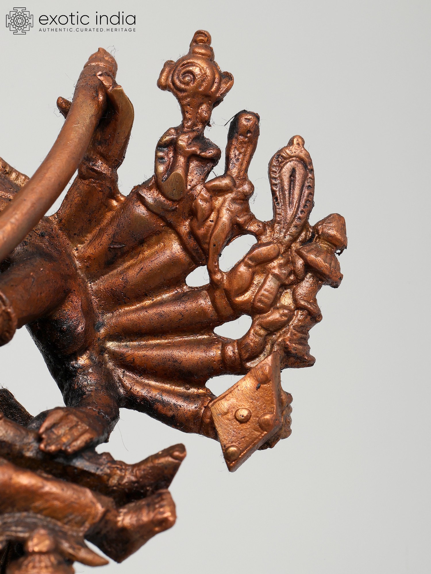 5" Copper Statue of Lakshmi Narasimha Seated on Sheshnag