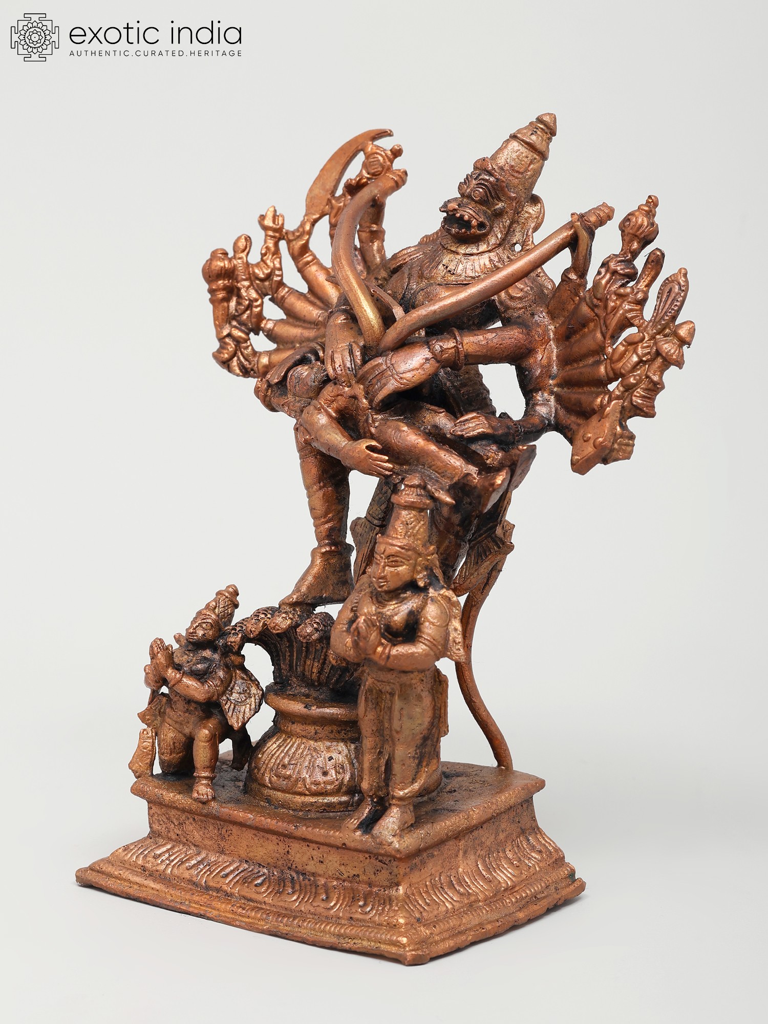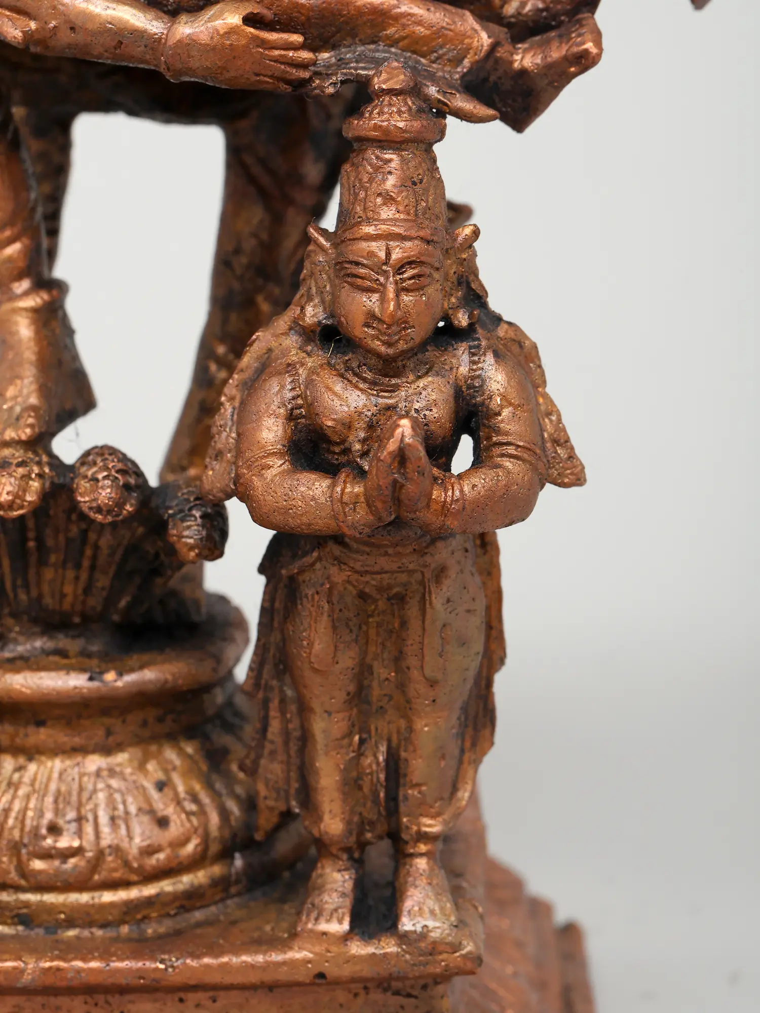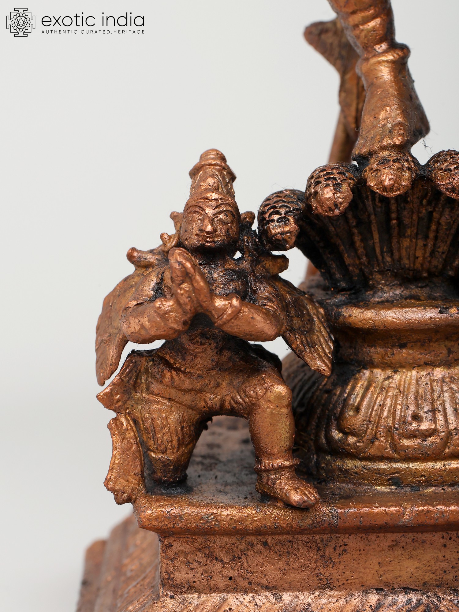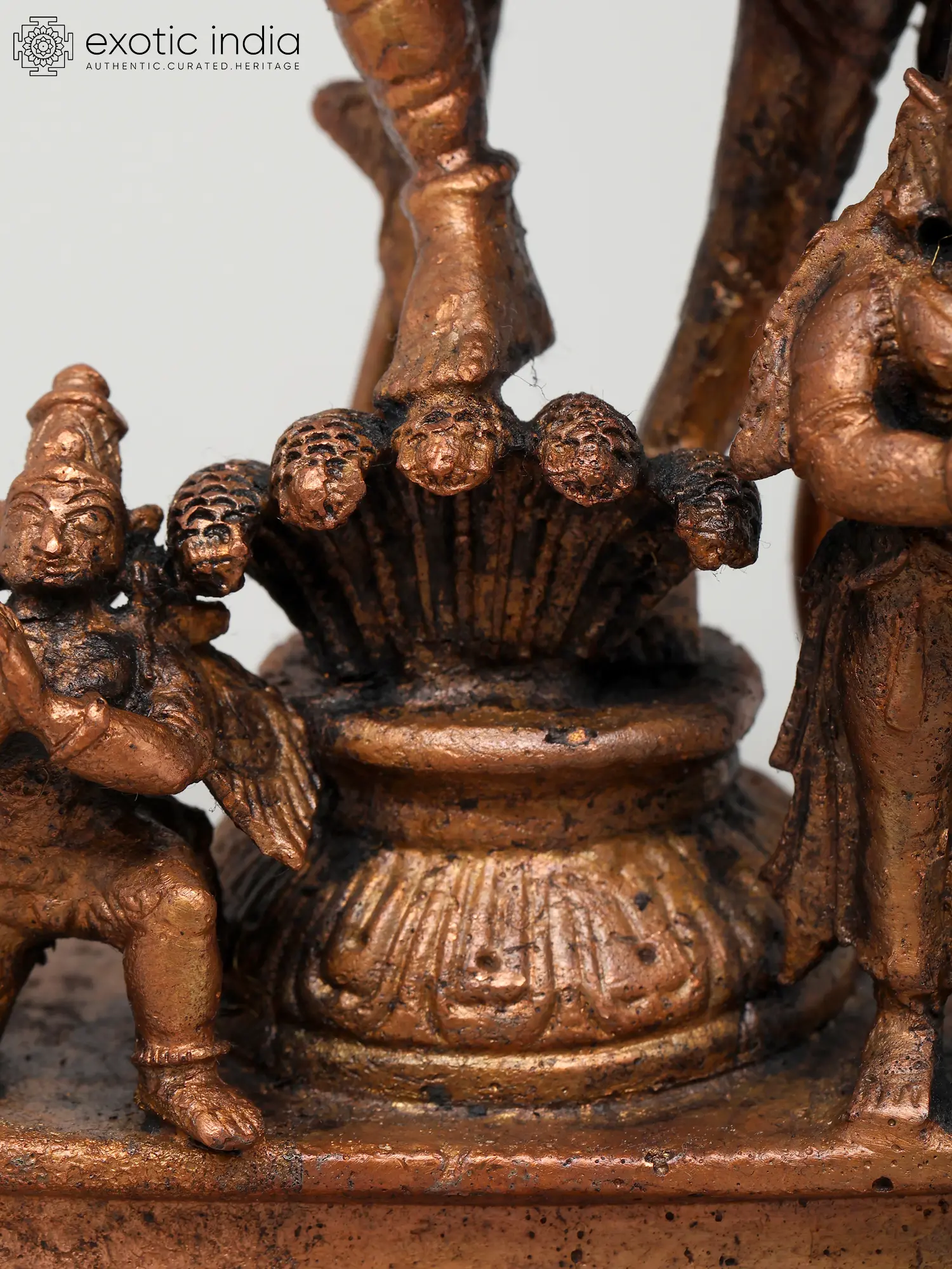 5" Small Lakshmi - Narasimha Seated on Sheshnag | Copper Statue