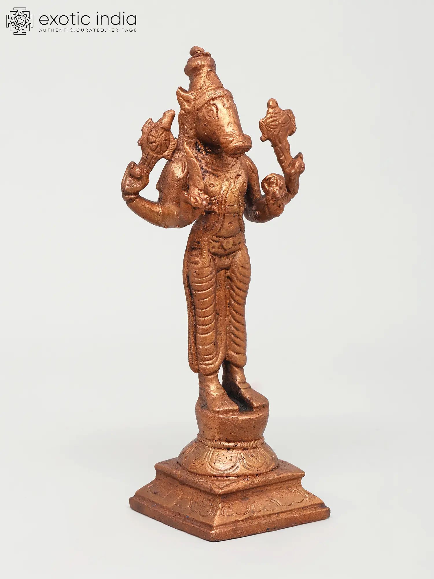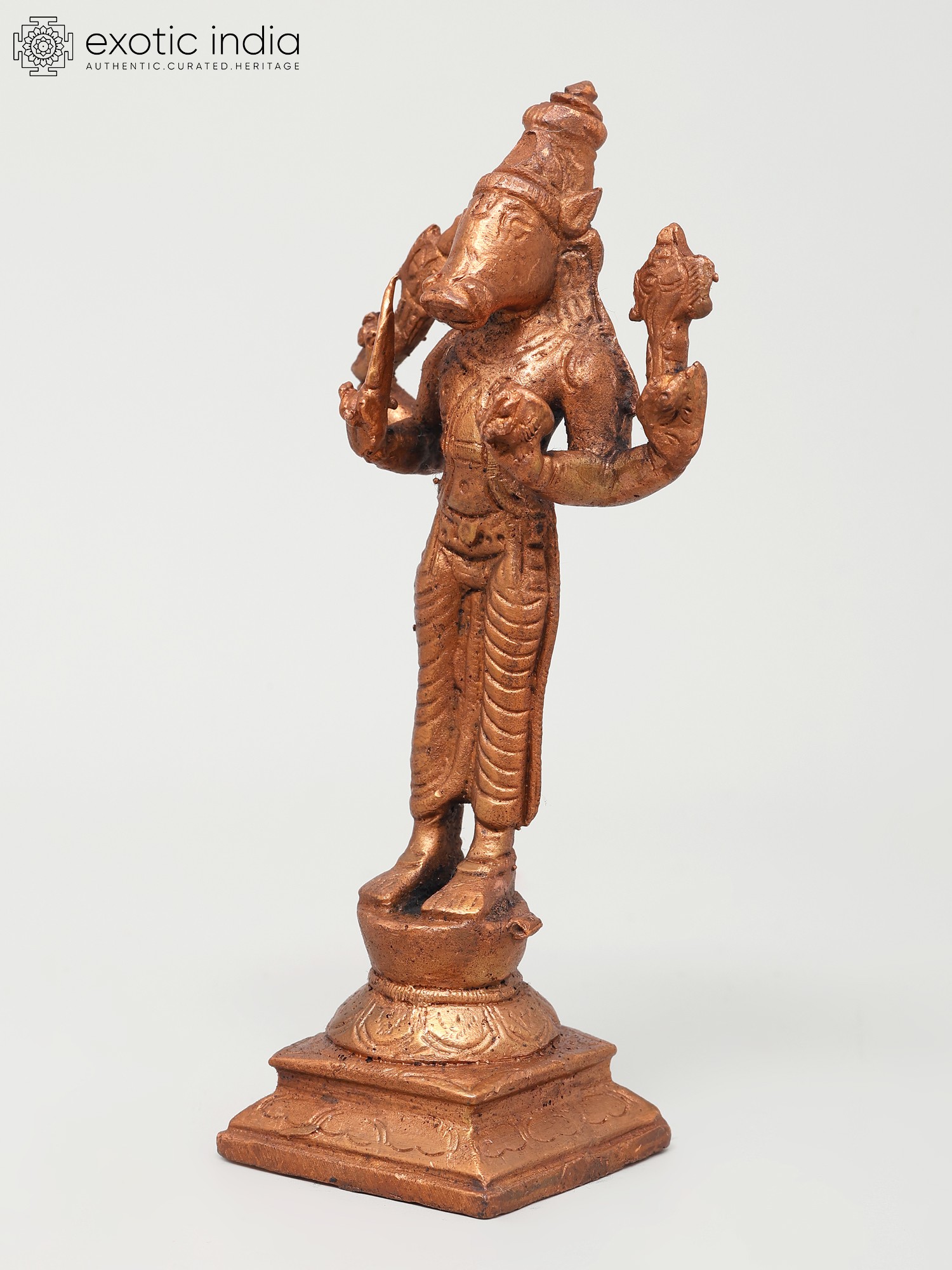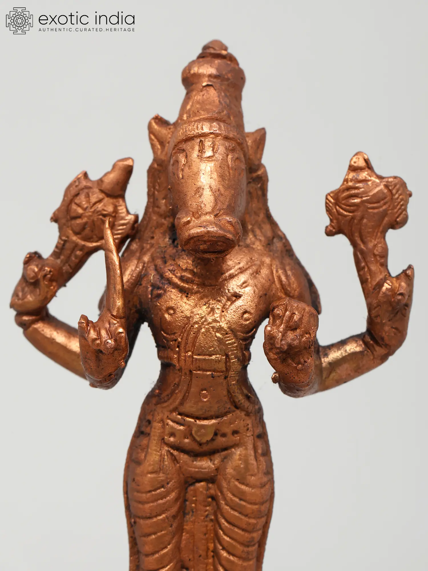 6" Small Standing Lord Varaha with Protecting Naag | Copper Statue