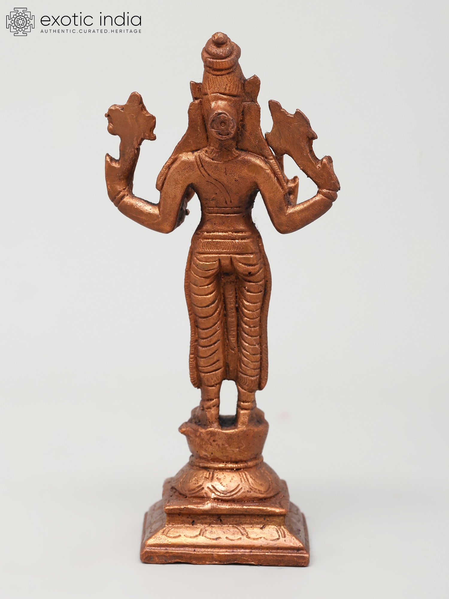 6" Small Four Armed Standing Lord Vishnu | Copper Statue