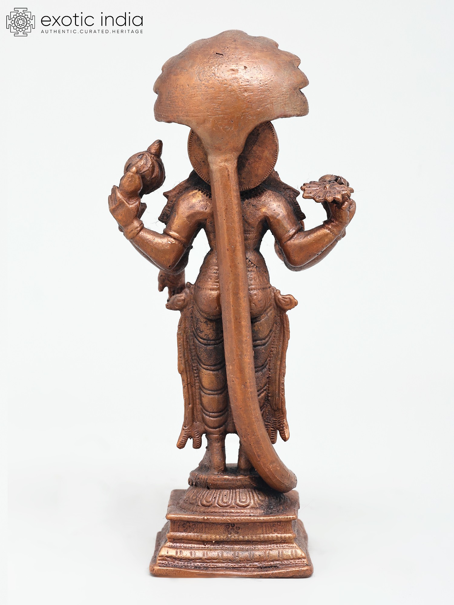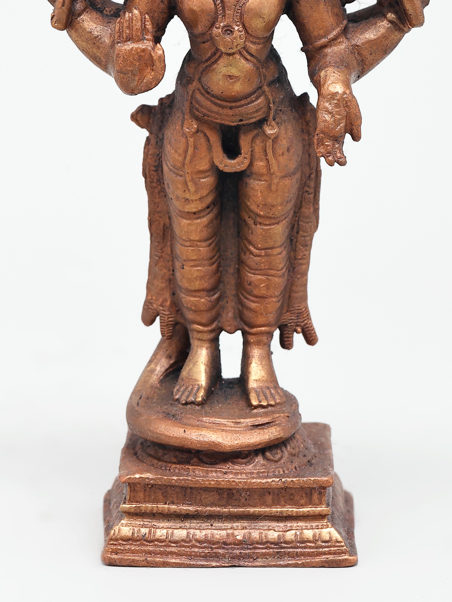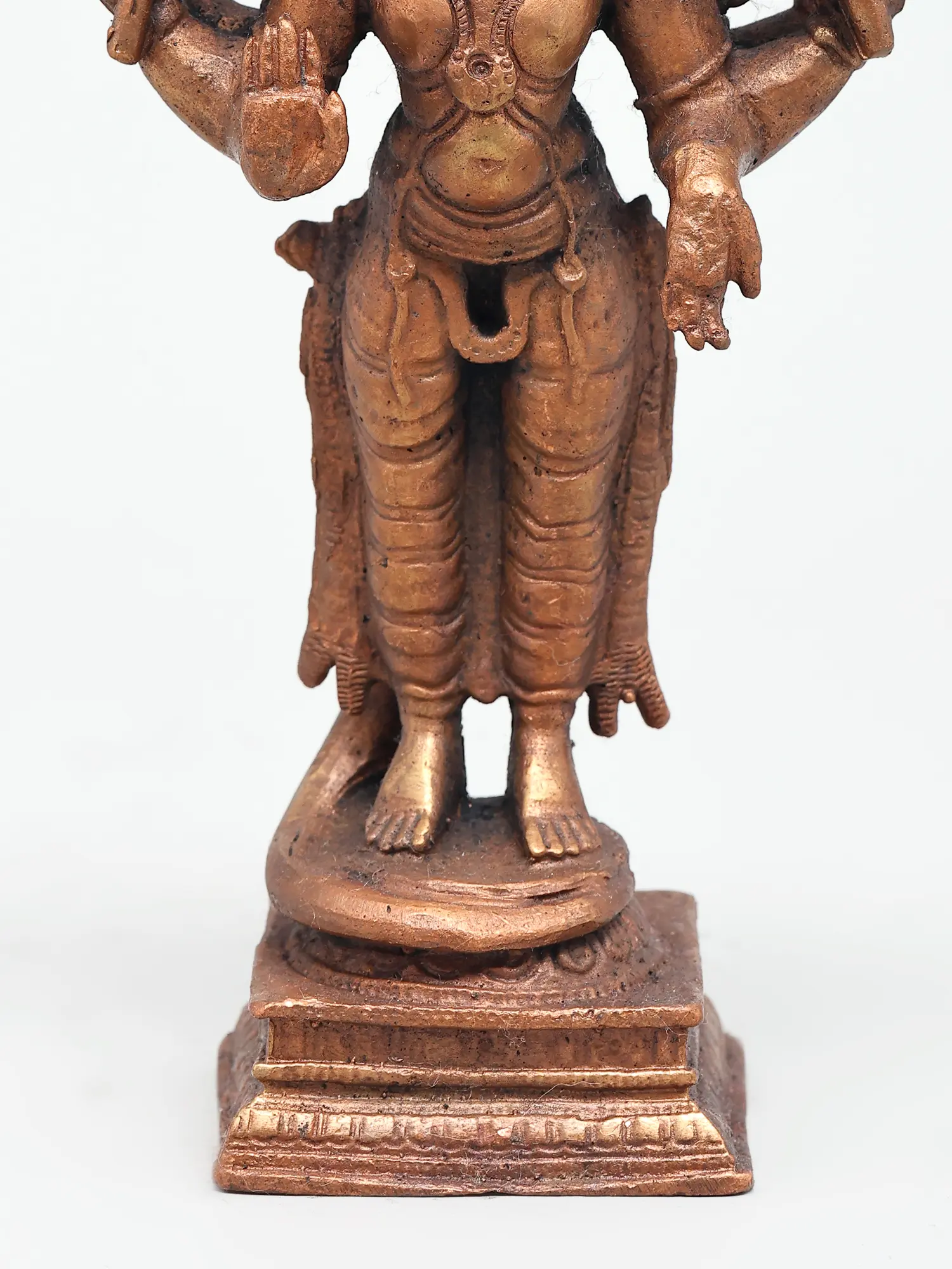6" Small Standing Lord Narasimha - The Fourth Avatar of Lord Vishnu | Copper Statue with Silver