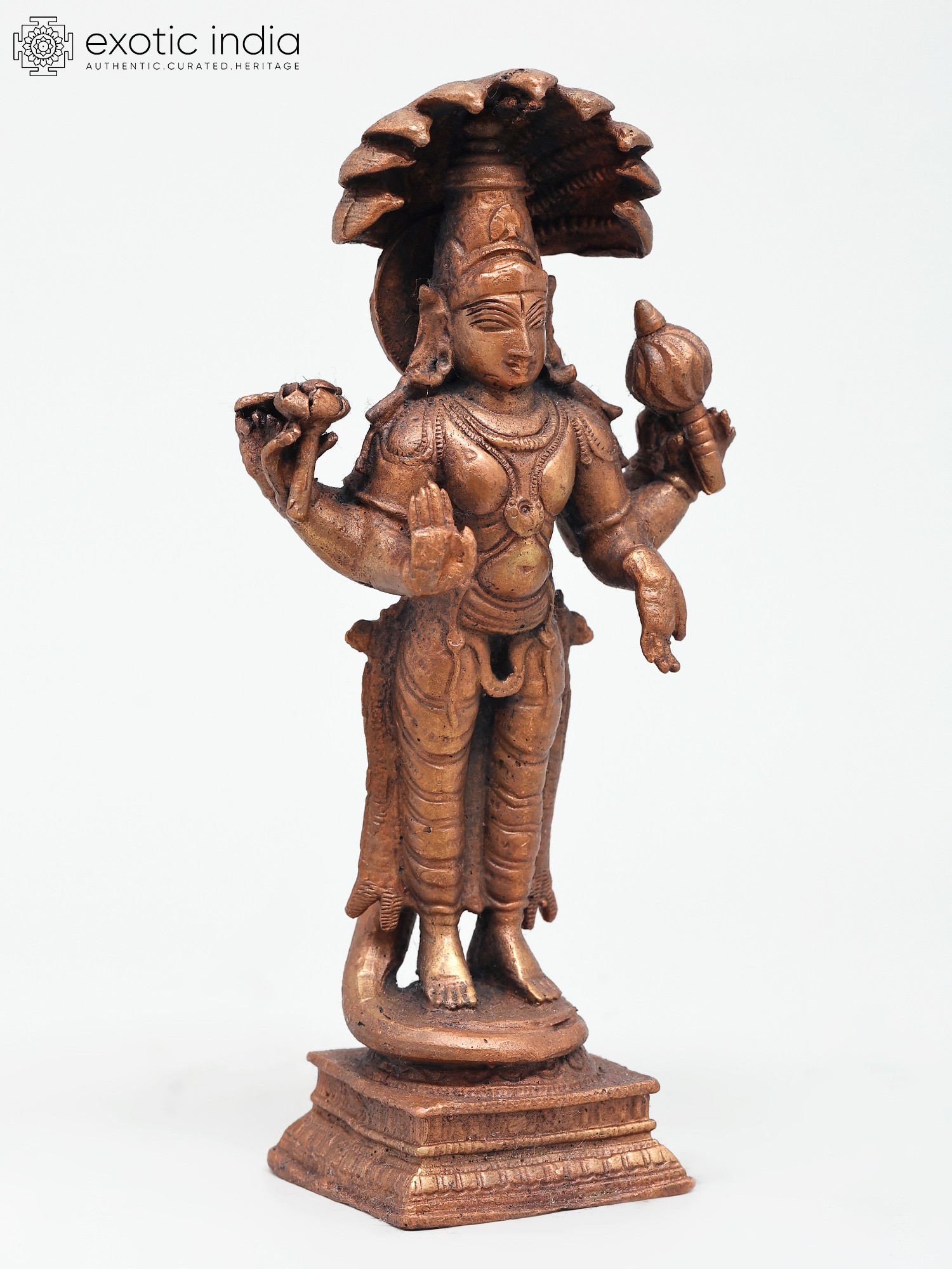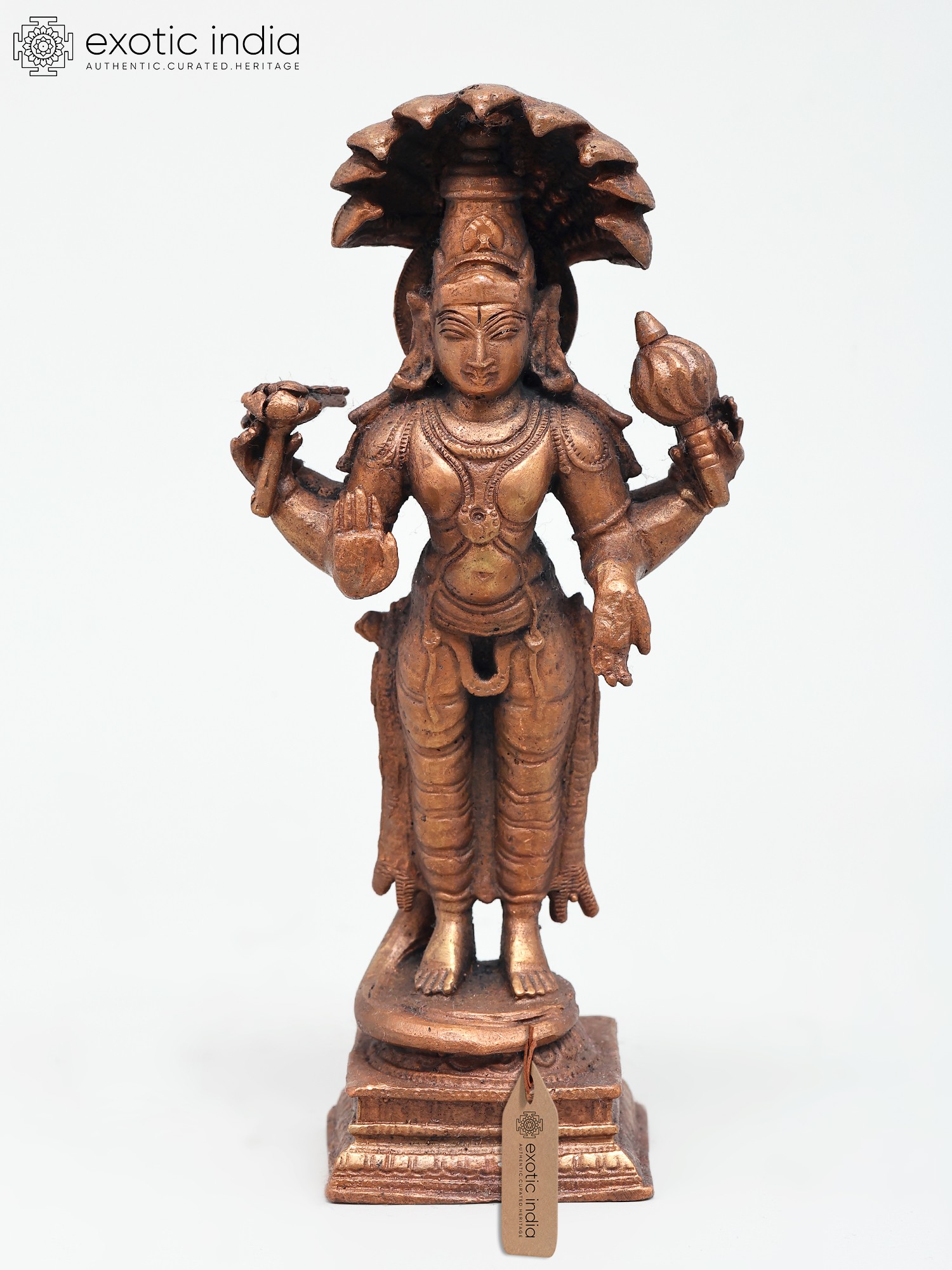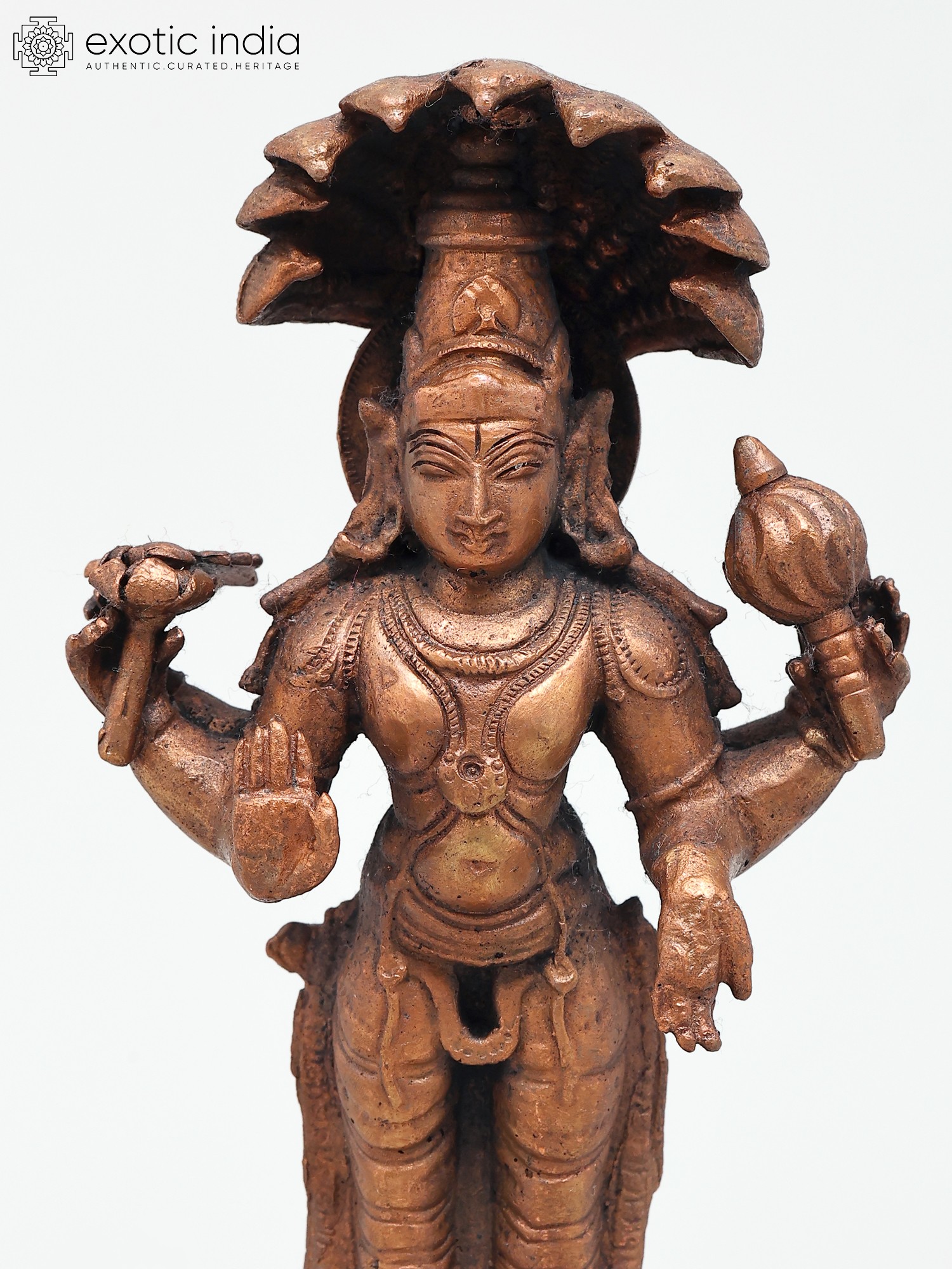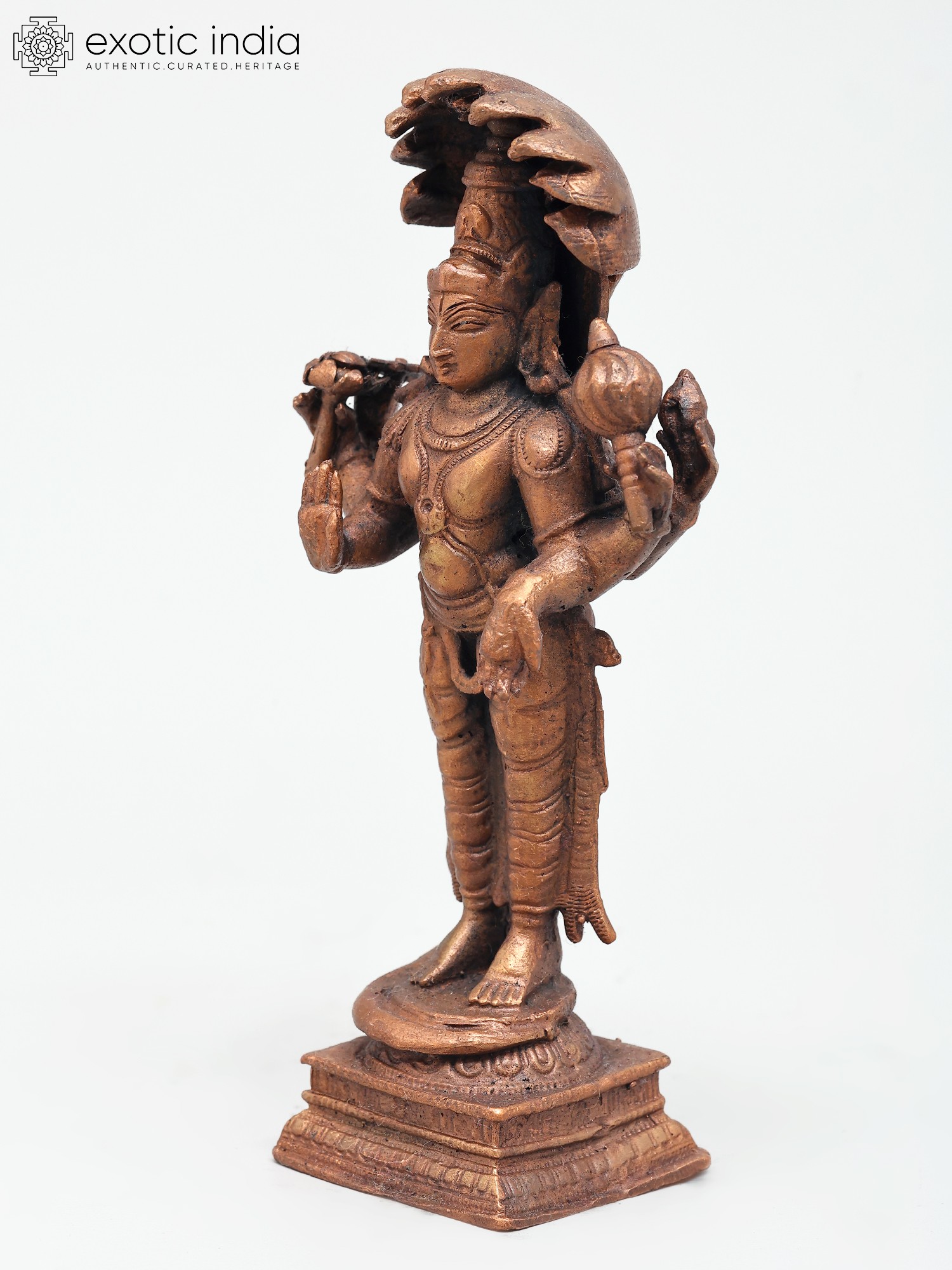 6" Small Standing Lord Narasimha - The Fourth Avatar of Lord Vishnu | Copper Statue with Silver
