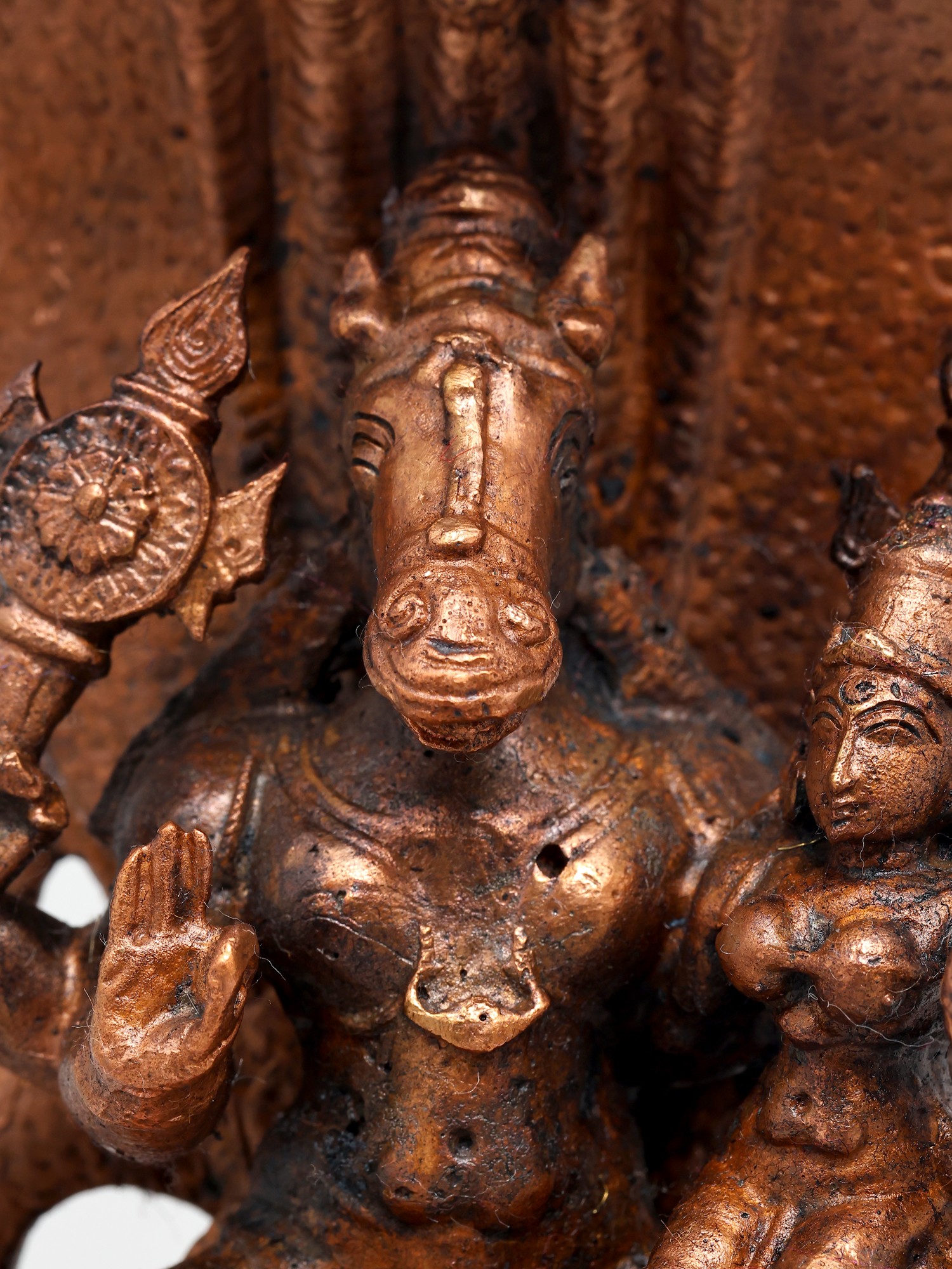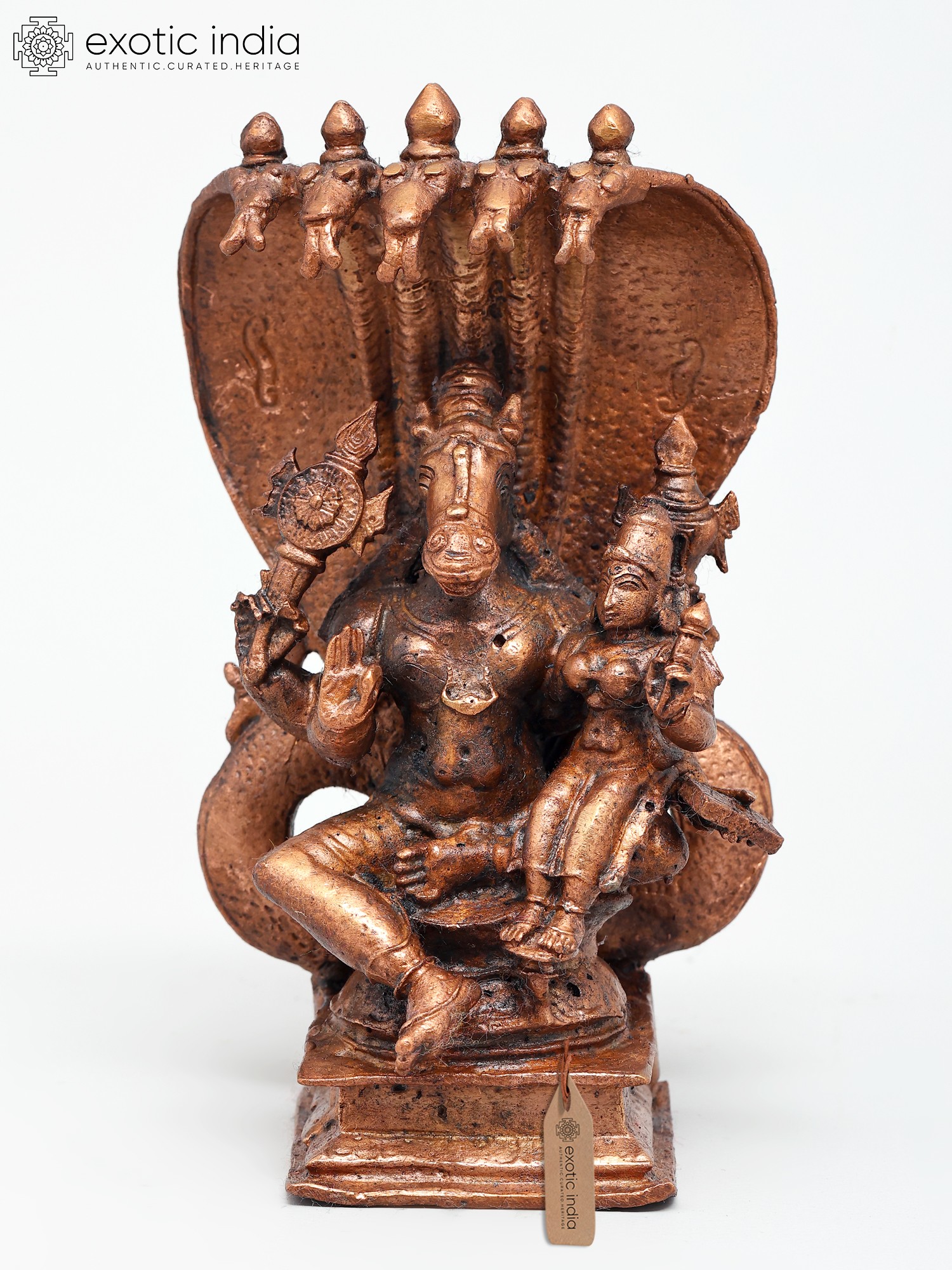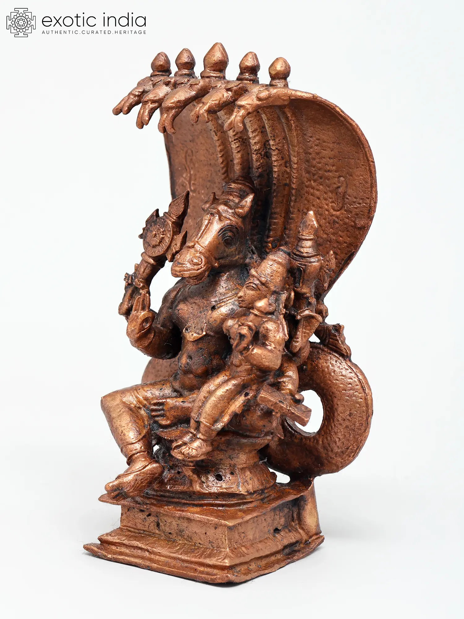 4" Small Lord Hayagriva with Devi Lakshmi | Copper Statue
