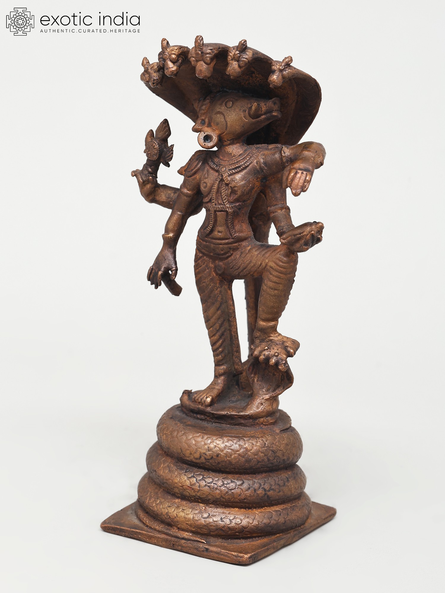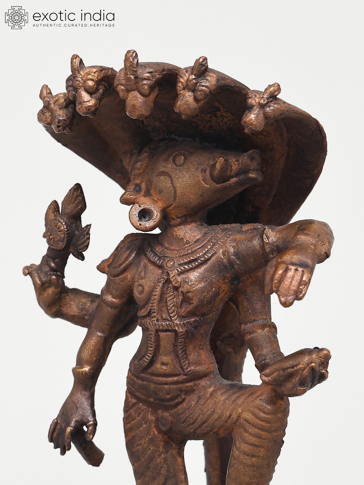 6" Eight Armed Standing Goddess Varahi | Copper Statue