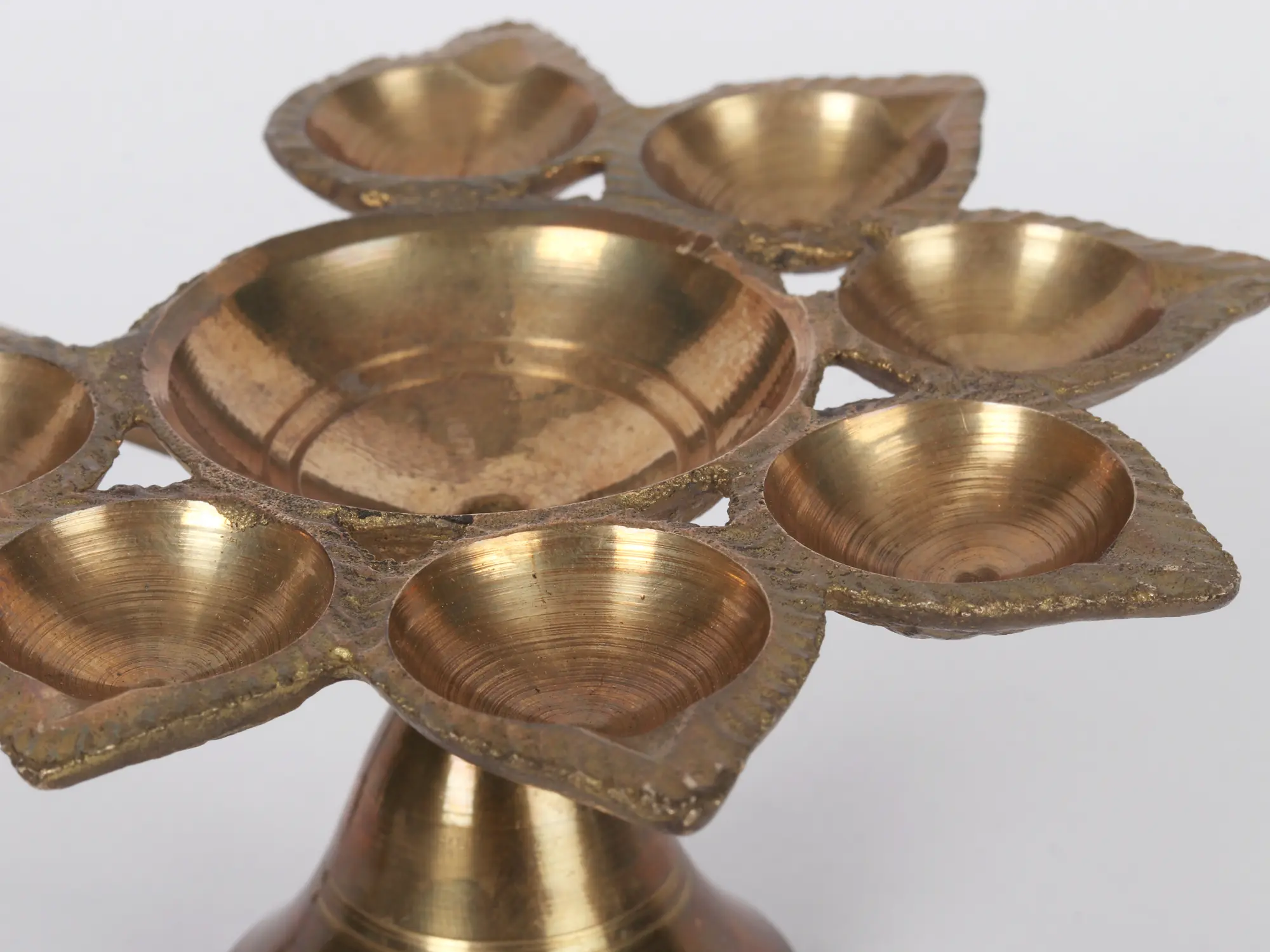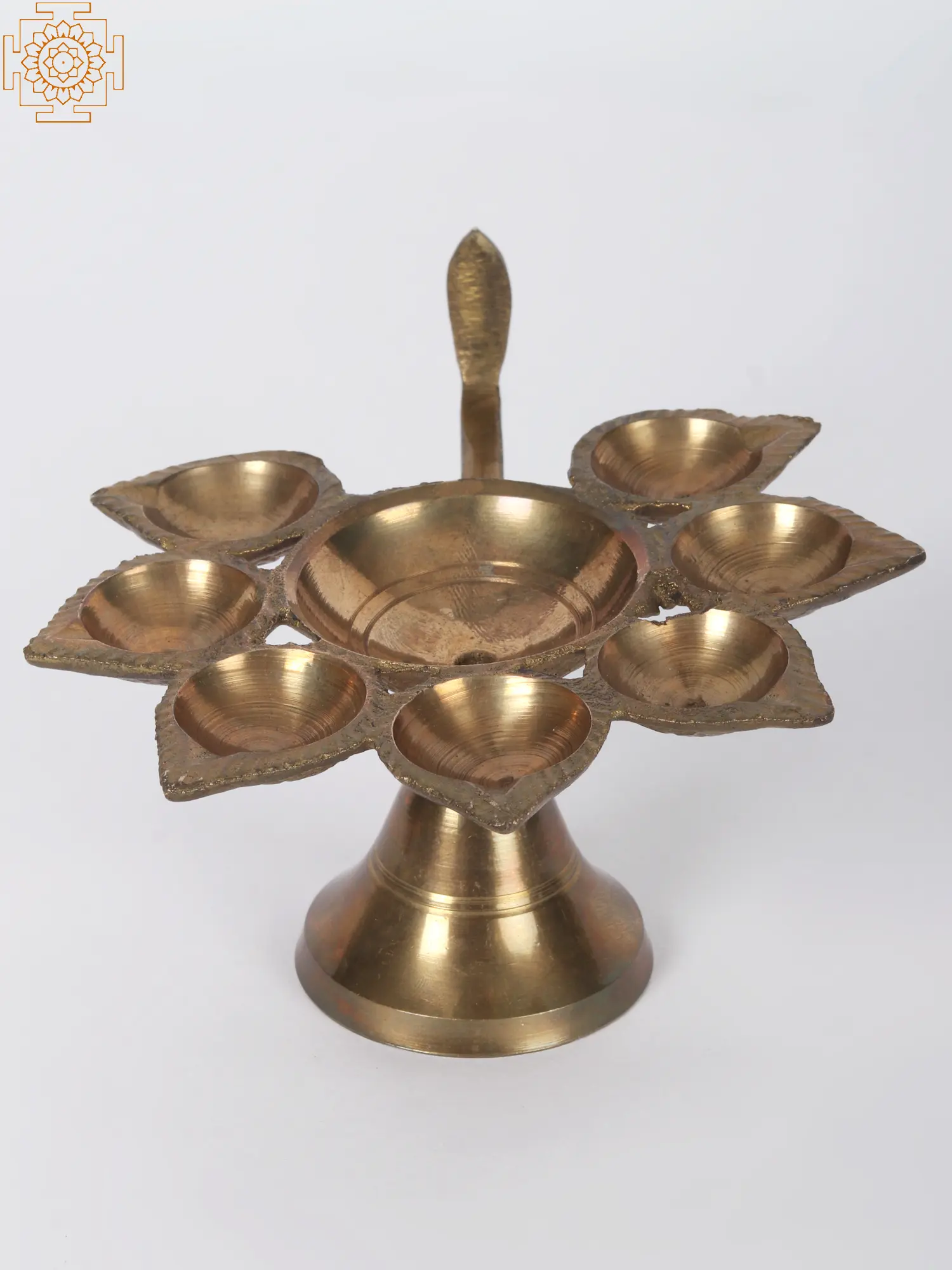 All traditional Hindu celebrations include aarti or the practice of showing devotion to the deities via the use of fire or incense. This hand-held brass Aarti Diya is painstakingly made and manufactured to serve the deities with the soft warmth of seven little wicks. The Diya is made of brass, a valuable metal that lends gravitas to the event. Because of the combination of a brass container and a sturdy grip, the devotee may offer devotion pleasantly. Including this component in daily worship services will guarantee that the respect process proceeds well.