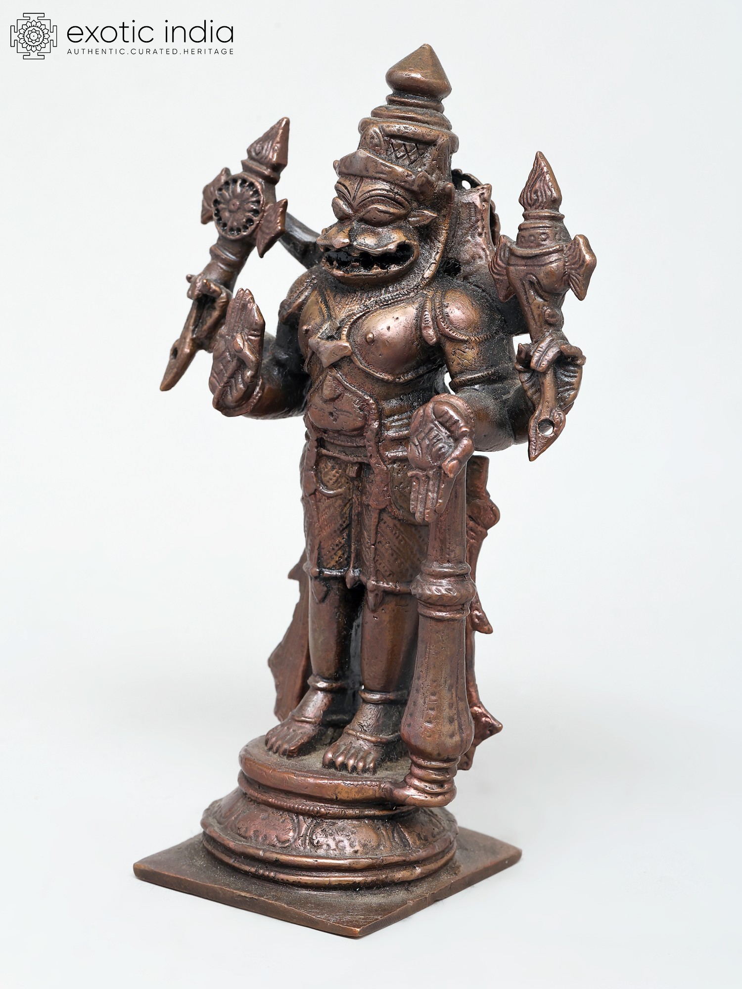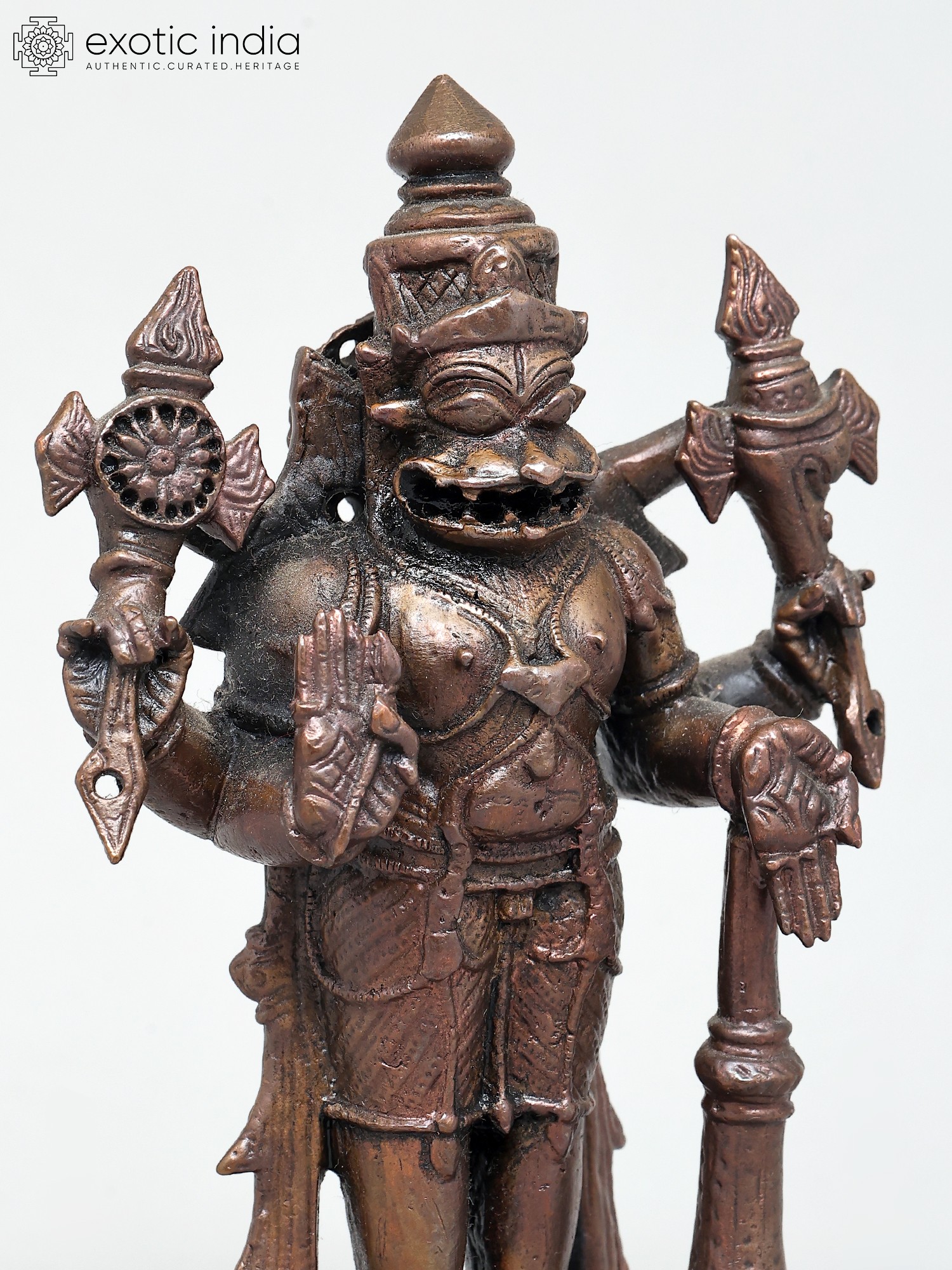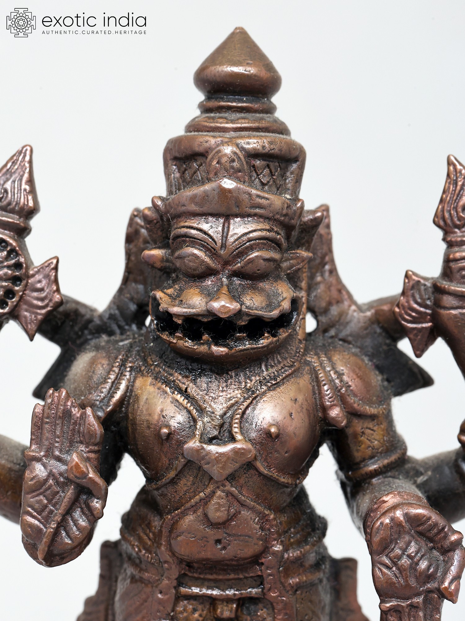 5" Small Copper Idol of Lord Narasimha Killing Demon Hiranyakashipu