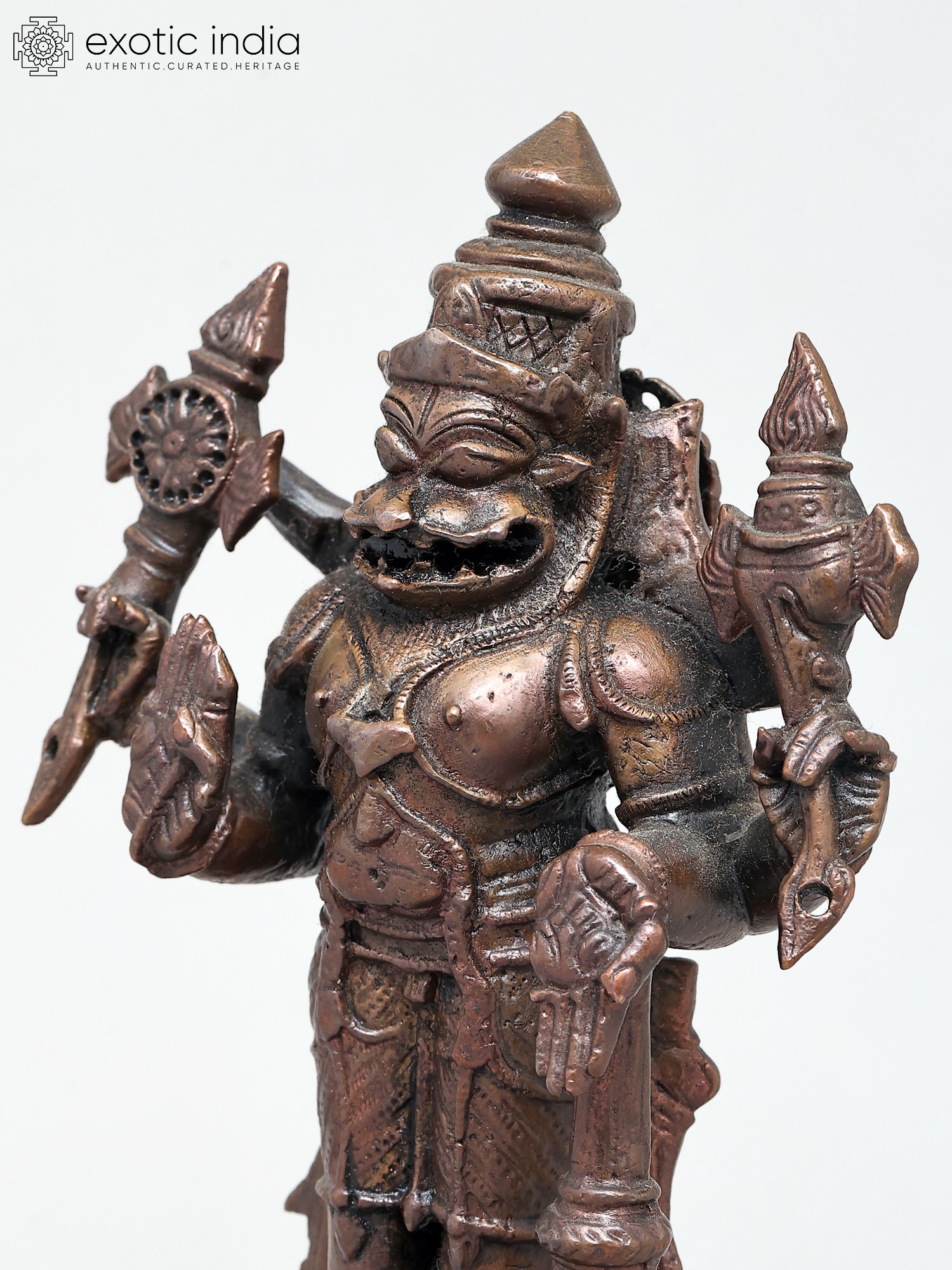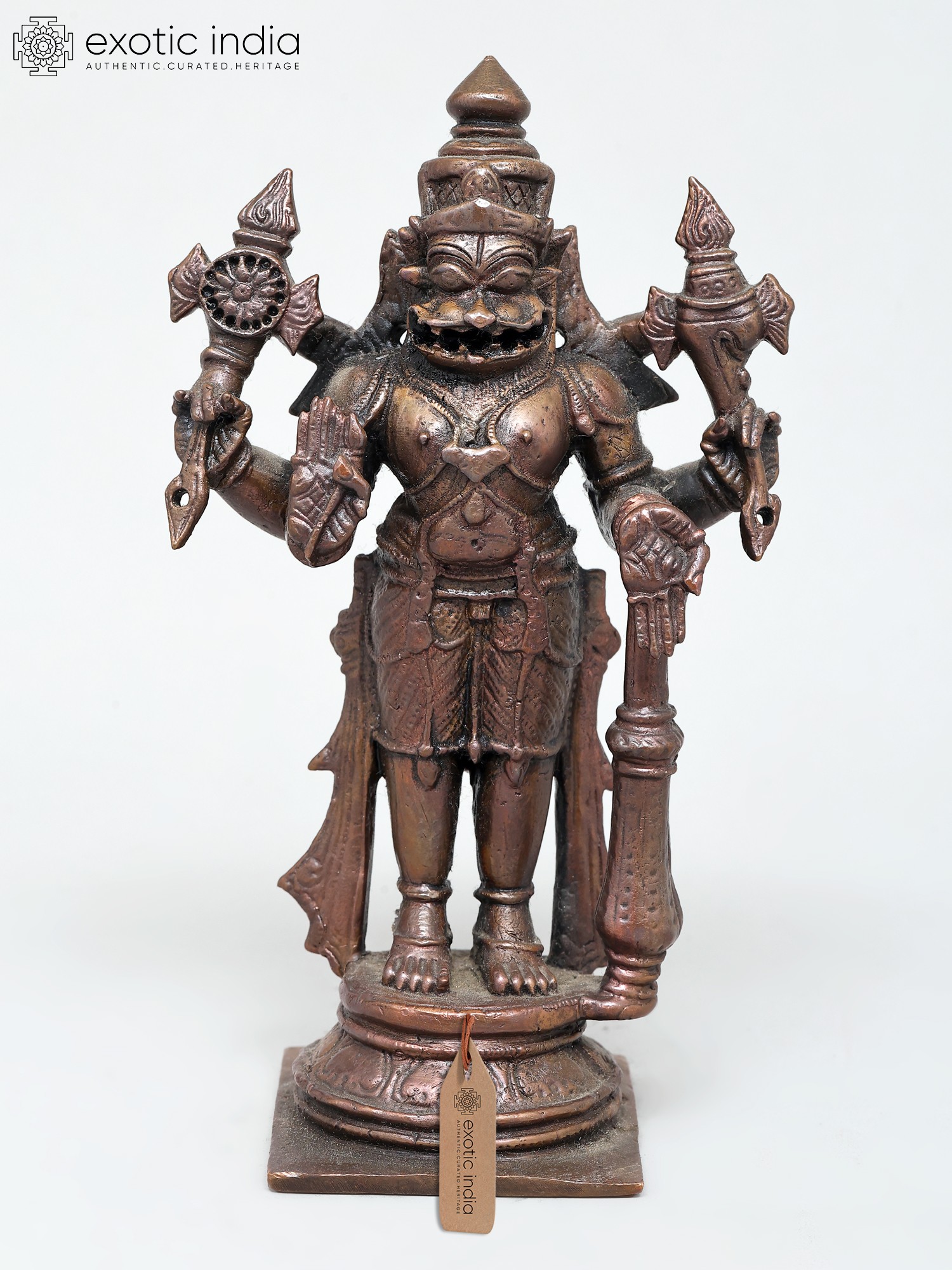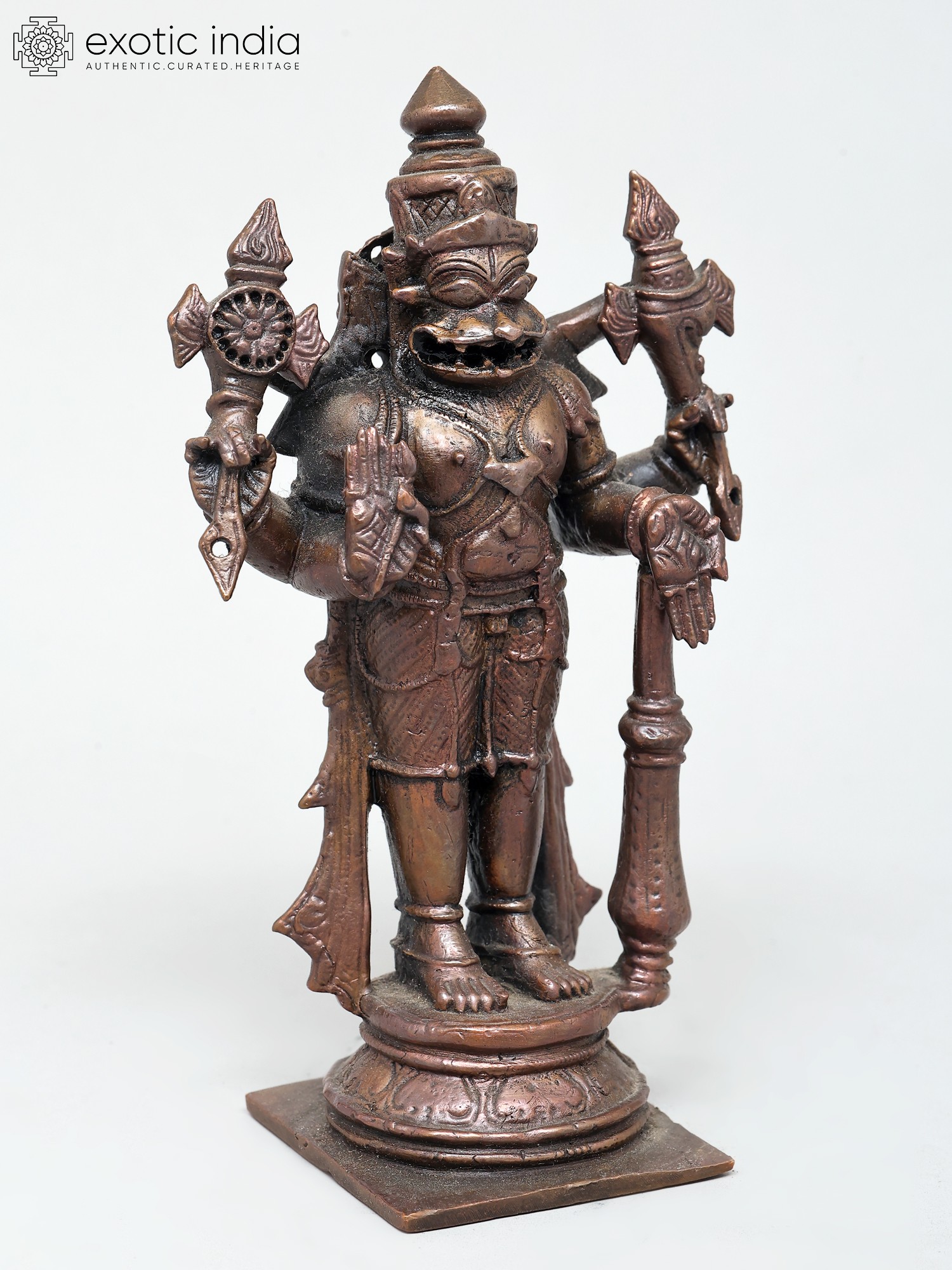 5" Small Copper Idol of Lord Narasimha Killing Demon Hiranyakashipu