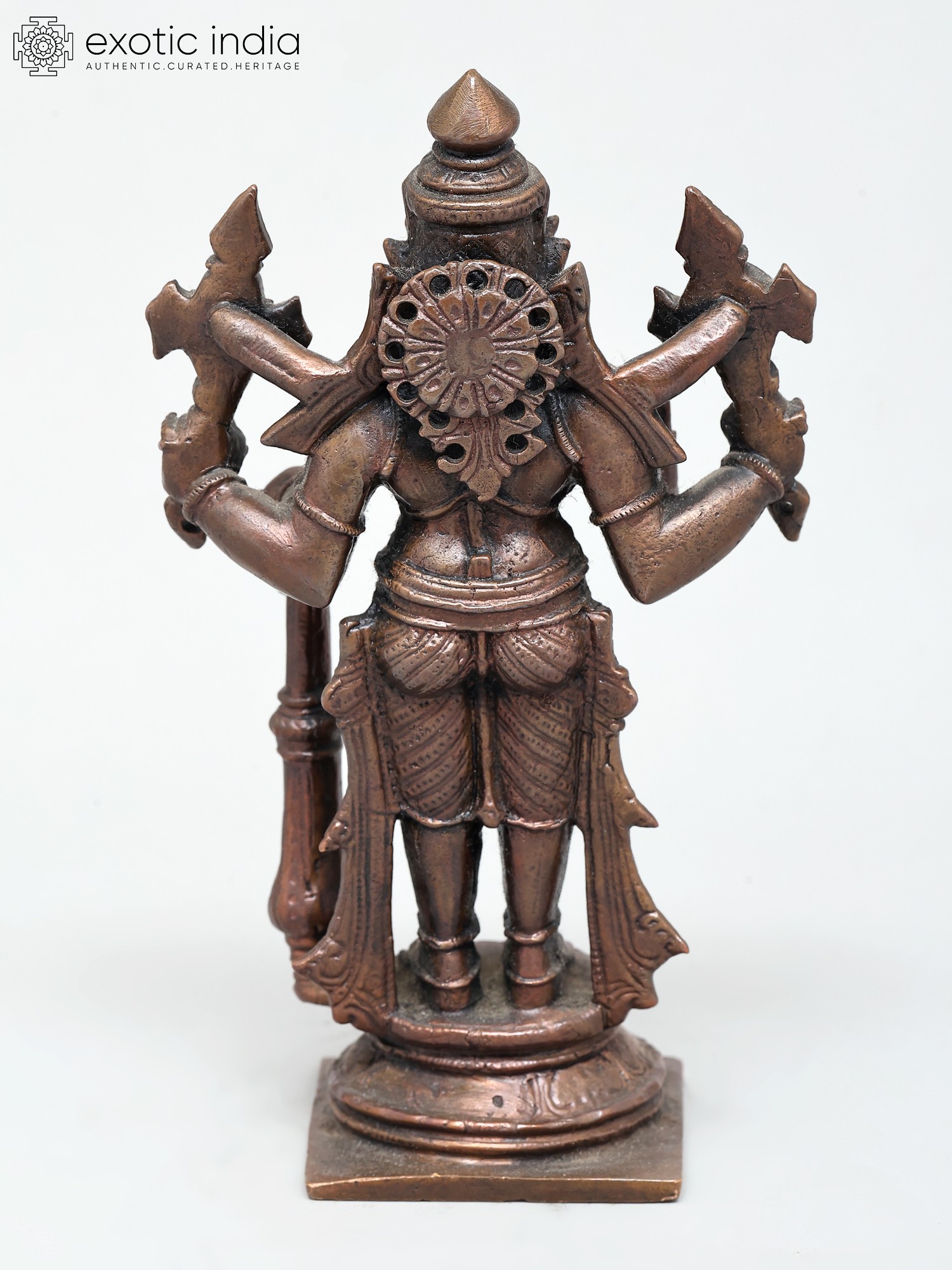 4" Small Superfine Standing Lord Murugan with Peacock | Brass Idol