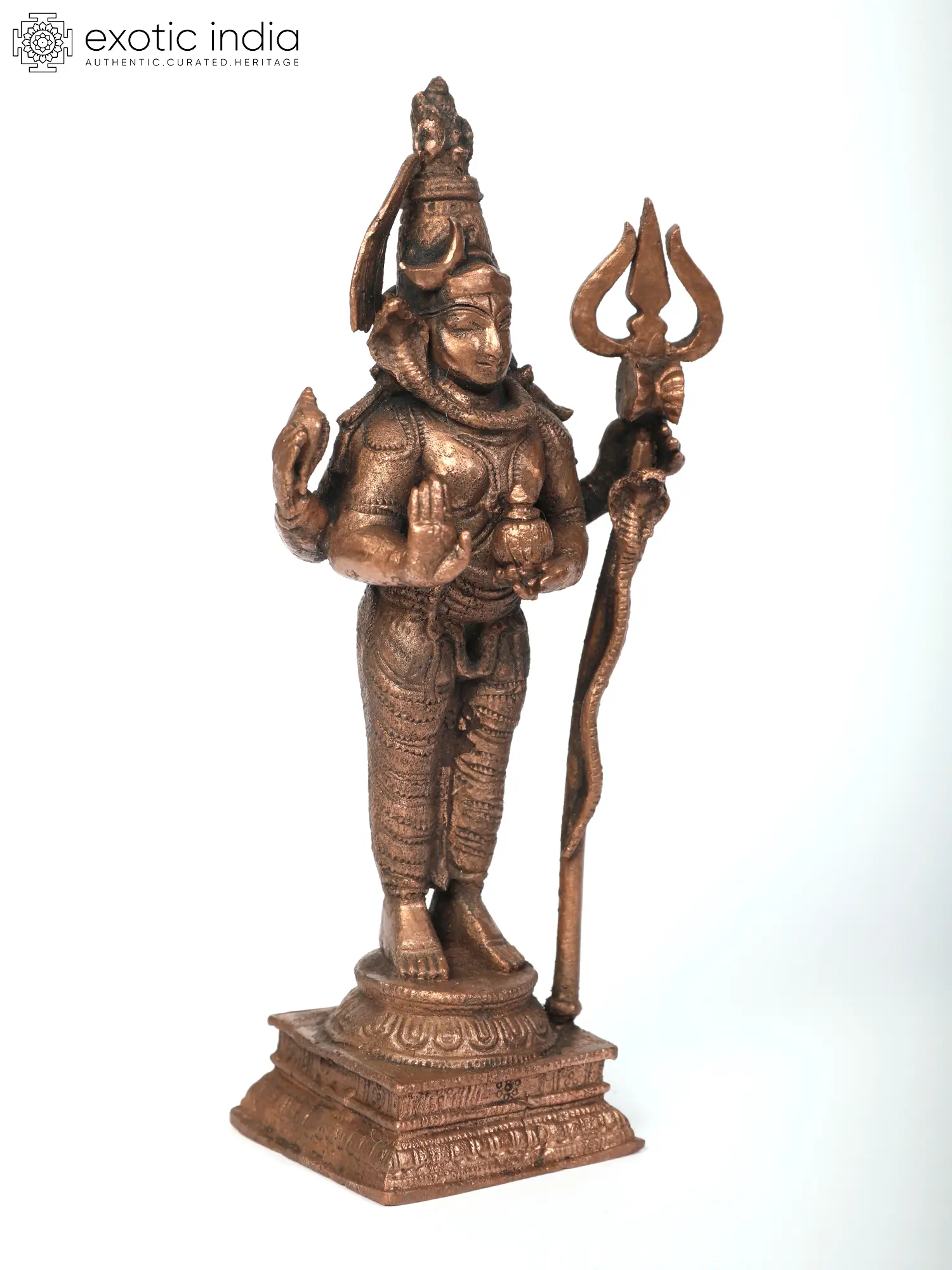 In this cosmic dance of existence, Lord Shiva stands upon a celestial pedestal, an embodiment of divine grace. His right hand extends in the “Abhaya Mudra”, a reassuring gesture of fearlessness and courage. Mahadev also holds the mighty trident (Trishul), namely “Sāttvika”, “Rājasika”, and “Tāmasika”. While the serpent embodies the kundalini energy, transcending earthly binds.