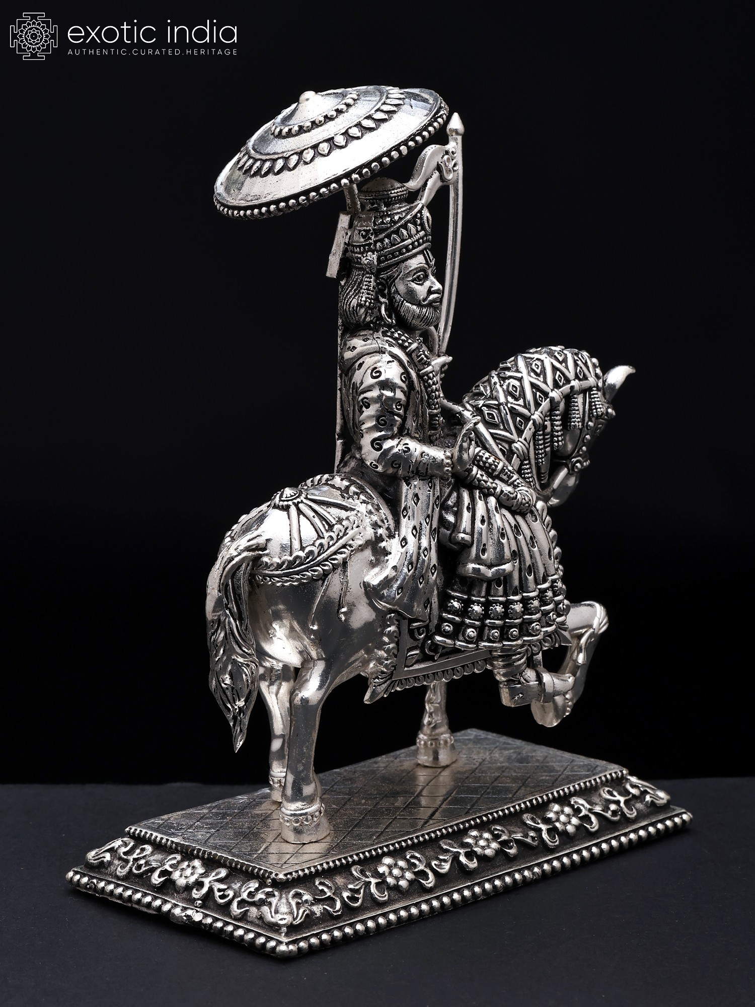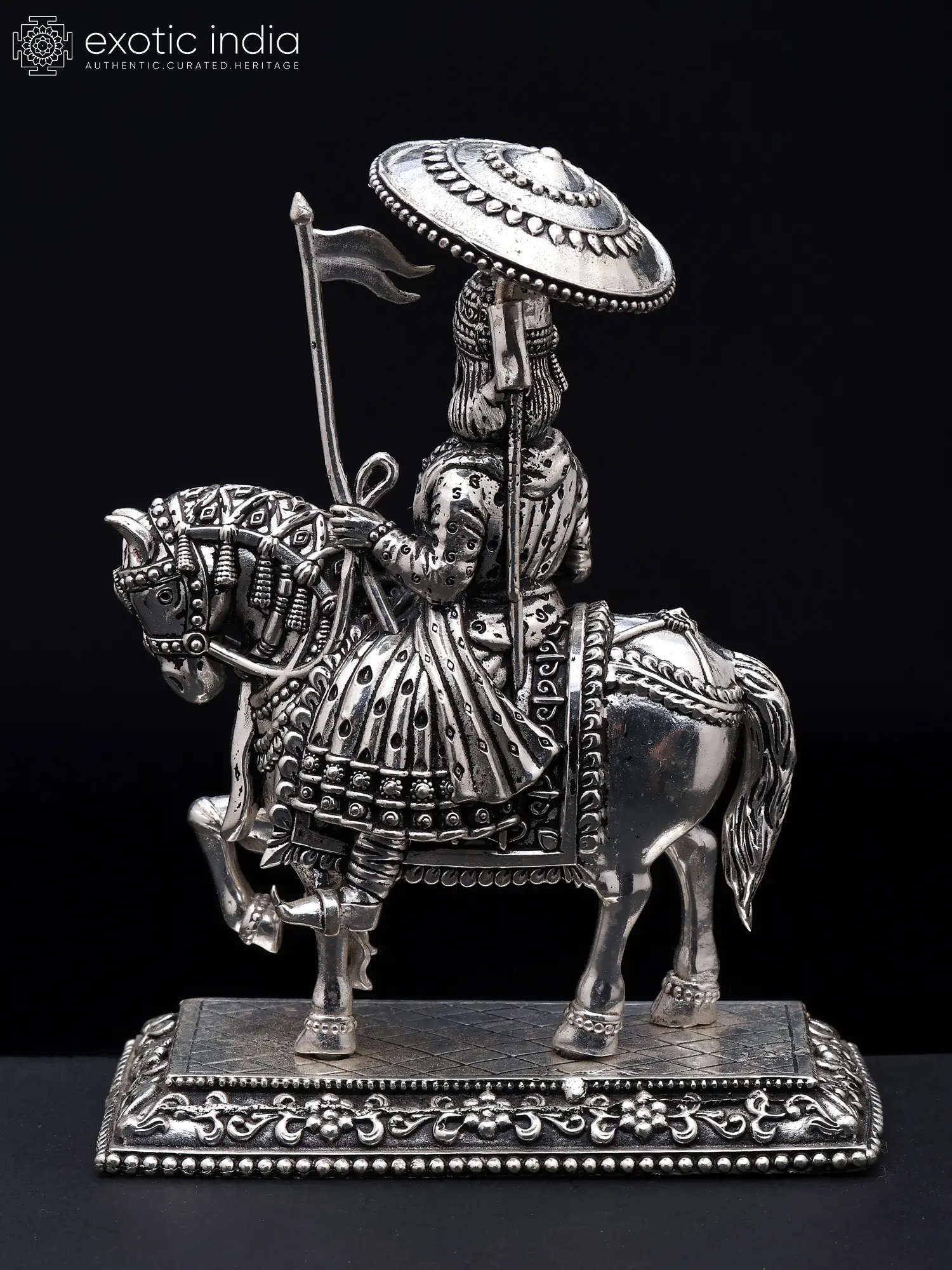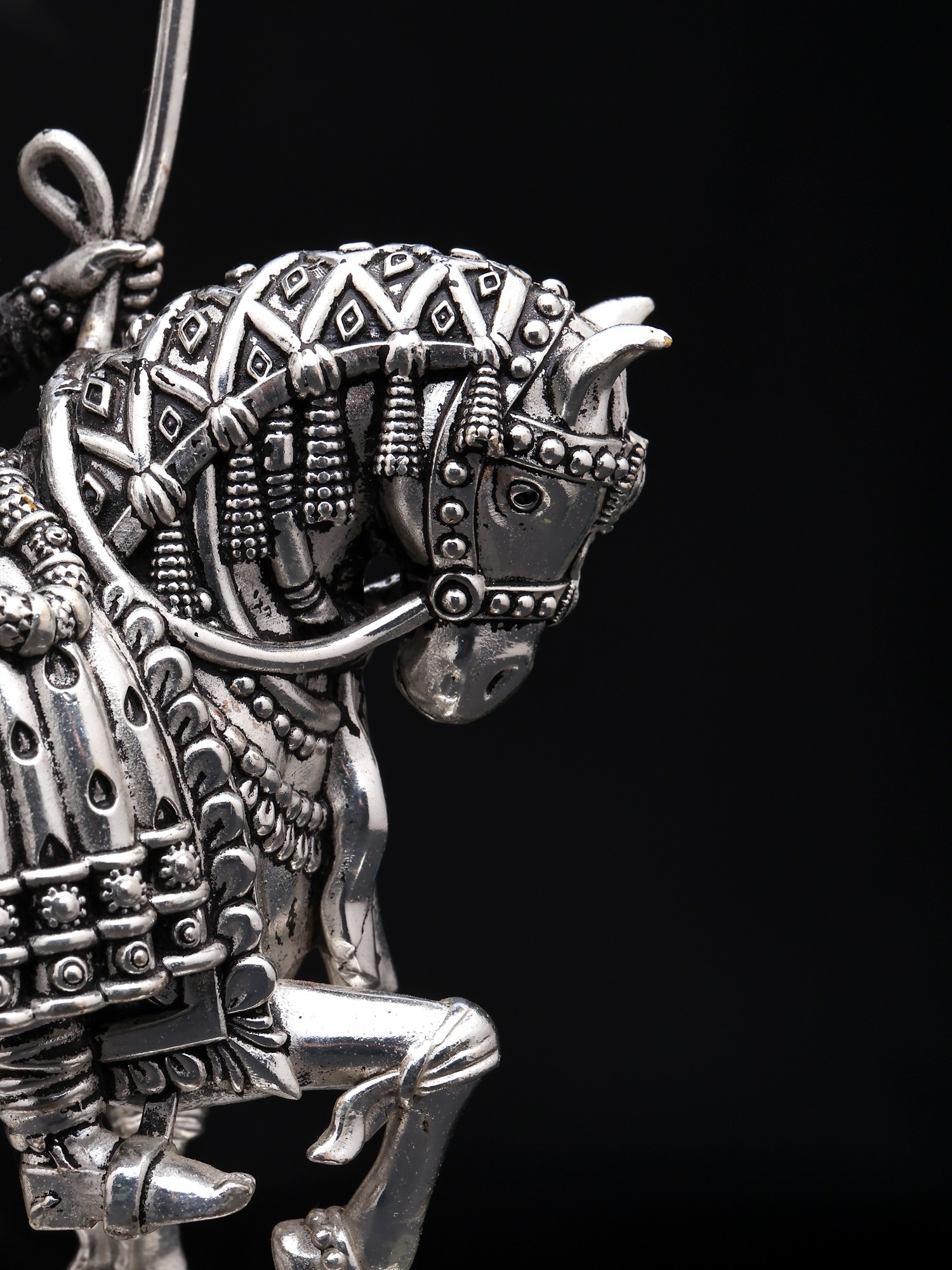 Each exquisite detail of this creation is brought forth through meticulous craftsmanship. Formed from high-quality brass, it is then lavished with a radiant silver plating, ensuring a lustrous finish that speaks of enduring elegance. The artisans have painstakingly sculpted every element, from the intricate patterns on the rider's attire to the powerful musculature of the horse, imbuing it with a lifelike vitality that is truly remarkable.