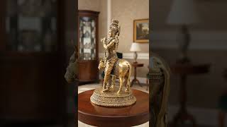28" Large Size Lord Krishna with a Cow and His Flute In Brass | Handcrafted In India