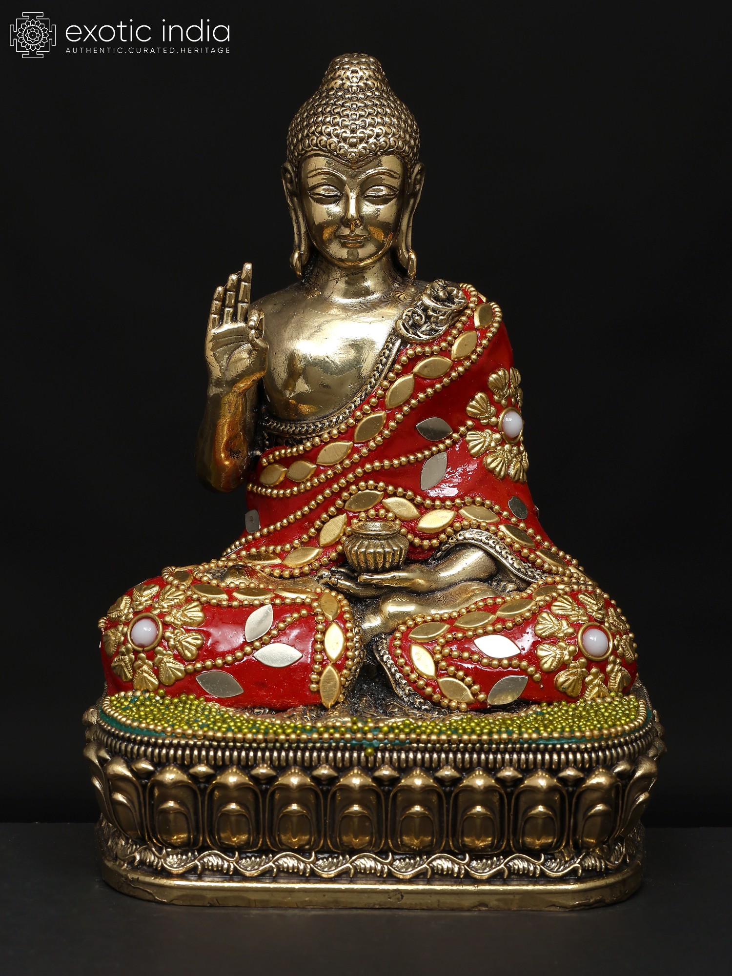 17" Lord Buddha in Dhyana Mudra (Robes Decorated with Lotus Flowers)