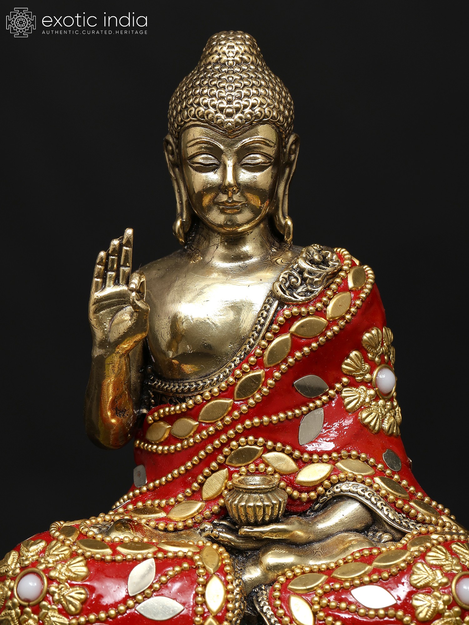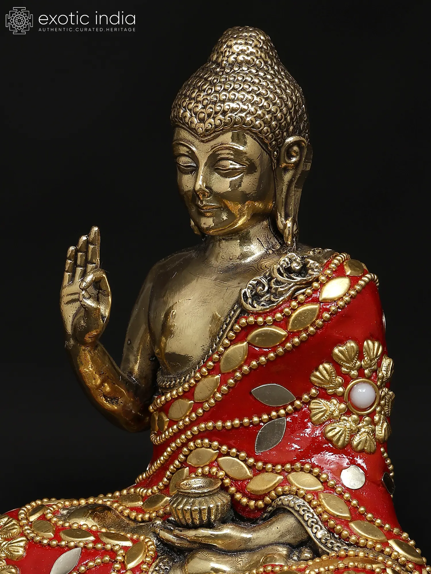 36" Gracious Buddha, Clad in a Luxuriant Robe in Brass | Indian Handcrafted Idol