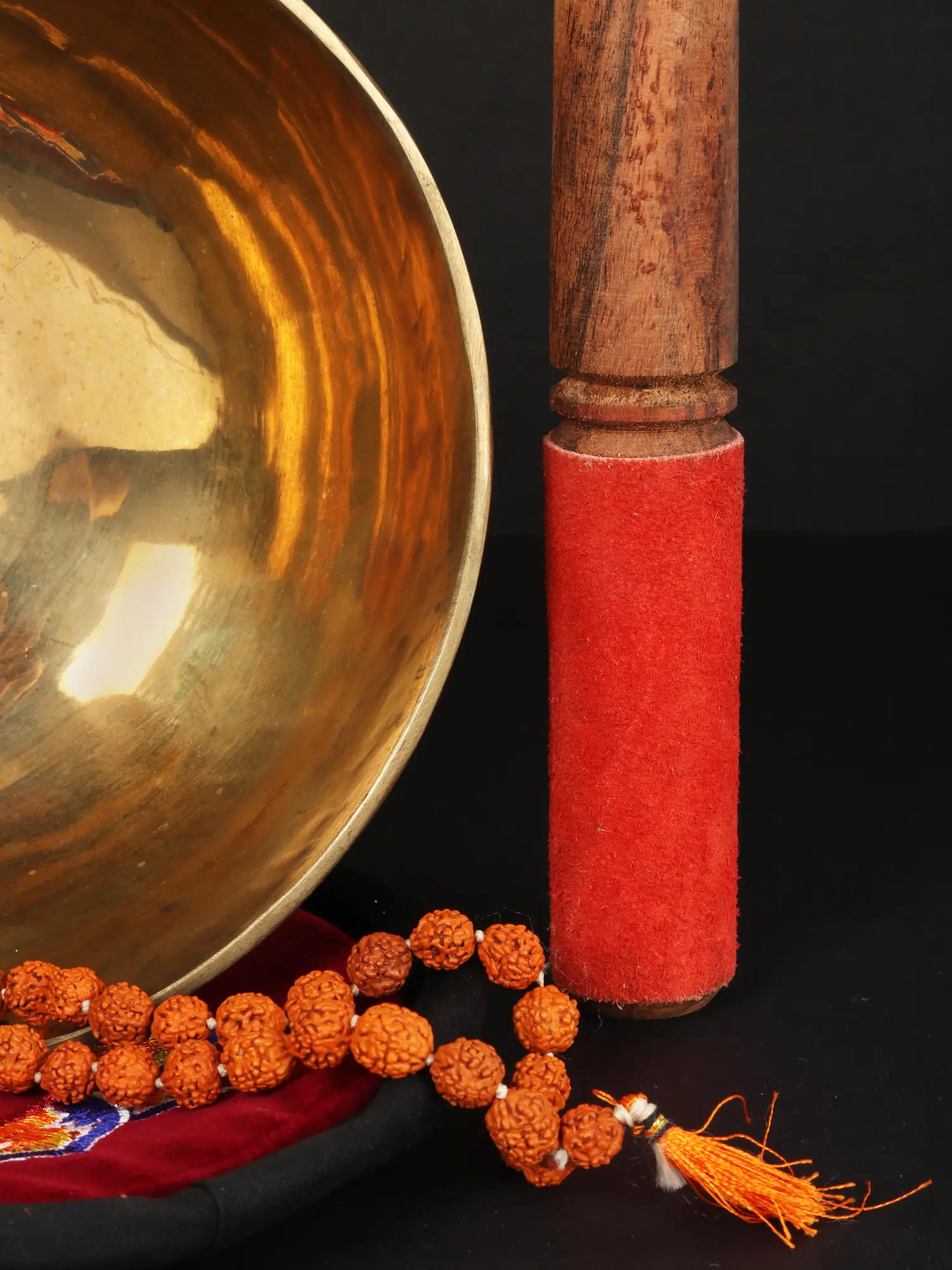 Handcrafted with care, the small Tibetan Buddhist singing bowl captures the essence of inner resonance. Each strike or circular motion of the mallet reveals a pathway to tranquility. The bowl's form symbolizes unity, where sound and soul converge. Its reverberating tones echo cosmic frequencies, guiding meditation and mindfulness. This singing bowl transcends mere musicality; its tones mirror the ebb and flow of the soul's journey. This artwork invites us to find solace within the soothing echoes, reminding us to attune our lives to the universe's harmonious rhythm.