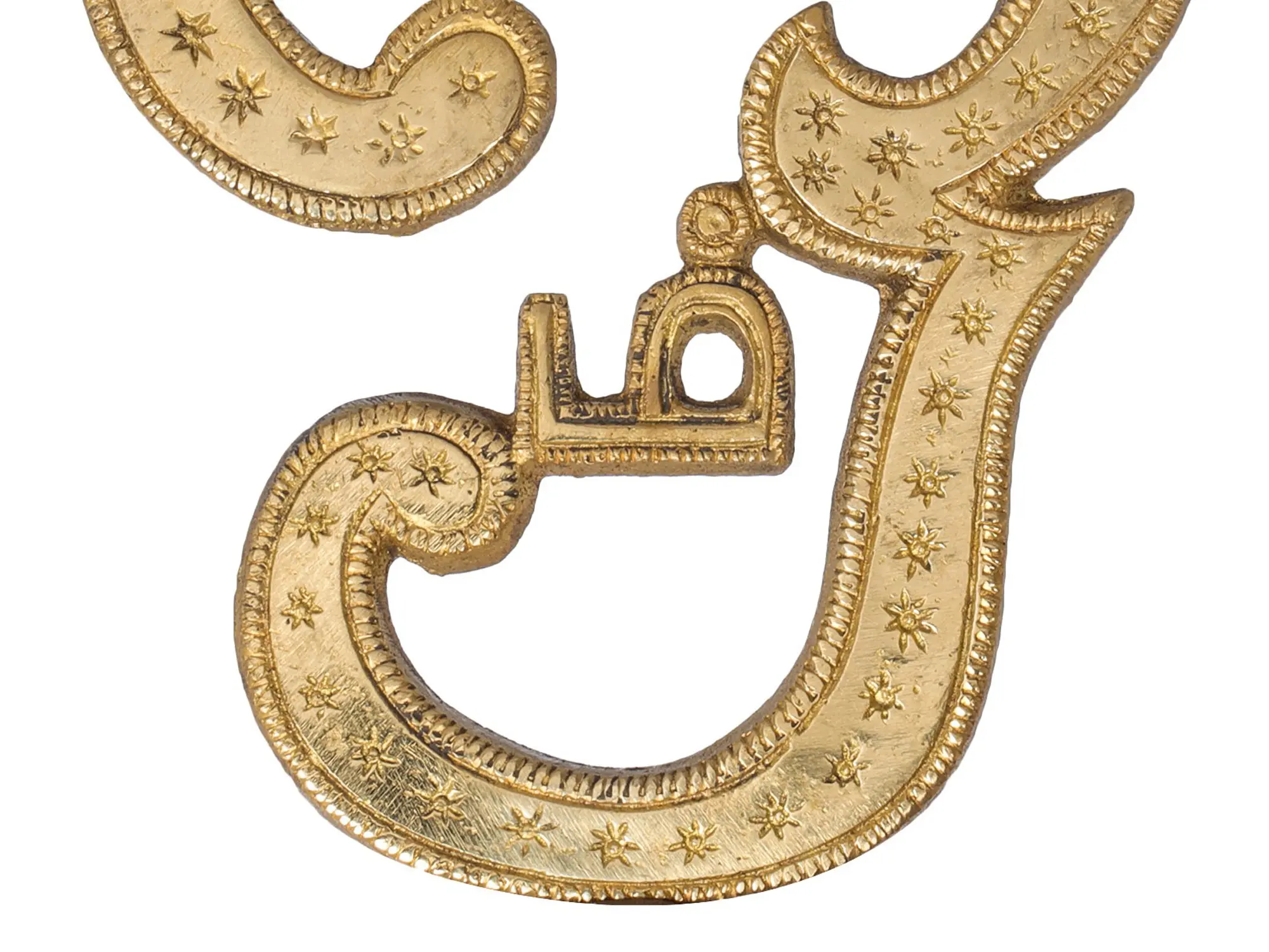 This beautiful OM symbol is brought to life through traditional Indian craftsmanship. Hand-forged from lustrous brass, it possesses a timeless quality, radiating warmth and positive energy. The intricate details, including the delicate star-like embellishments along its curves, add an extra layer of artistry and auspiciousness. Brass has long been revered in Indian culture for its purity and its ability to hold and transmit spiritual energies. This wall hanging is not merely decorative; it is a conduit for positive vibrations, designed to bring tranquility, spiritual growth, and a sense of divine presence into your living space. Its presence can serve as a constant reminder of the interconnectedness of all things and the inner peace that can be found by focusing on this ancient and powerful mantra. ––––––––––