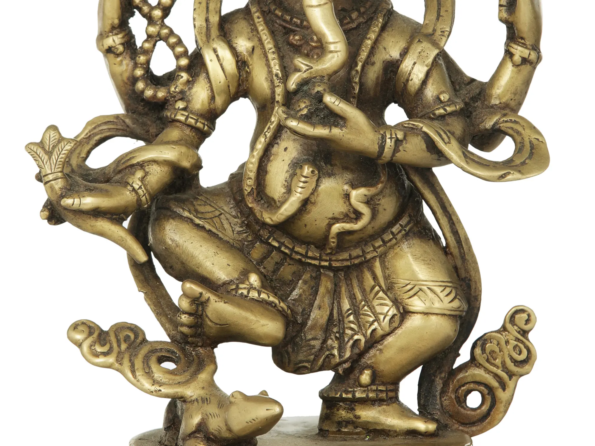 9" Dancing Ganesha Brass Sculpture | Handmade | Made in India