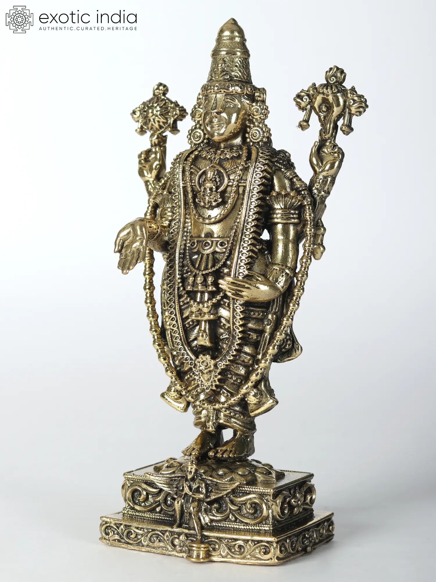 Also known as Venkanna, Balaji, and Lord of the Seven Hills, Lord Venkateshwara is the supreme Lord. There is no parallel to Venkatachalam and there is no God equal to Venkateswara either in the past or in the future. Tirupati Balaji is called Kaliyuga Varada which means the wish-fulfilling Lord of Kaliyuga. His eyes are covered as it is said that his gaze is so powerful that it would scorch the universe. In his upper hands, Balaji carries the Sudarshan, a symbol of his cosmic authority and Shankha (Conch Shell), a symbol of existence. His lower right hand extends in Varada Mudra, bestowing boons upon the faithful, while the left beckons devotees to surrender, inviting them into the protective embrace of faith.