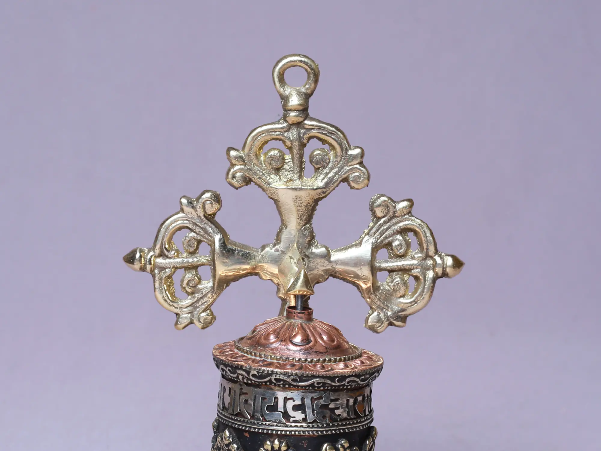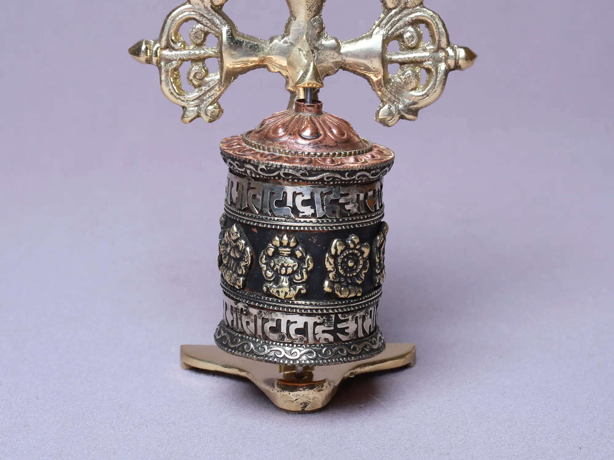 This prayer wheel is made in Nepal, a land steeped in ancient spiritual traditions and renowned for its exceptional craftsmanship. For centuries, Nepalese artisans have honed their skills in creating sacred objects, carrying on a legacy that blends artistic excellence with deep spiritual understanding. By purchasing this prayer wheel, you're not only acquiring a beautiful and functional item but also supporting the continuation of this rich artistic tradition. The attention to detail and the high-quality materials employed reflect the dedication and artistry that go into each creation. This makes each prayer wheel a unique and treasured item, imbued with the spirit of Nepal.