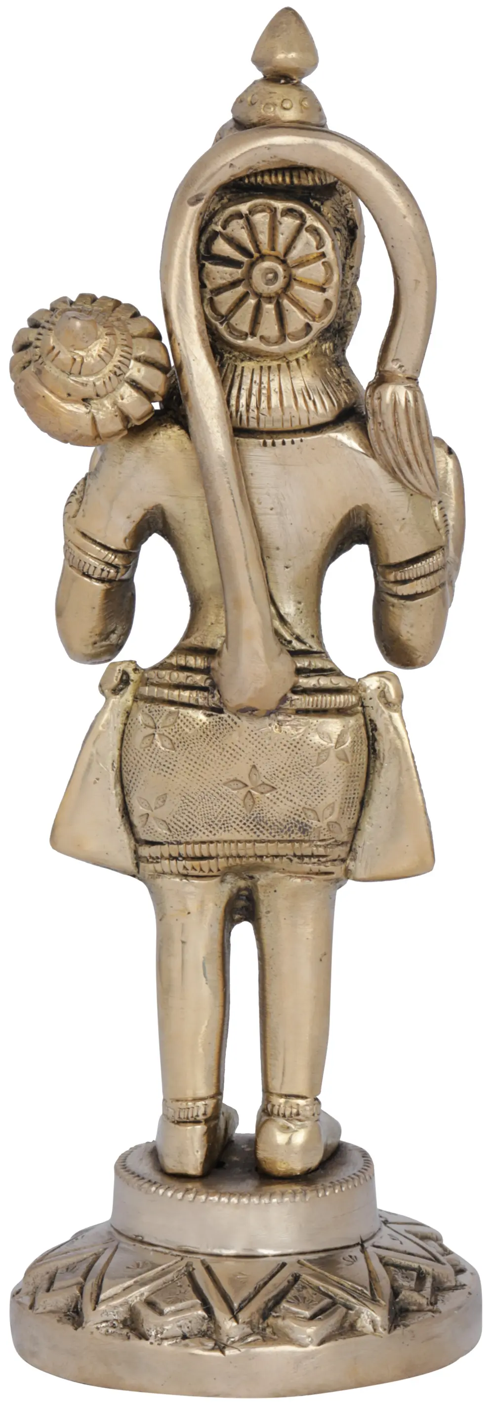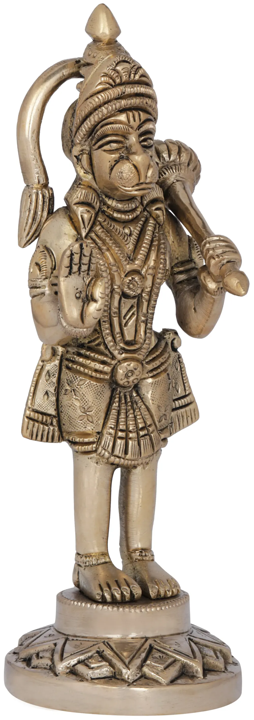 "Crafted with devotion, the 'Veer Hanuman in Brass' is an exquisite embodiment of strength and devotion. Handmade in India, this masterpiece captures the valiant Hanuman in intricate detail, showcasing his unwavering loyalty and indomitable spirit. The brass sculpture radiates the essence of courage and divinity, reflecting the essence of the epic Ramayana. With every curve and contour expertly formed, this creation pays homage to traditional artistry while embodying the timeless tale of Hanuman's valor. A symbol of triumph over adversity, this piece transcends craftsmanship, serving as a reminder of heroic virtues and the power of faith."