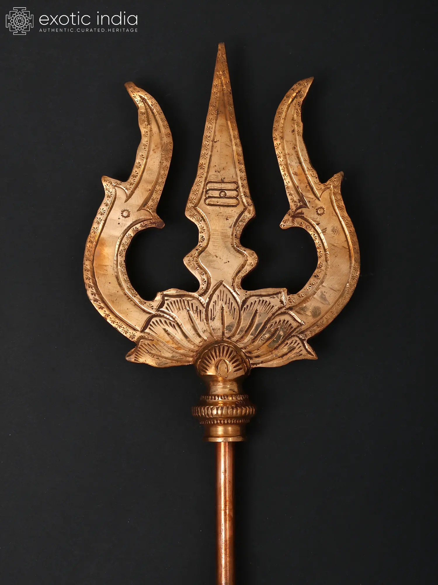 12" Standing Lord Shiva's Trishul (Trident) in Bronze