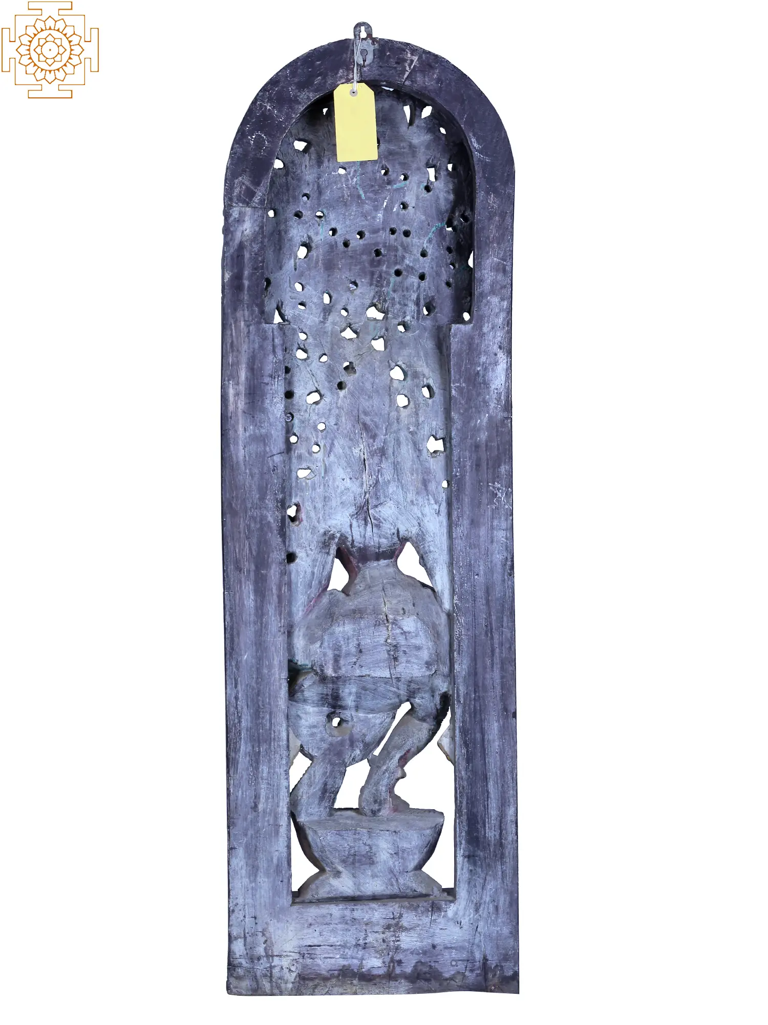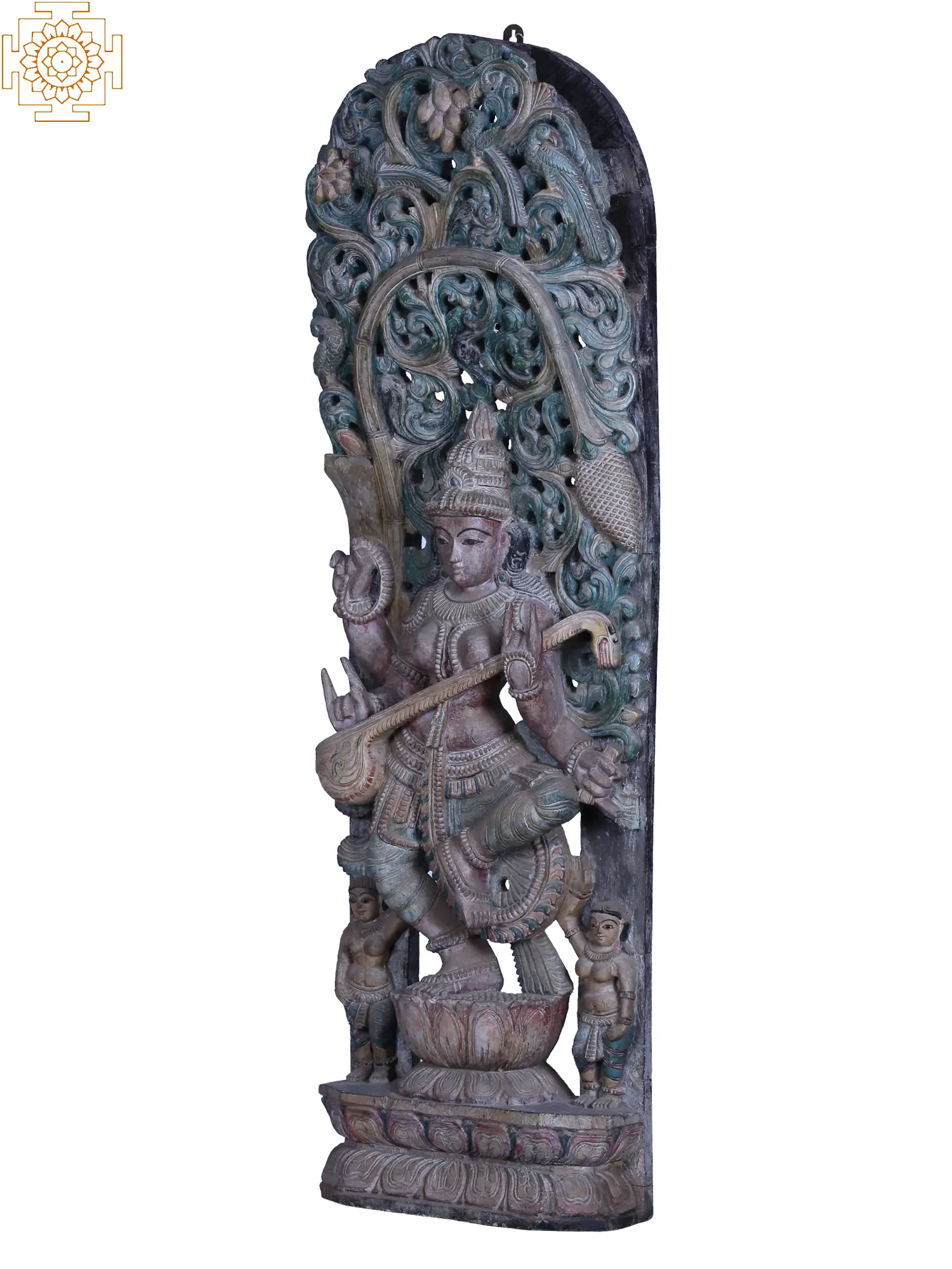 36" Large Wooden Goddess Saraswati Seated on Lotus with Kirtimukha