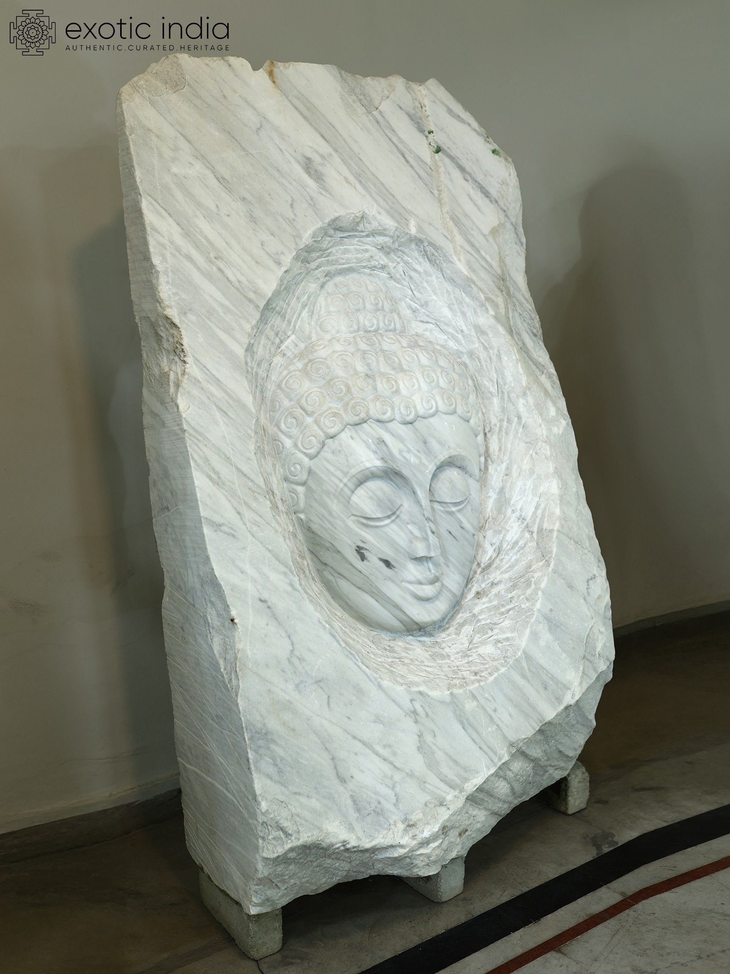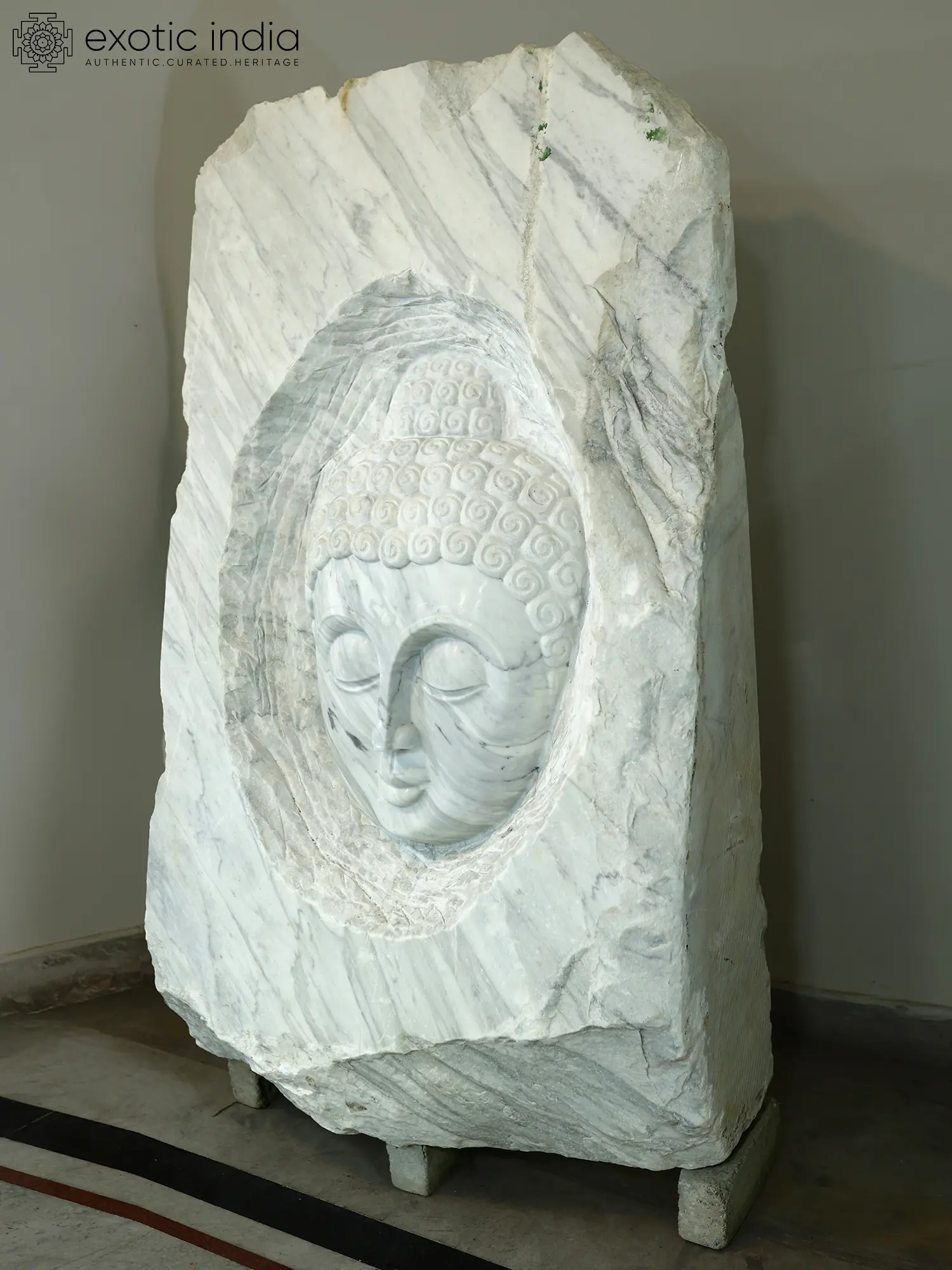 68" Lord Buddha Face | Modern Art Sculpture | White Marble | Exquisite Indian Art