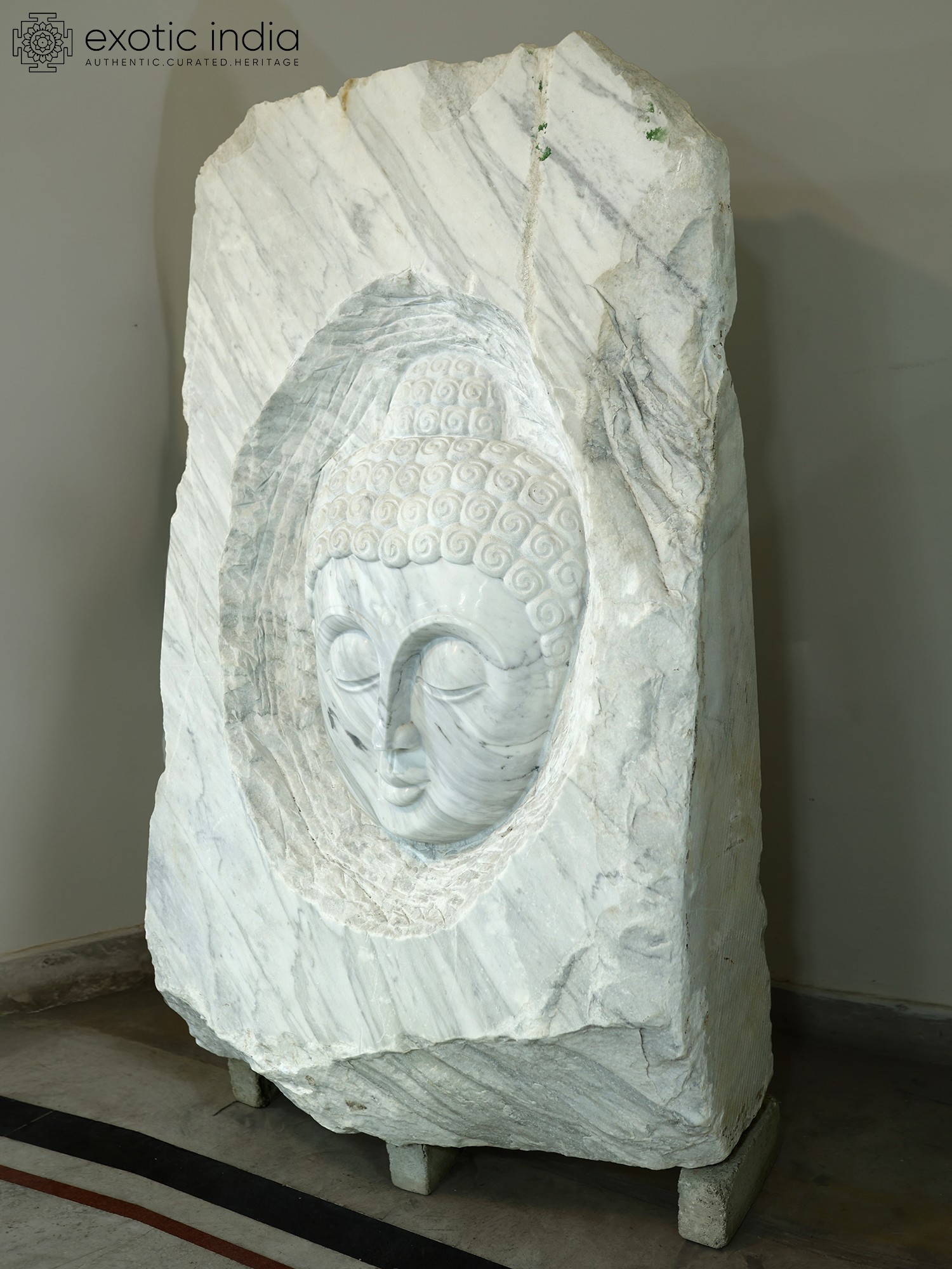 74" Lord Buddha Face | Modern Art Sculpture | Marble | Exquisite Indian Art