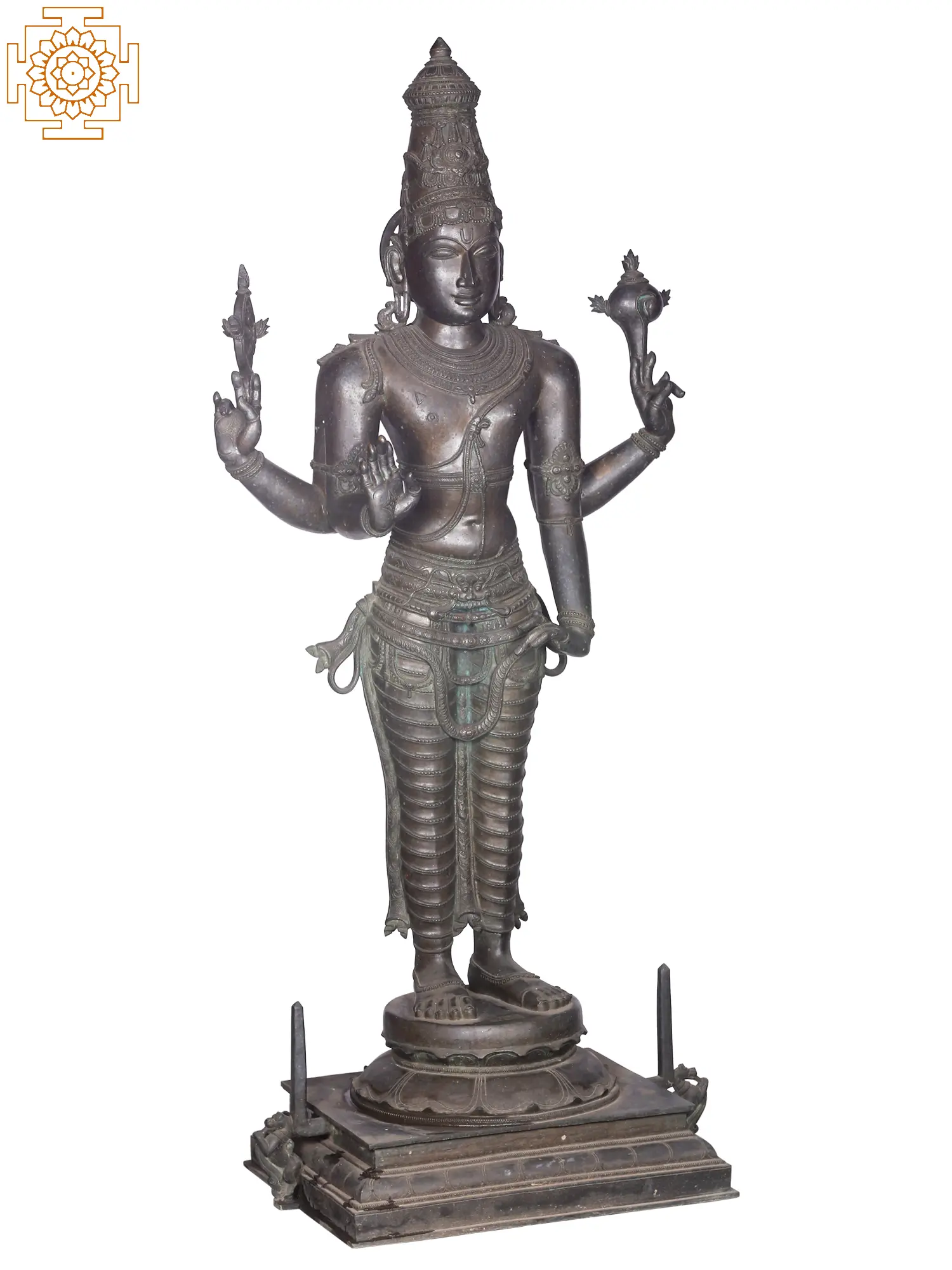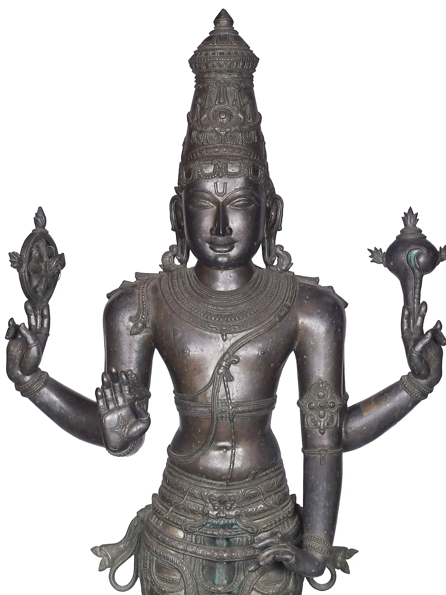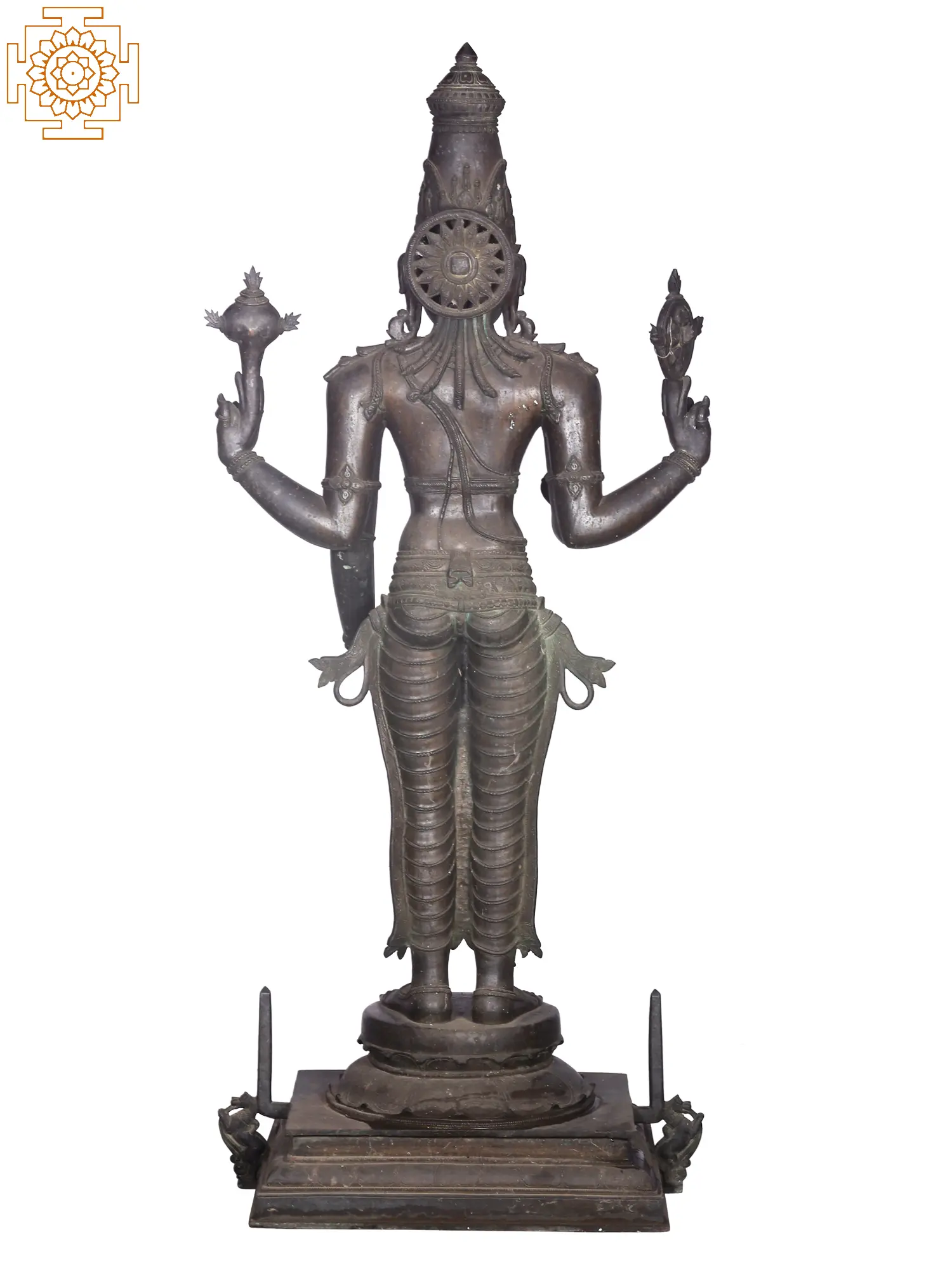 41" Large Four Armed Standing Lord Vishnu | Madhuchista Vidhana (Lost-Wax) | Panchaloha Bronze from Swamimalai