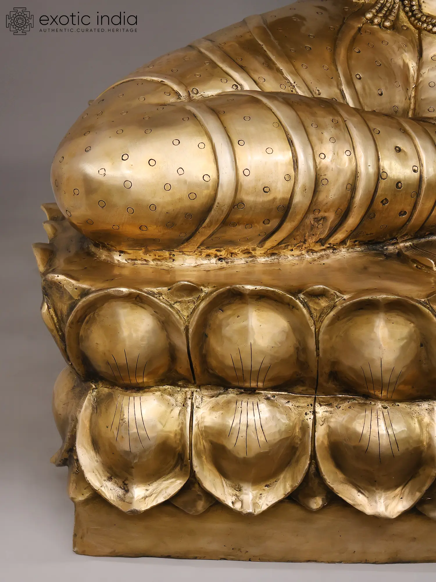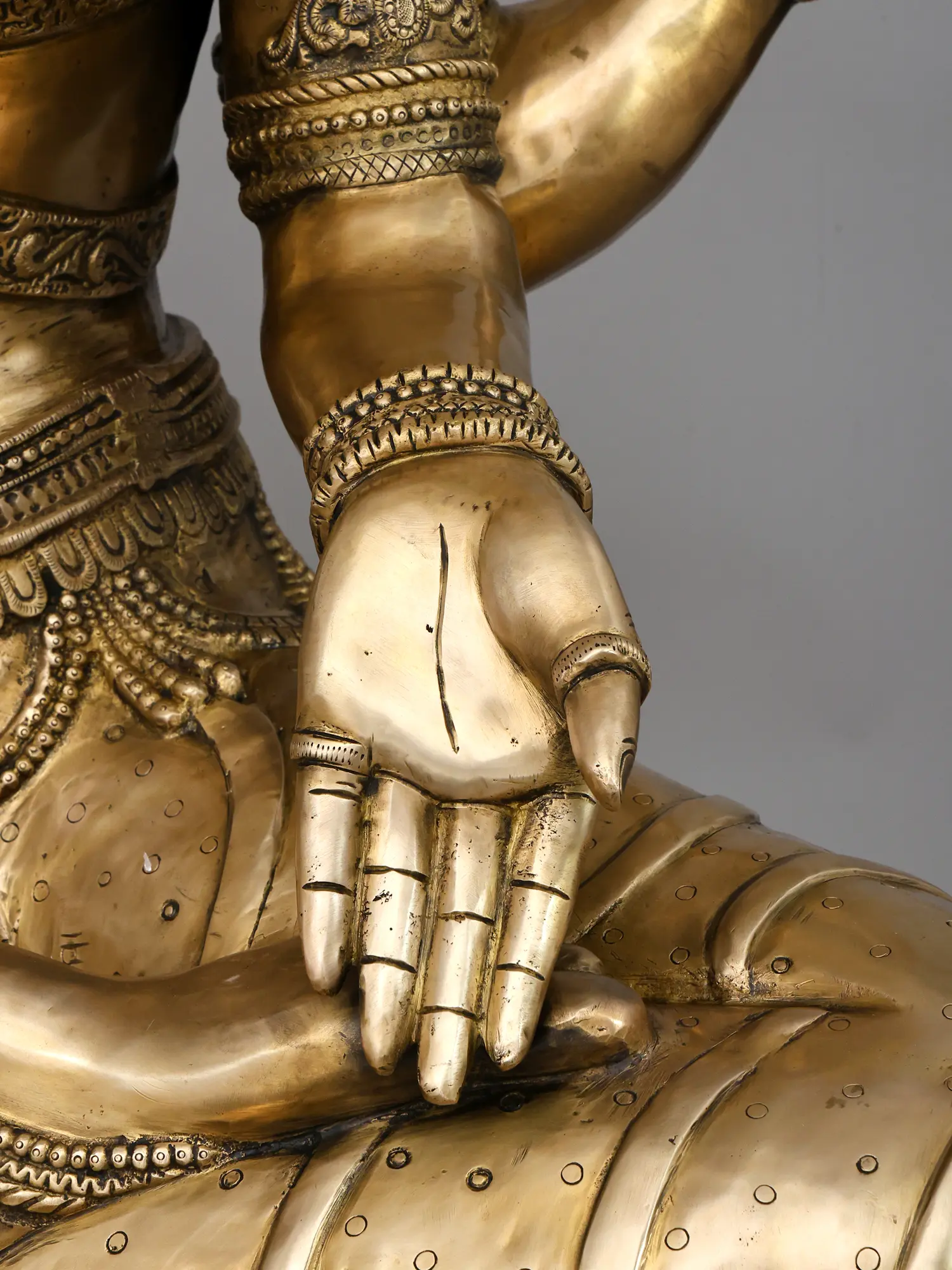 Altogether, this statue captures Lakshmi as living auspiciousness, where skilled craftsmanship allows brass to take on warmth, vitality, and sacred presence, making it a compelling centrepiece for worship and contemplation.