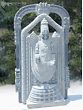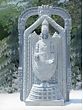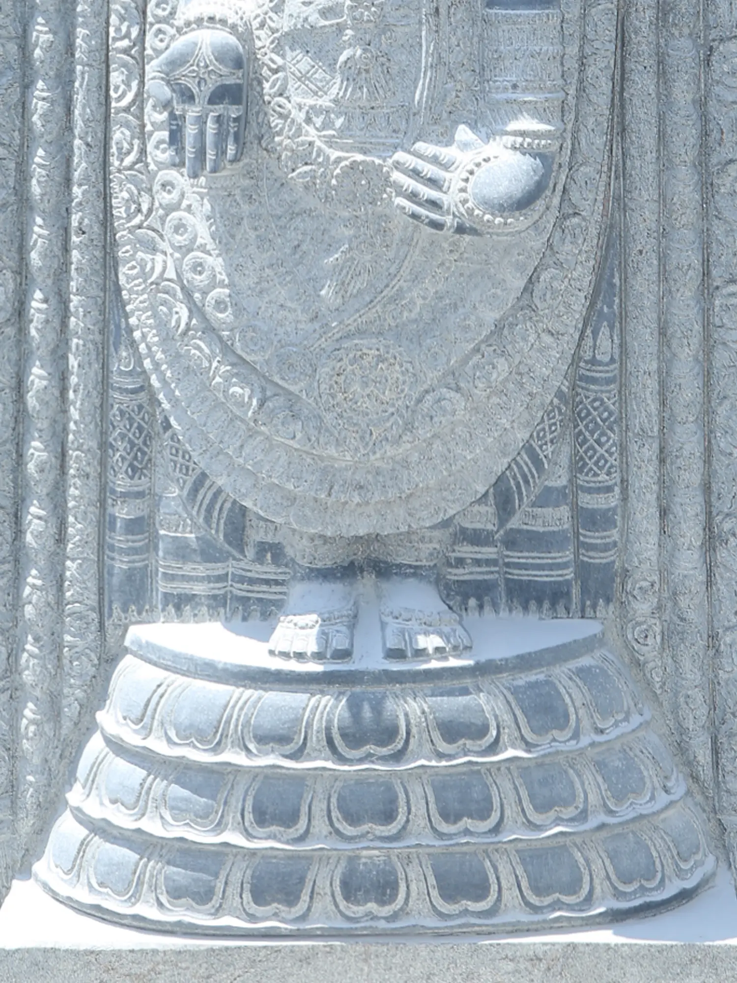 The intricate carvings highlight every detail of his attire, including the rich folds of his drapery and the sacred conch (Shankha) and discus (Chakra) motifs associated with Vishnu.